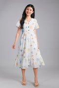 RENLEY OCEAN EYELET SLEEVED MIDI DRESS