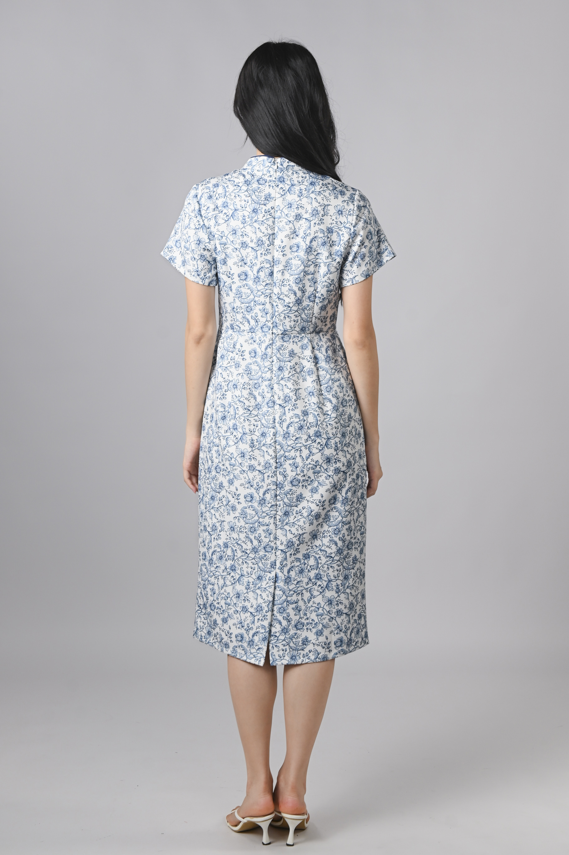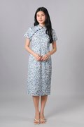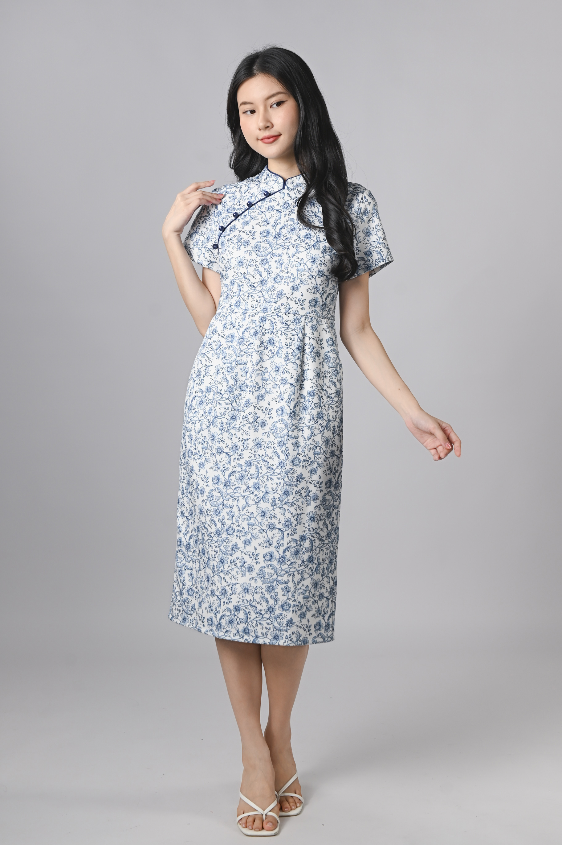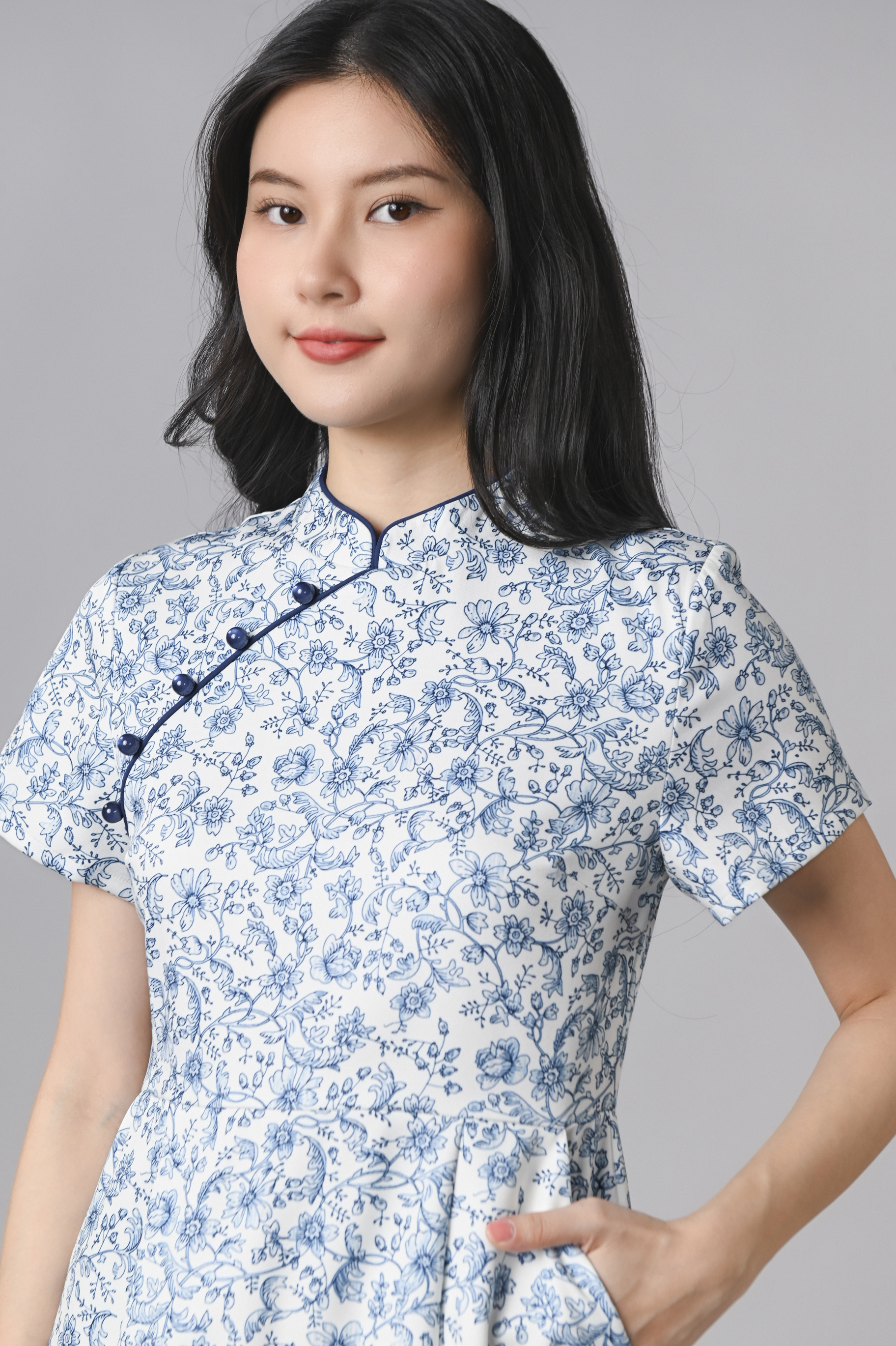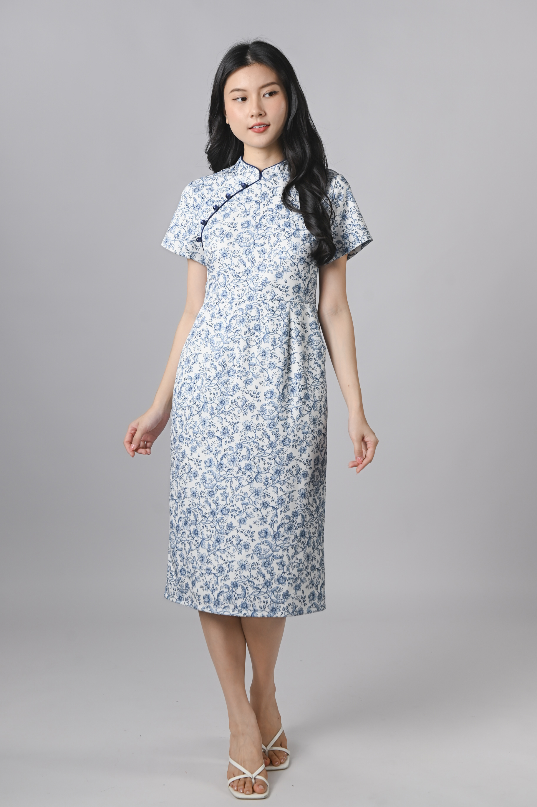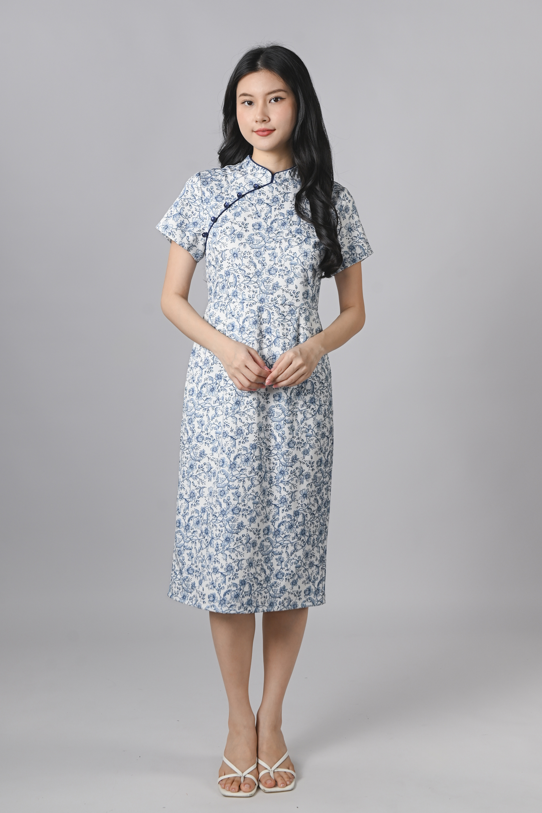 RUOLING BLUE PORCELAIN SLEEVED CHEONGSAM DRESS
