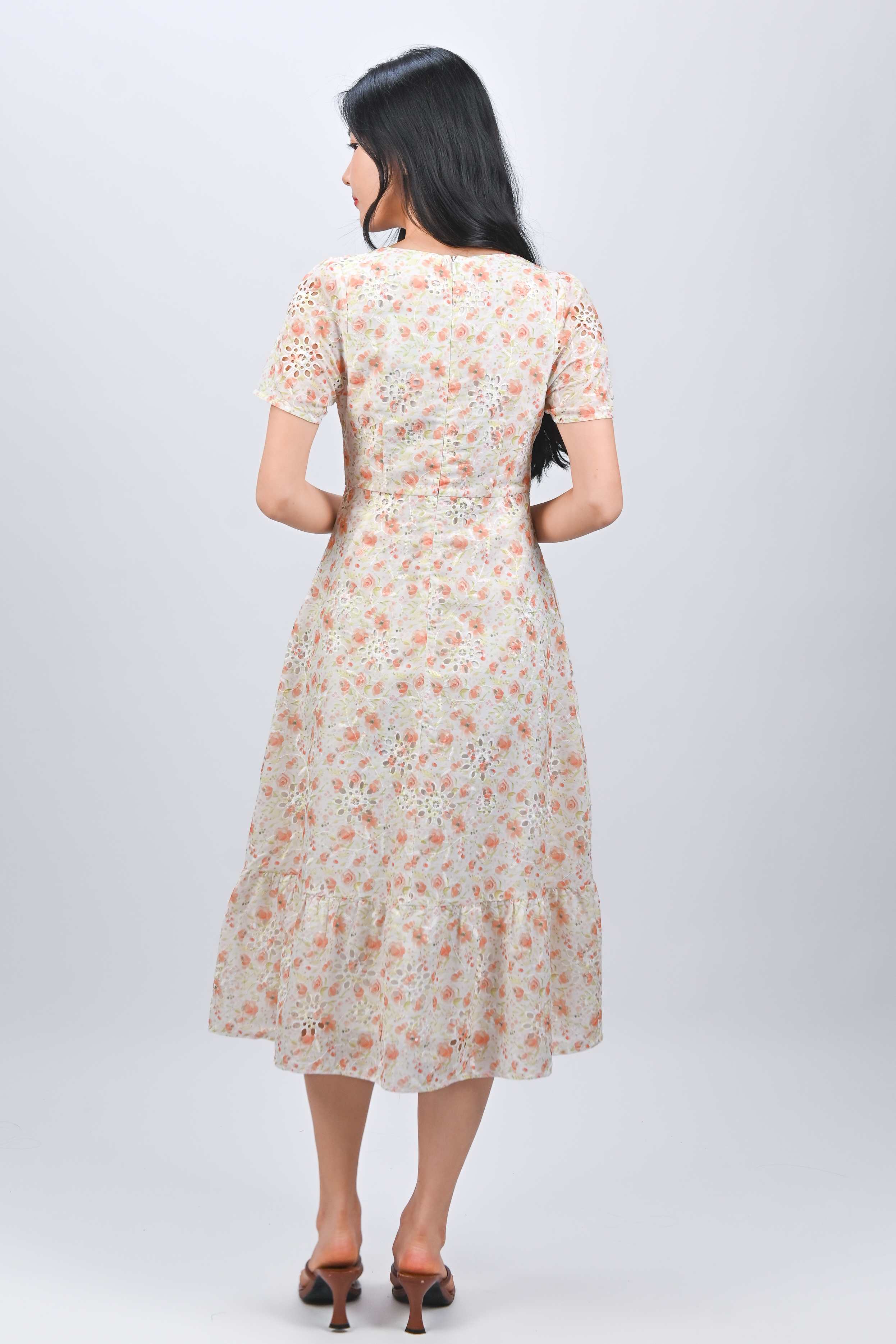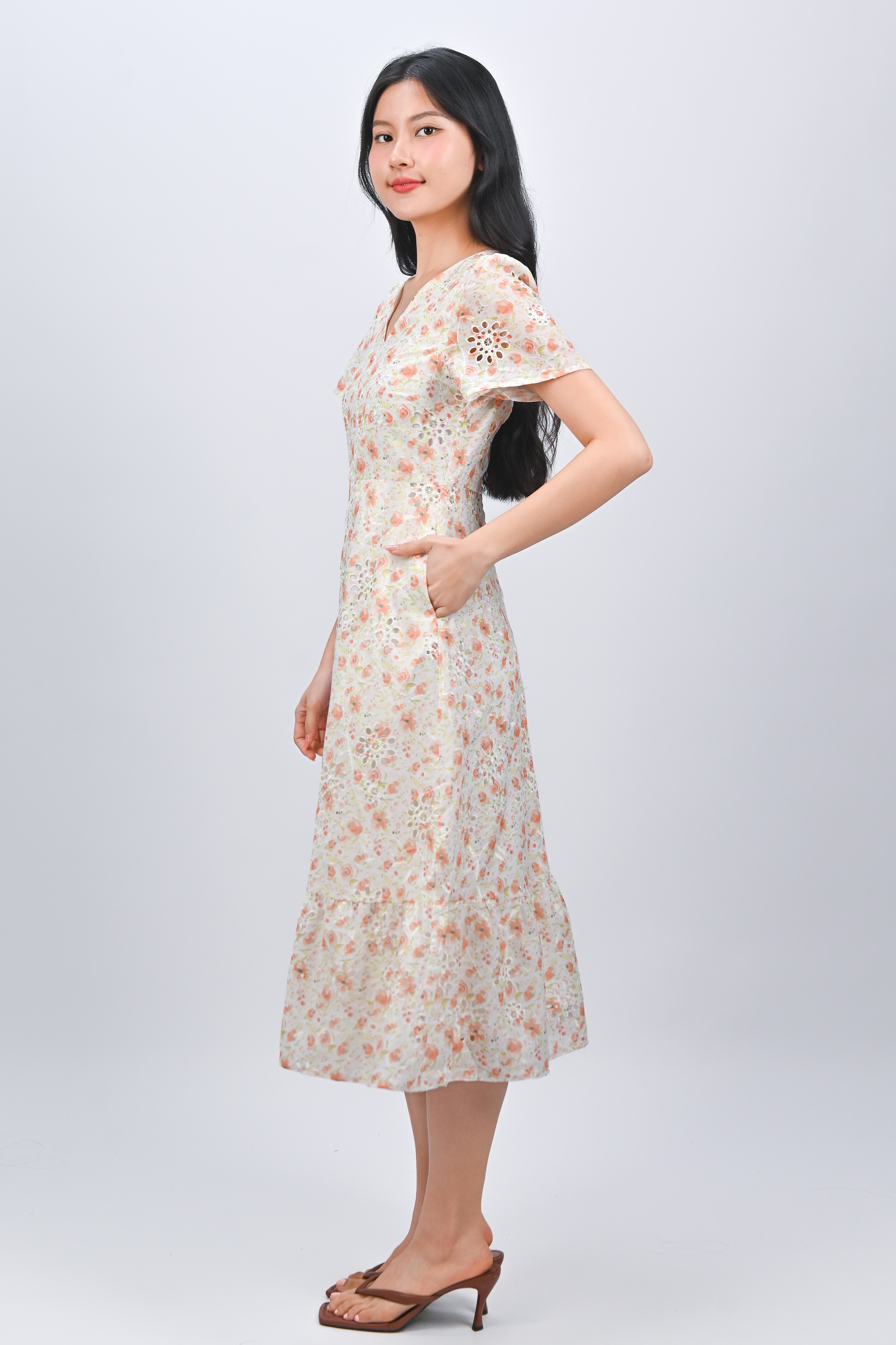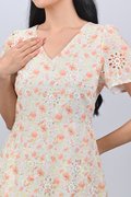SADIE ORANGE FLORAL EYELET SLEEVED MIDI DRESS