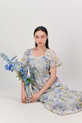 SAKRIS BLUE EYELET FLORAL SLEEVED DRESS