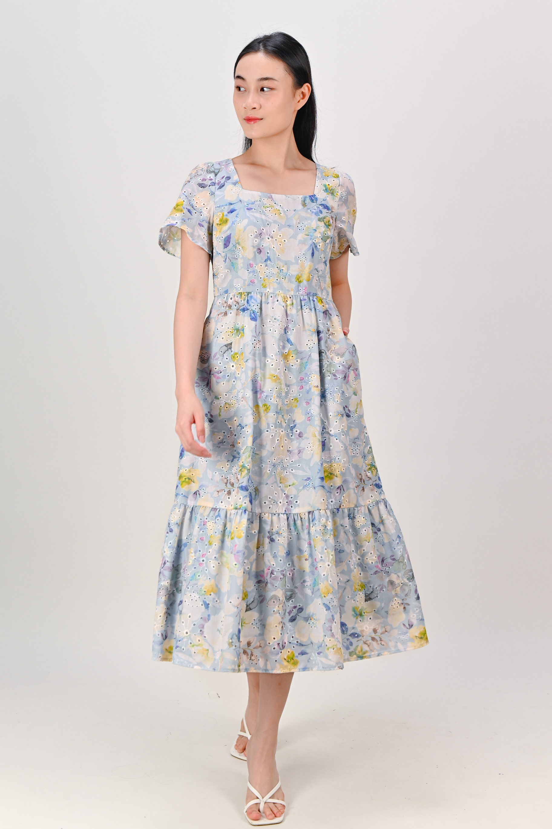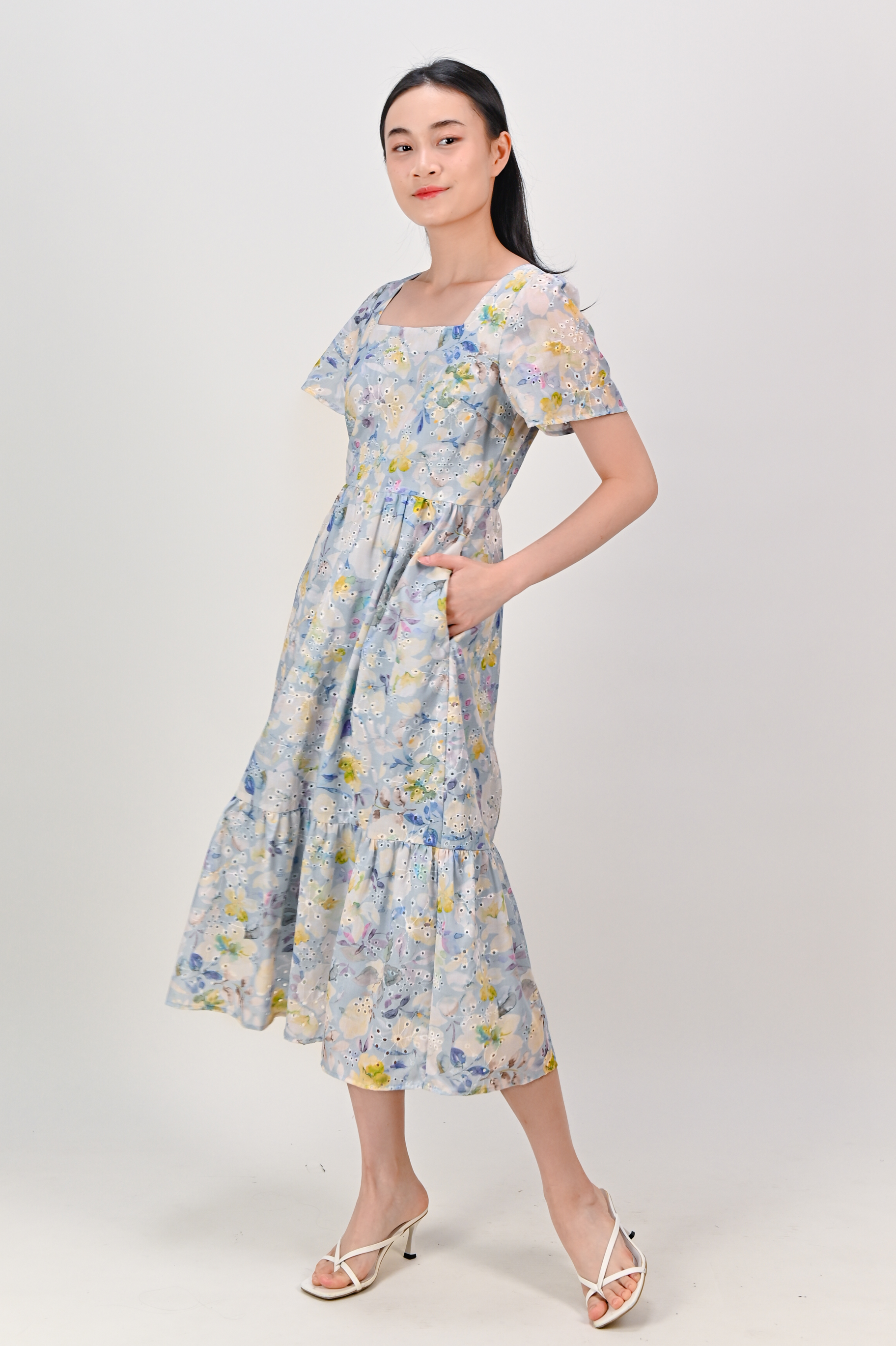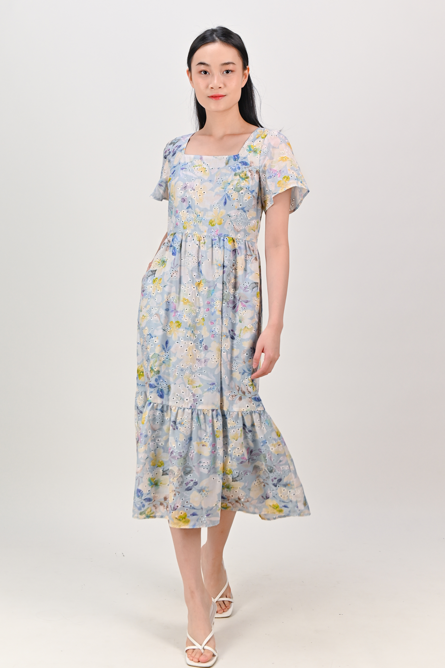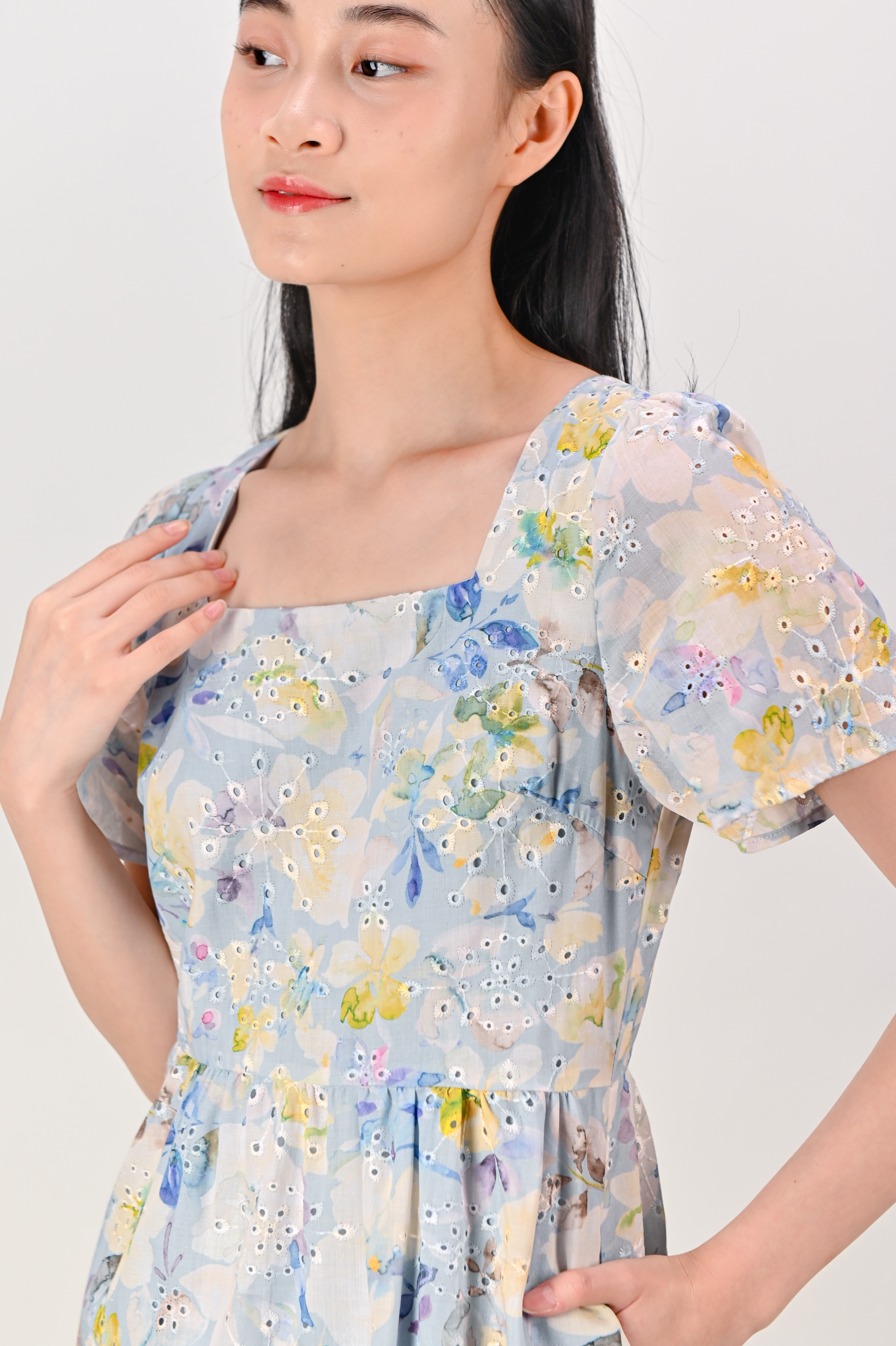 Actual stocks may varyOur Sakris Blue Eyelet Floral Dress is gonna be your floral staple 💐 Sweet! 🤩