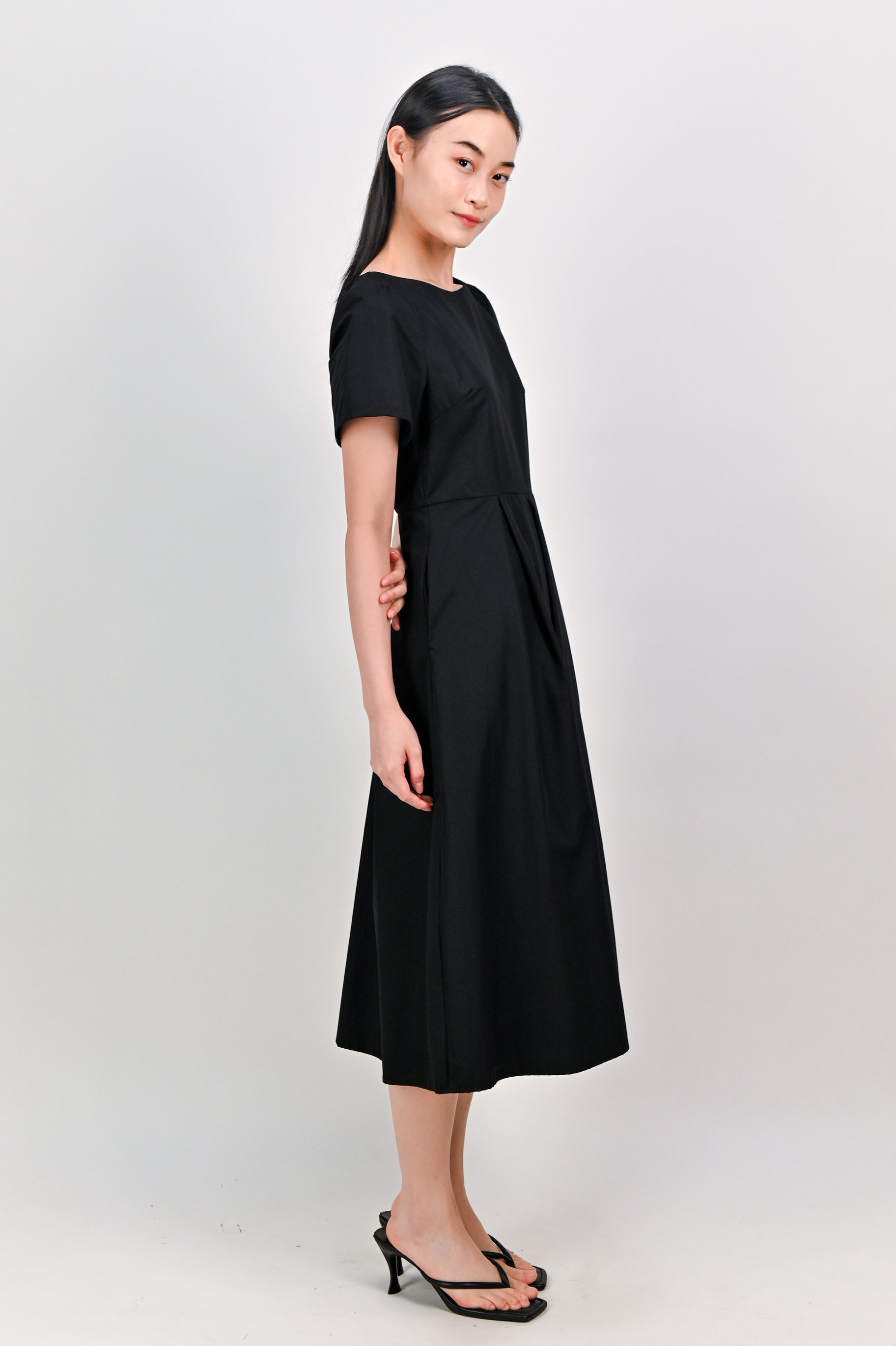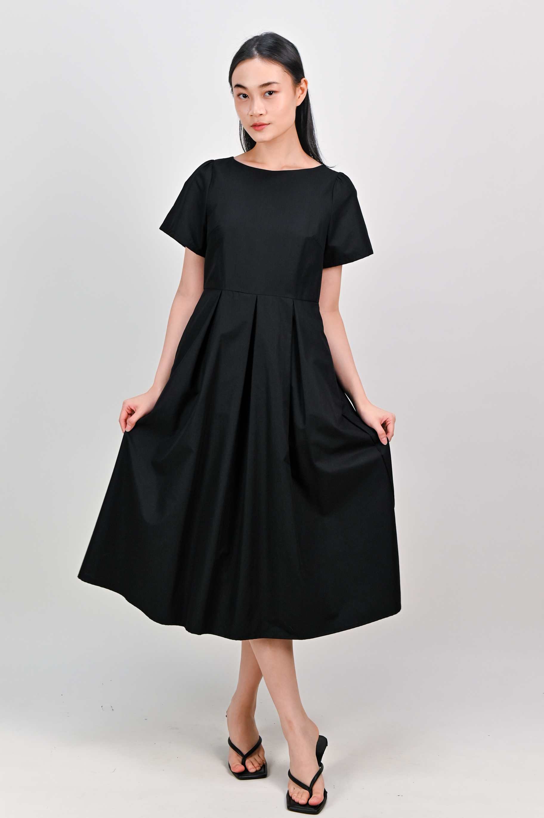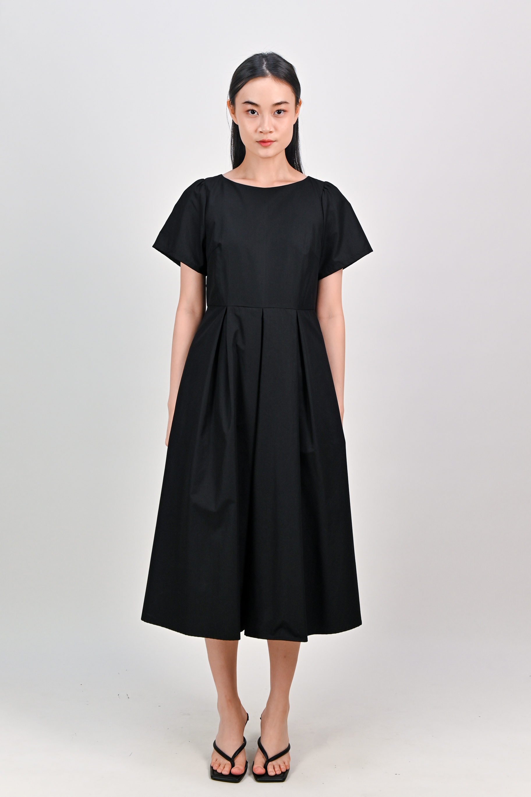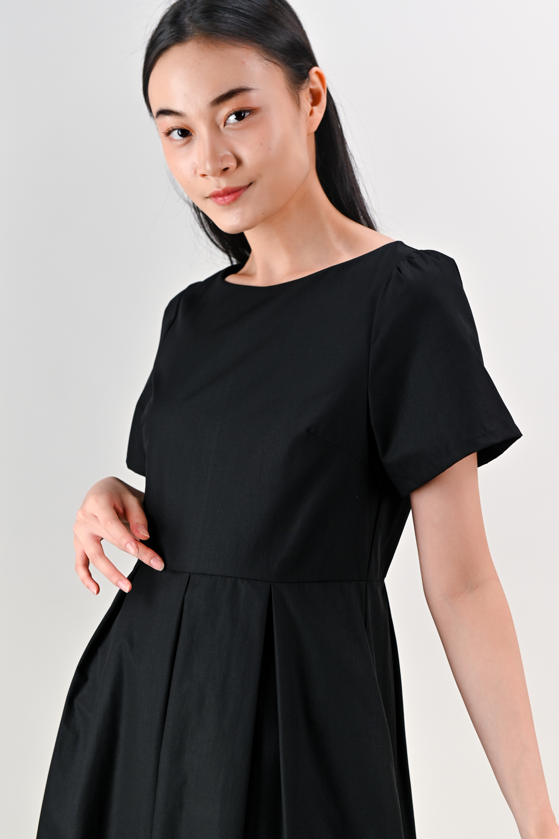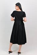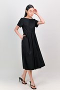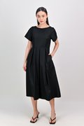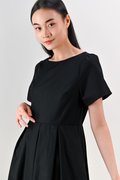 SALDANA SLEEVED BOX-PLEAT DRESS IN BLACK