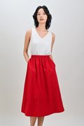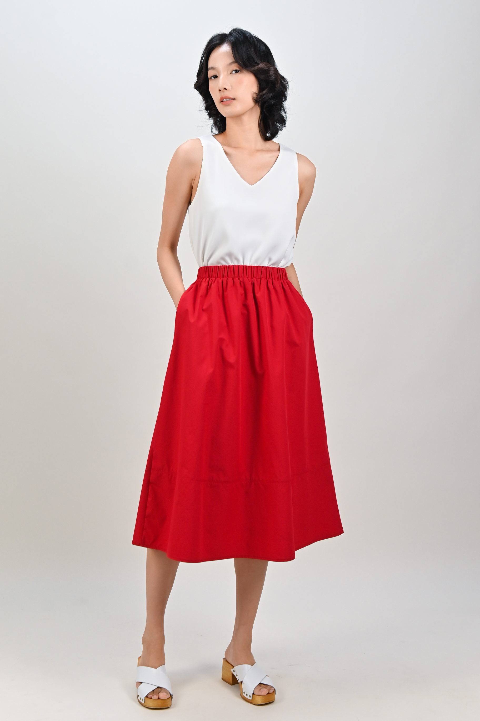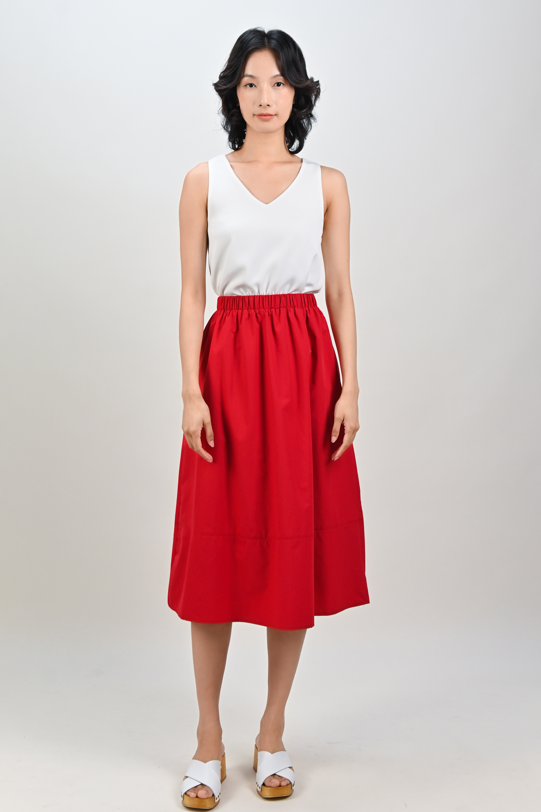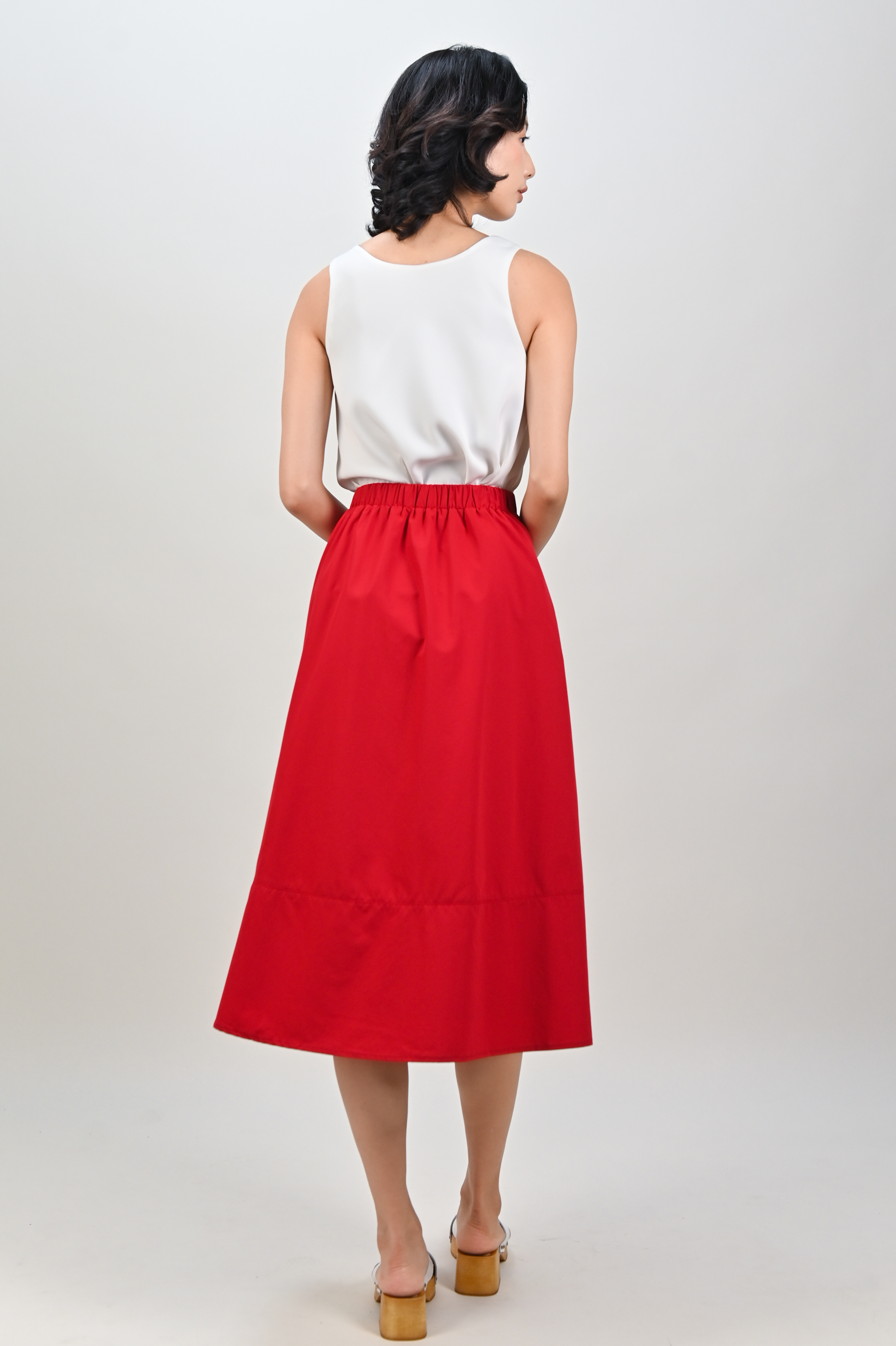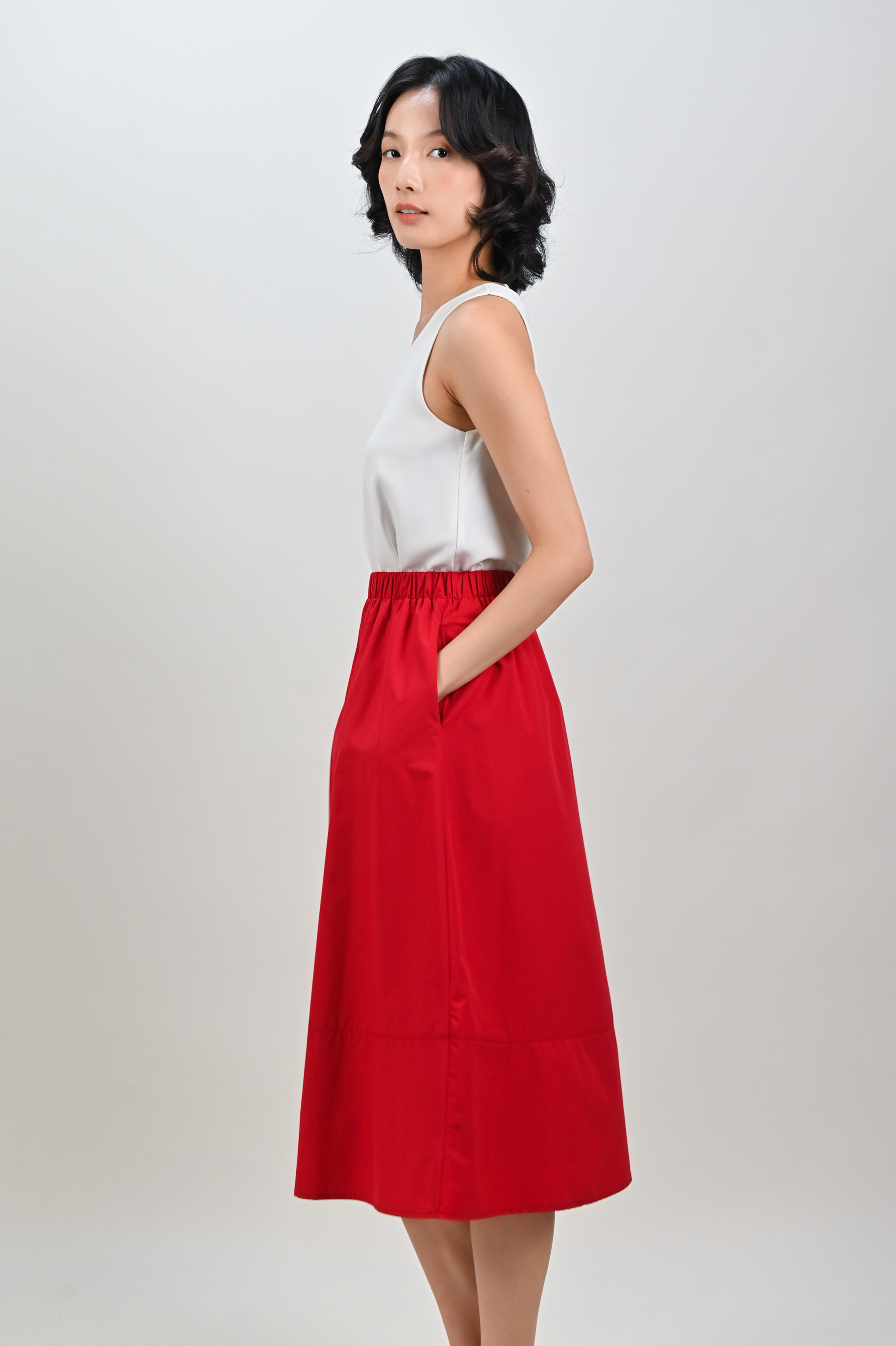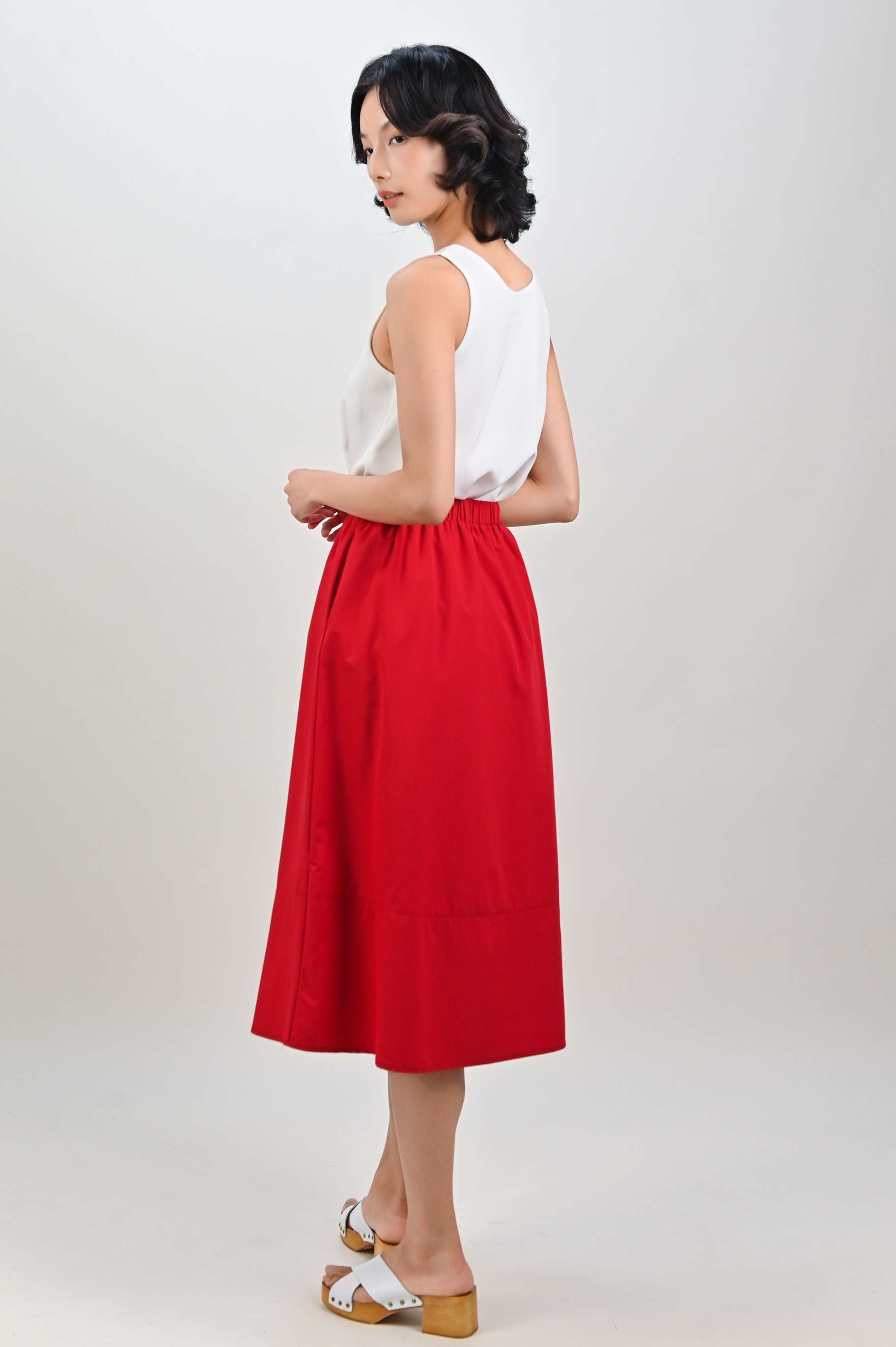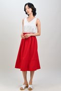 SAMANTHA ELASTIC-WAIST MIDI SKIRT IN RED