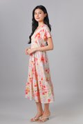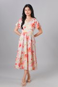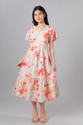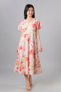 SAWYER FLORAL V-NECK SLEEVED MIDI DRESS IN RED