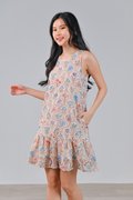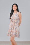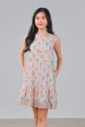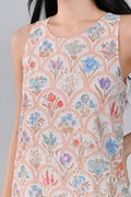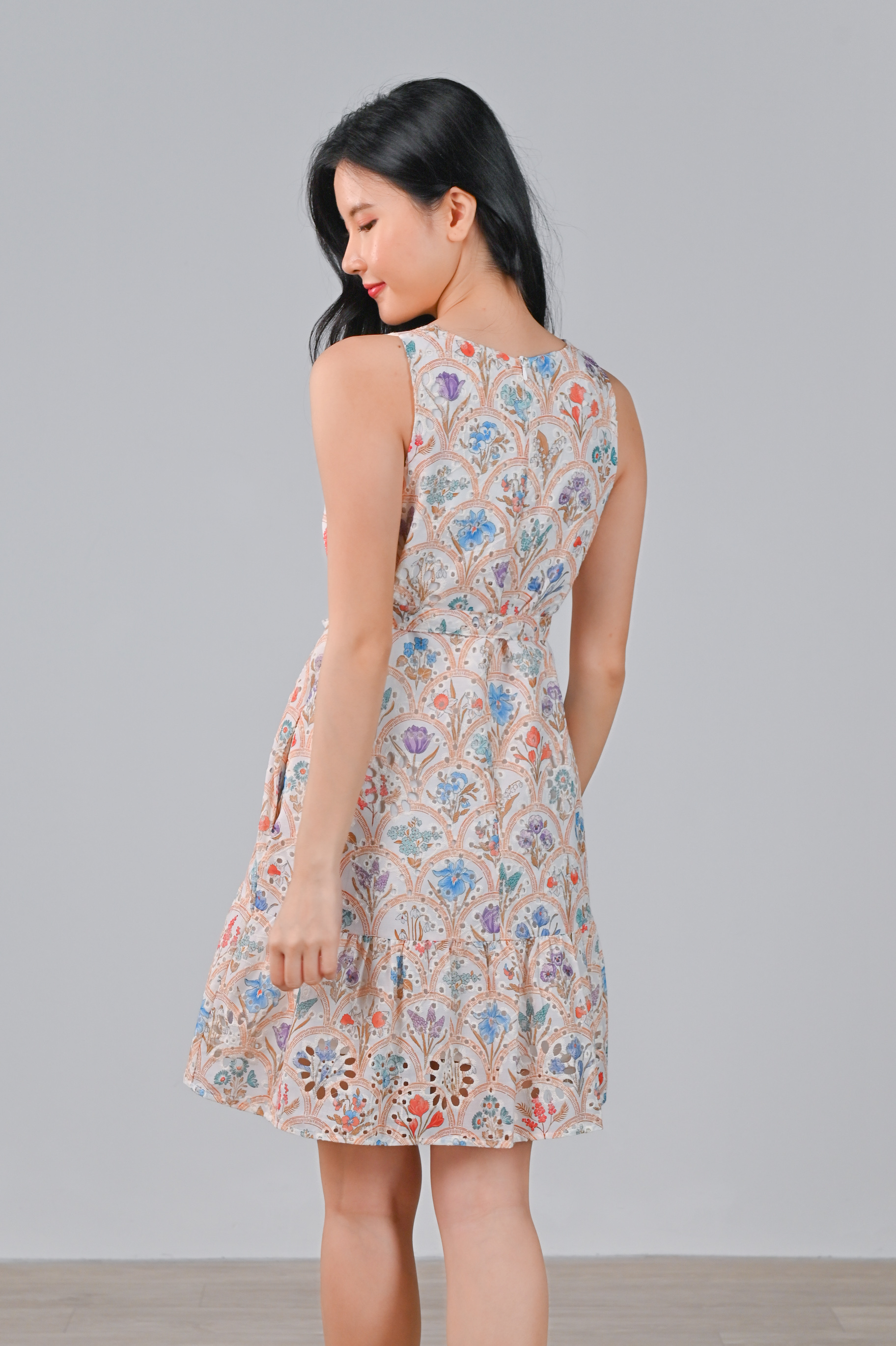 SCALLOP FLORALS SLEEVELESS DROPWAIST DRESS