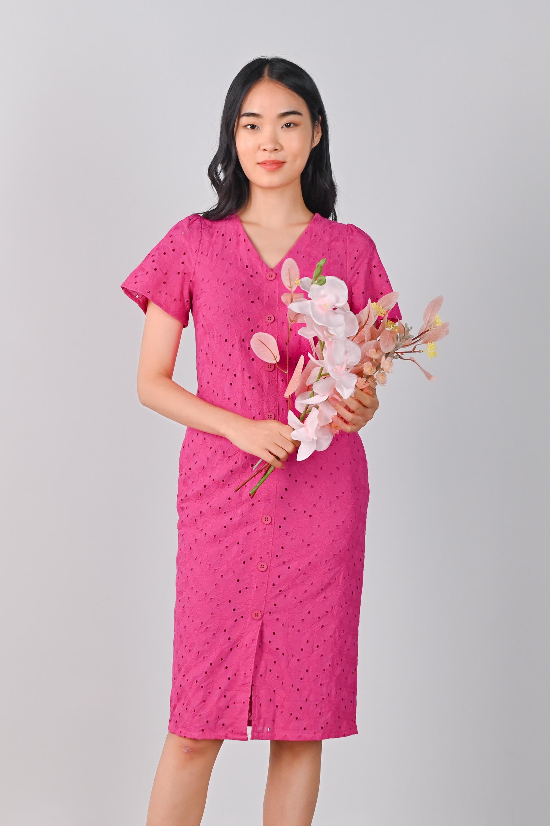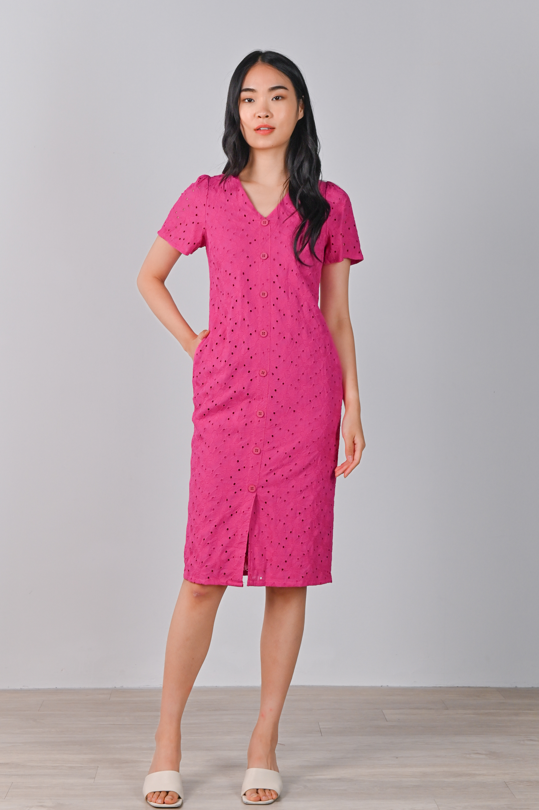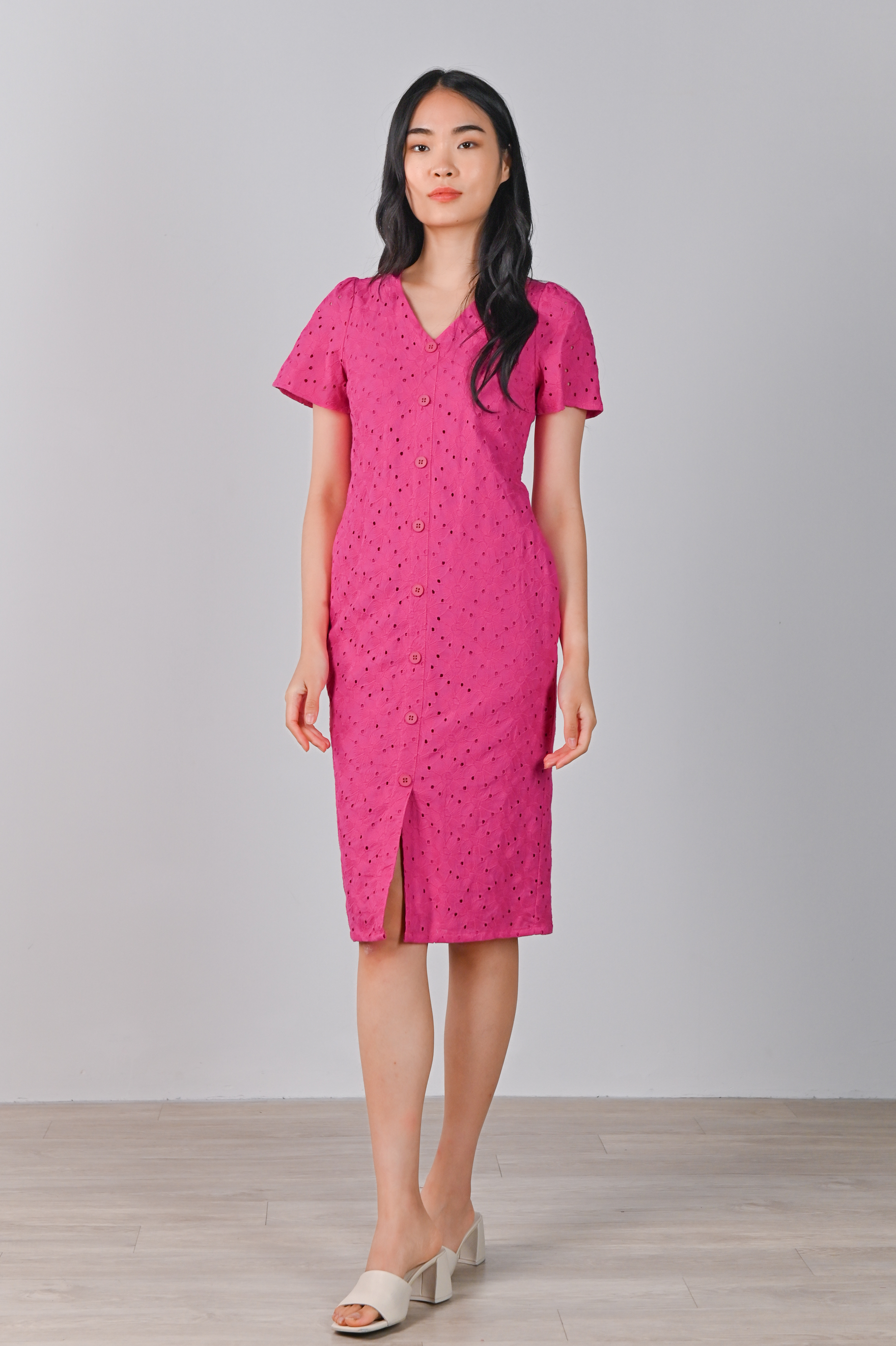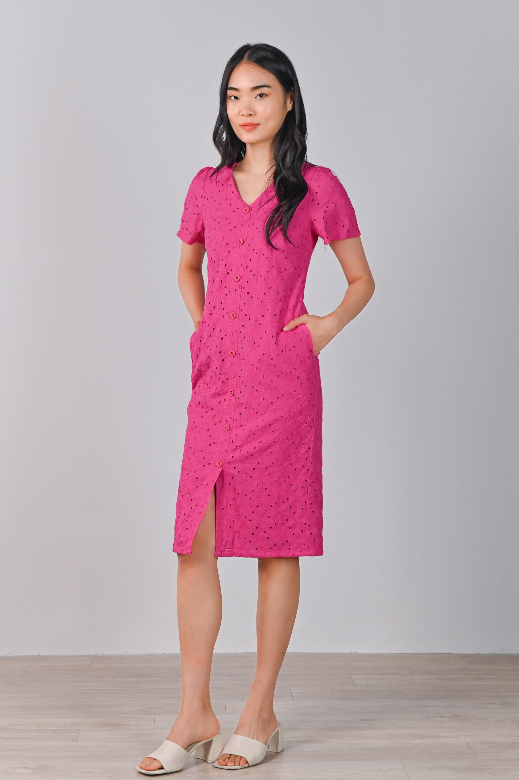 SEQUOIA EYELET BUTTON DRESS IN PINK