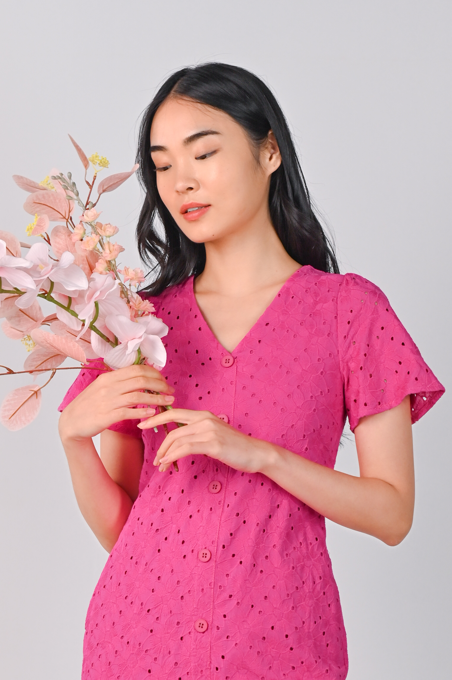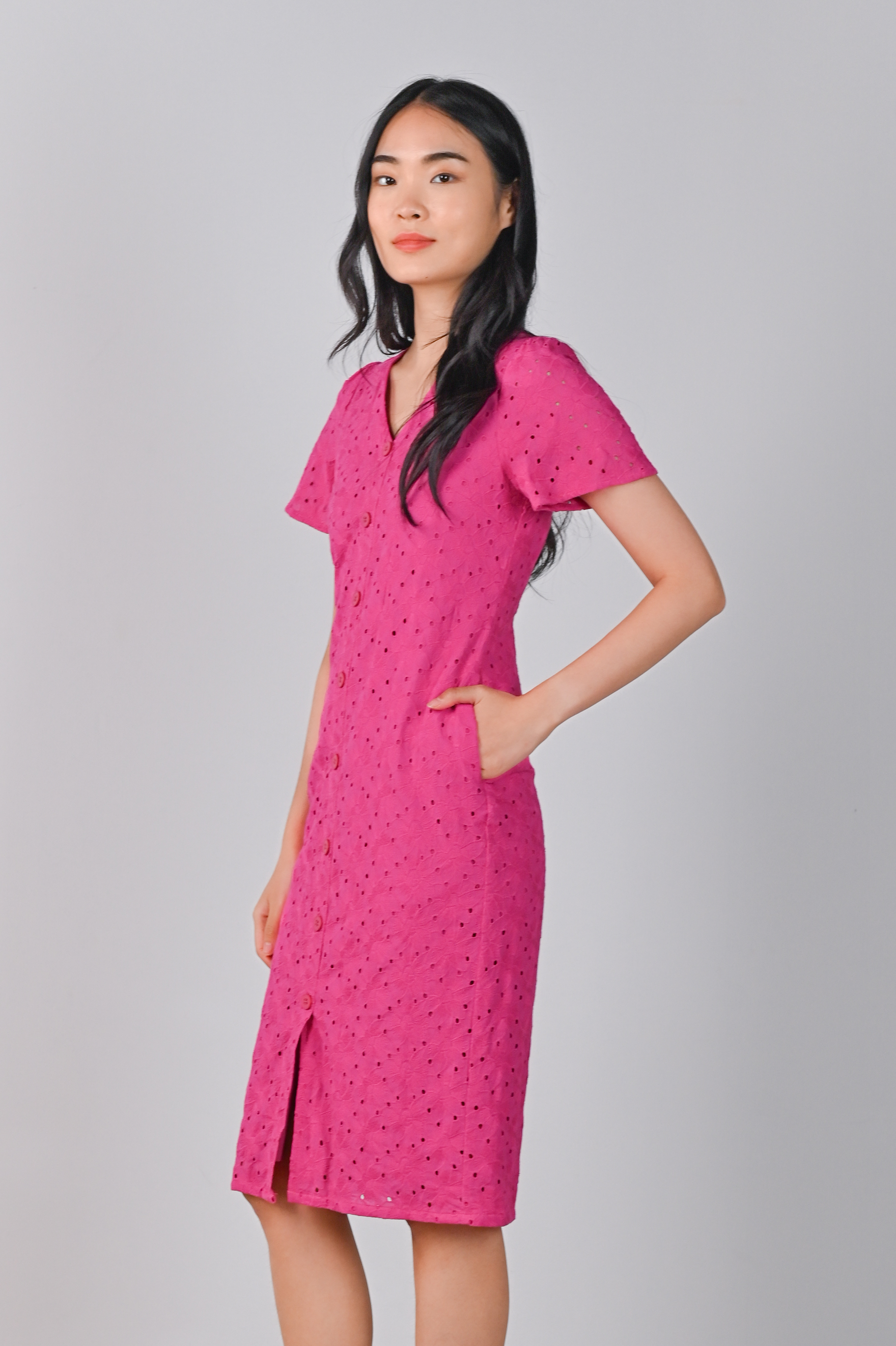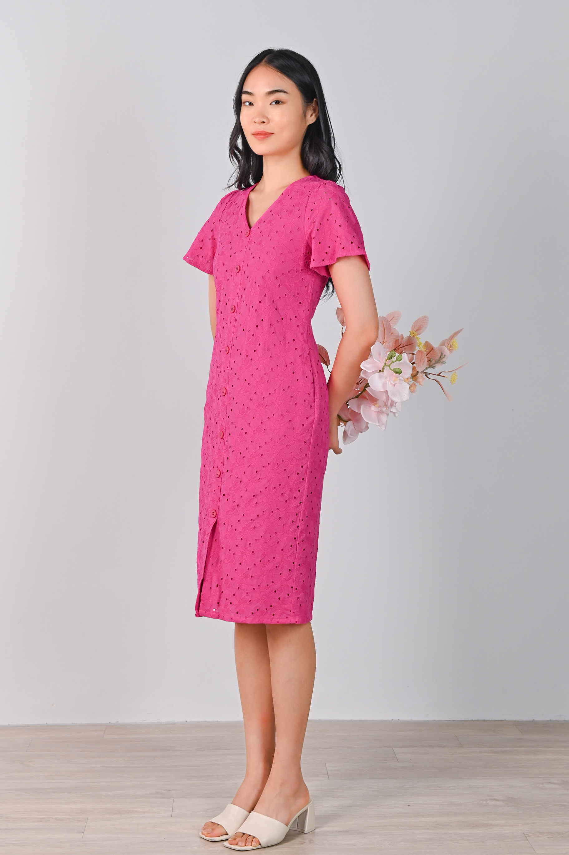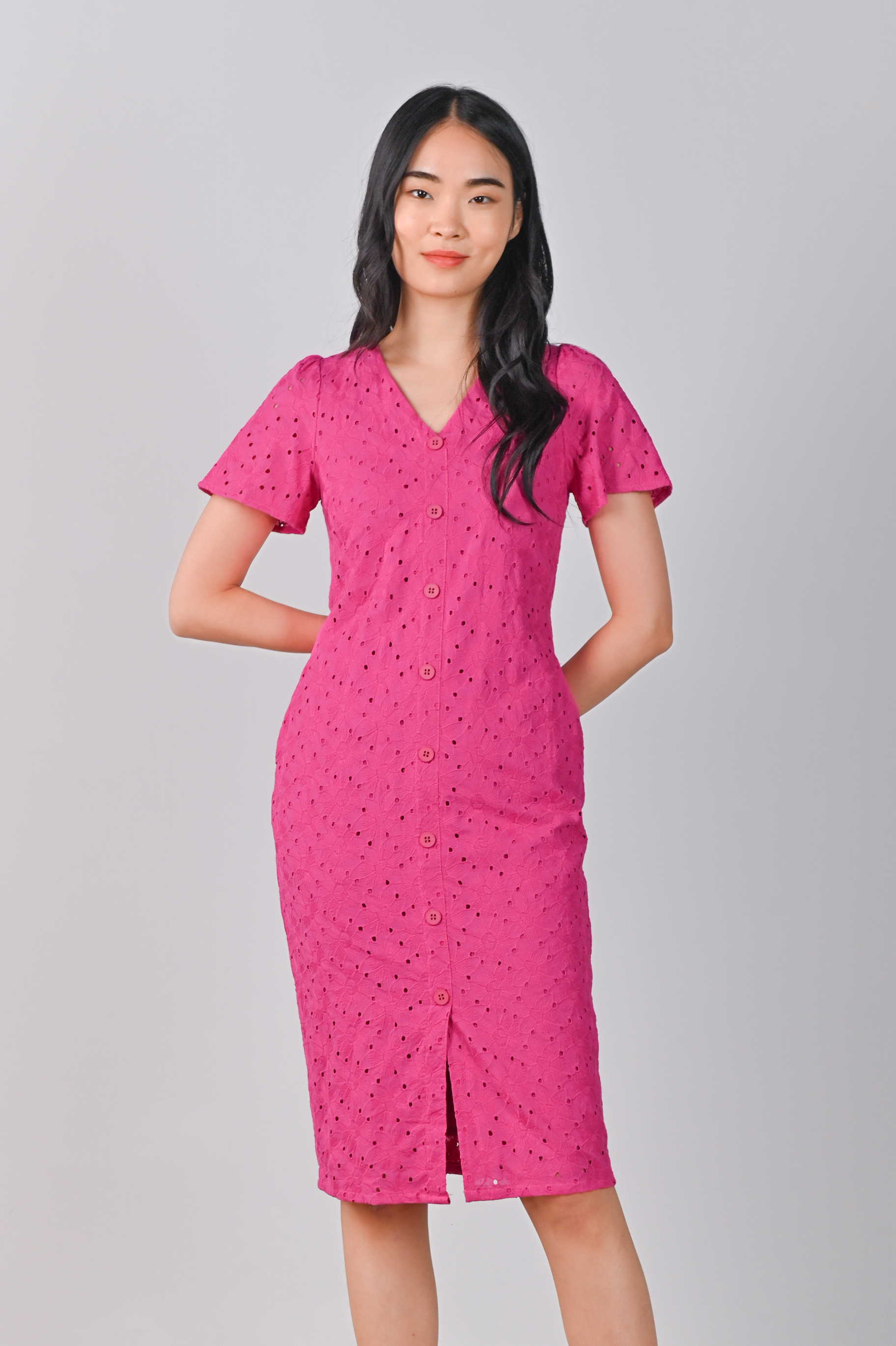 SEQUOIA EYELET BUTTON DRESS IN PINK