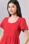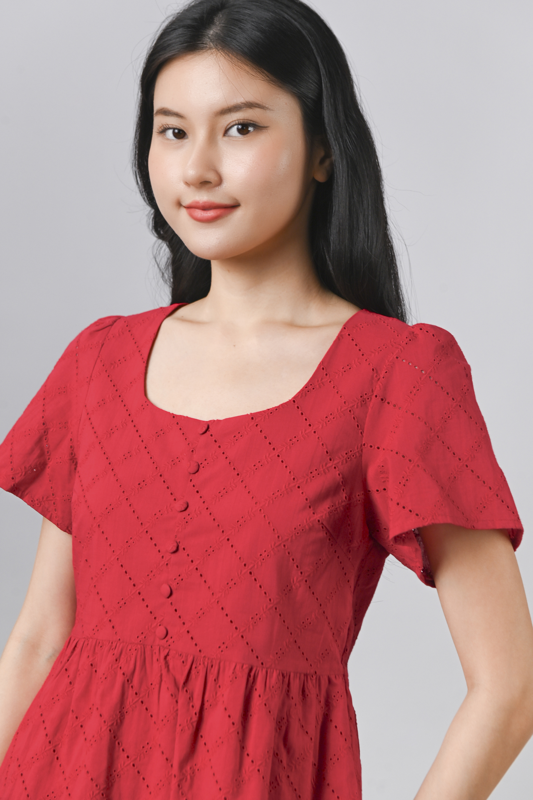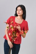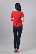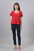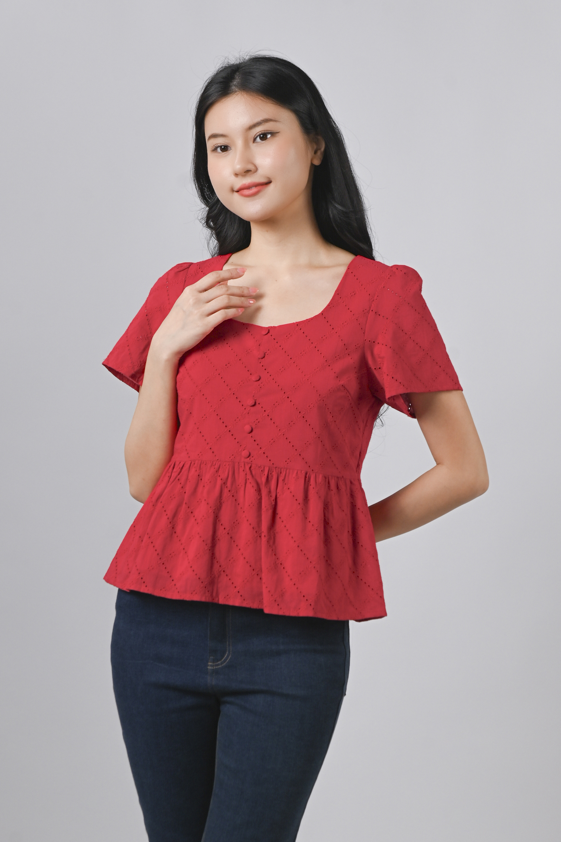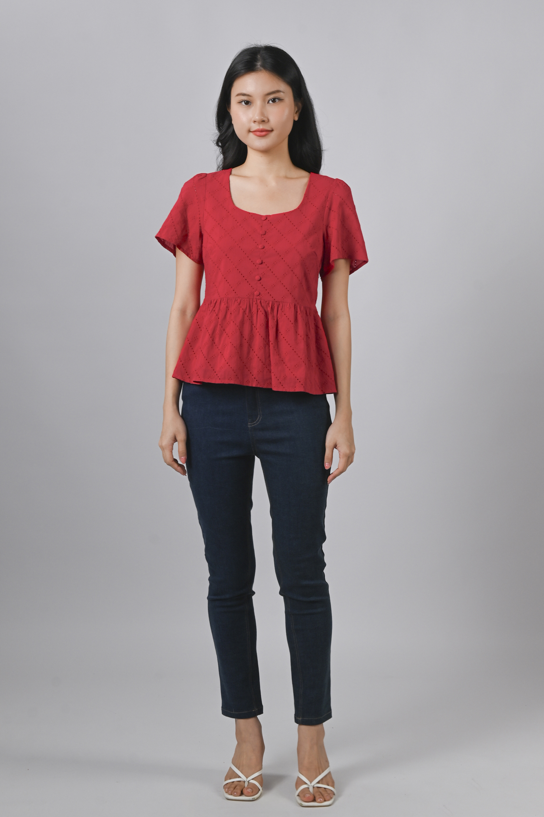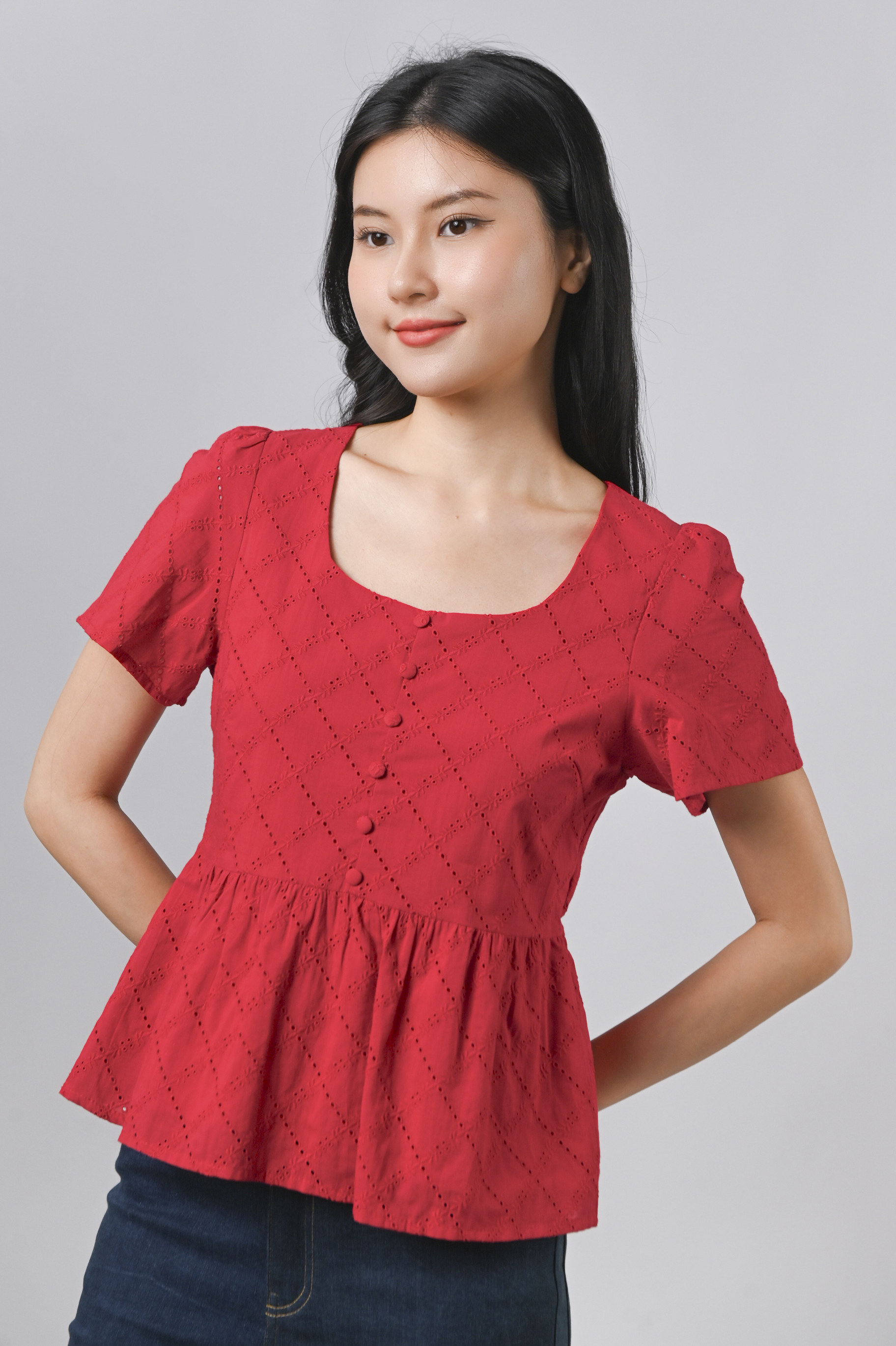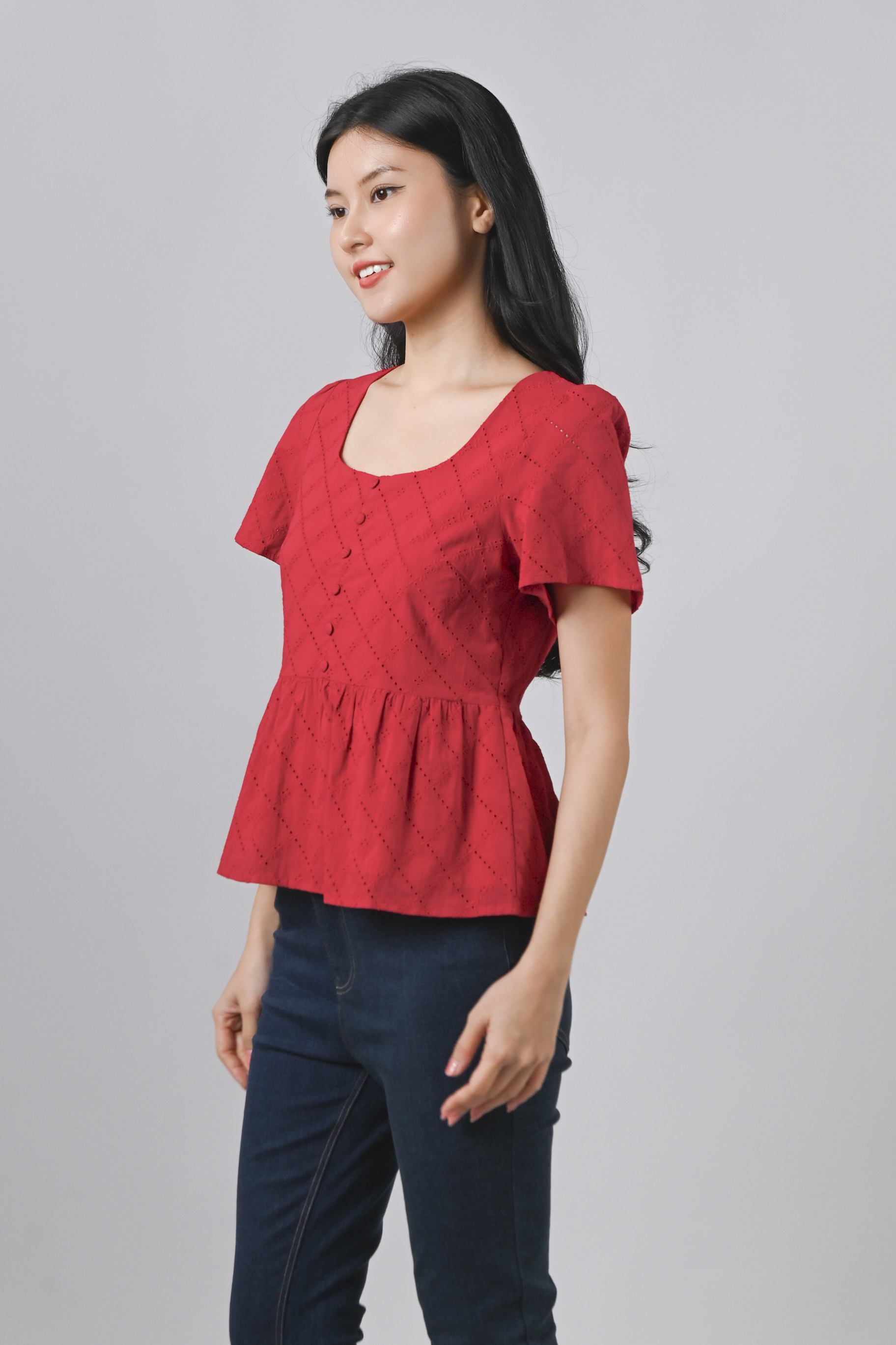 SERAPH EYELET SCOOP-NECK PEPLUM TOP IN RED