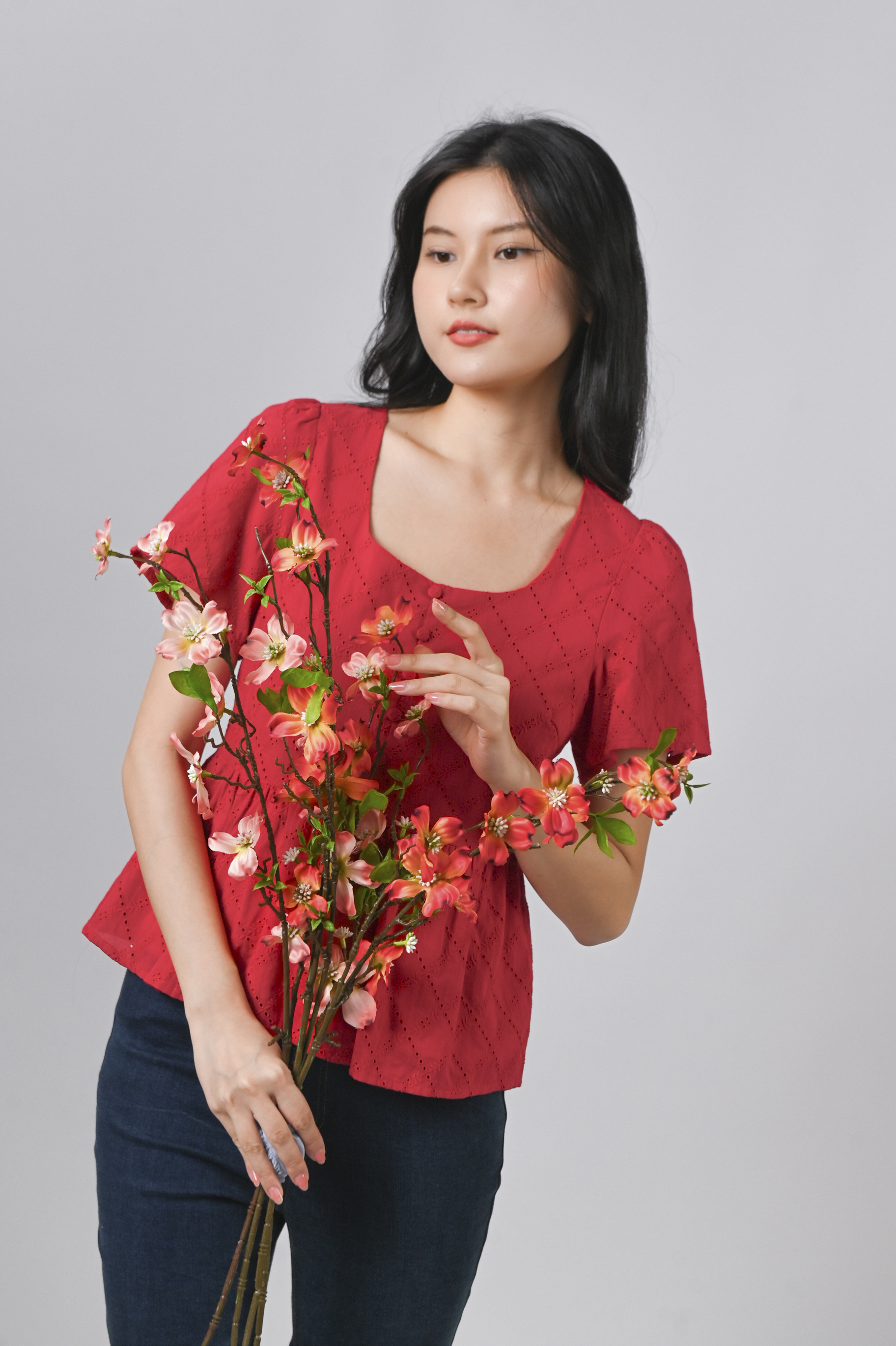 Actual stocks may varyRed hot and ready to win! 🔥 Pair our Seraph Eyelet Peplum Top with your fave AWE bottom for a winning outfit!