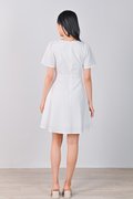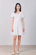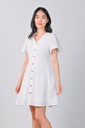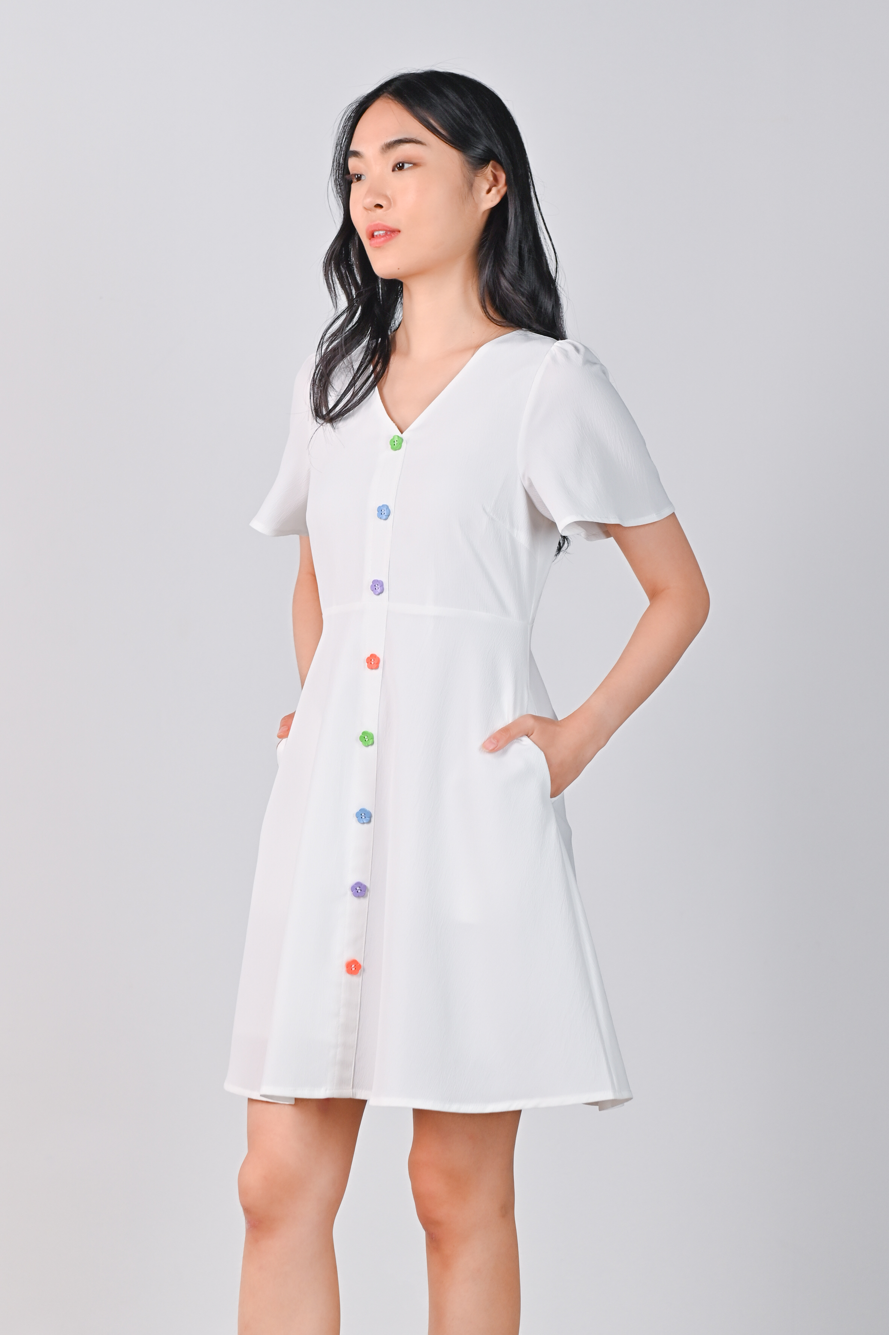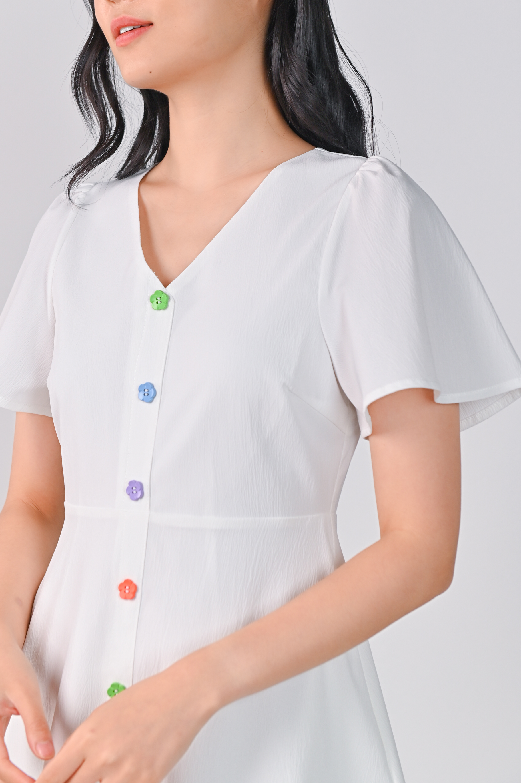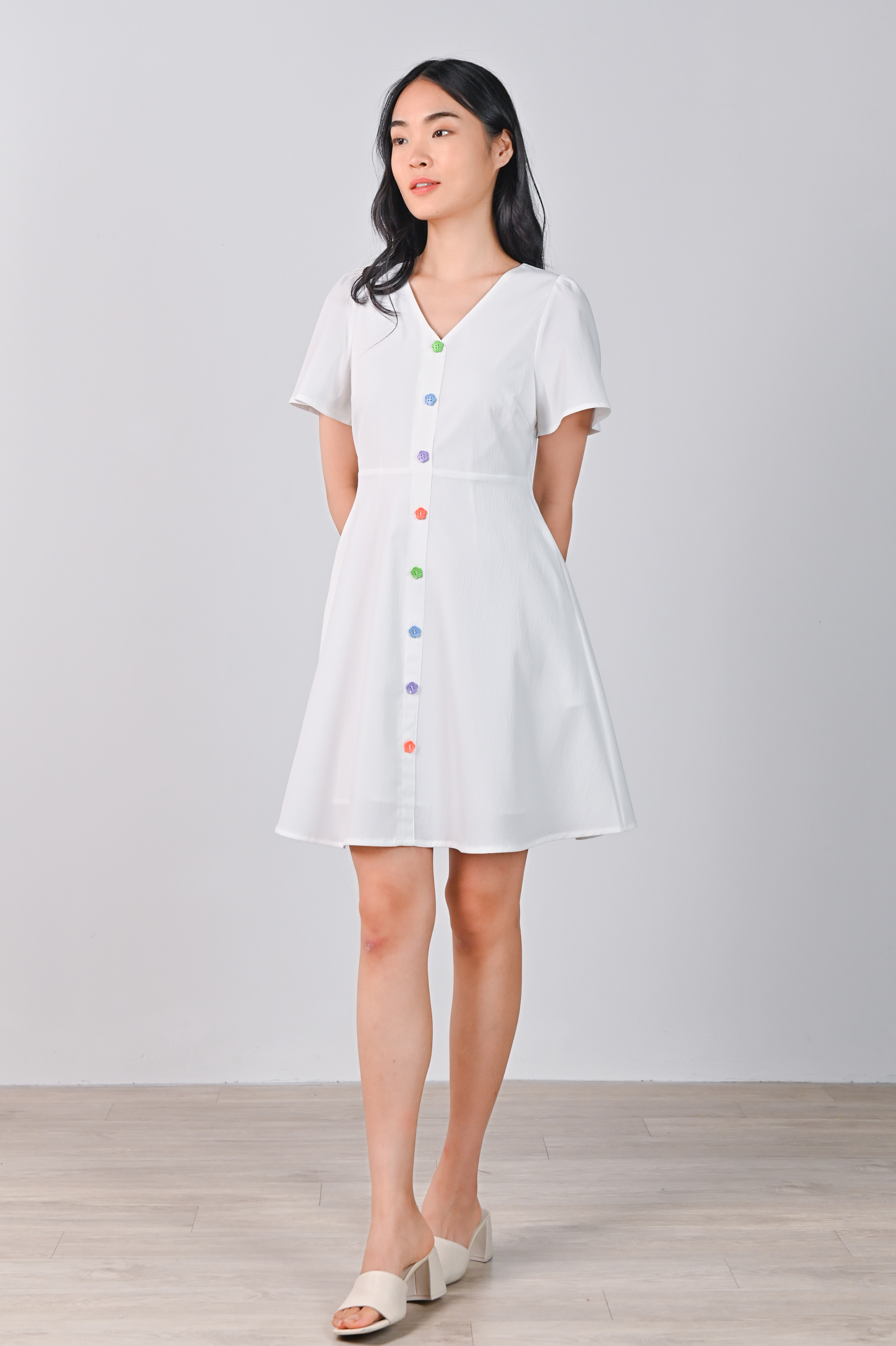 SHAMONE FLOWER-BUTTON DRESS IN OFF-WHITE