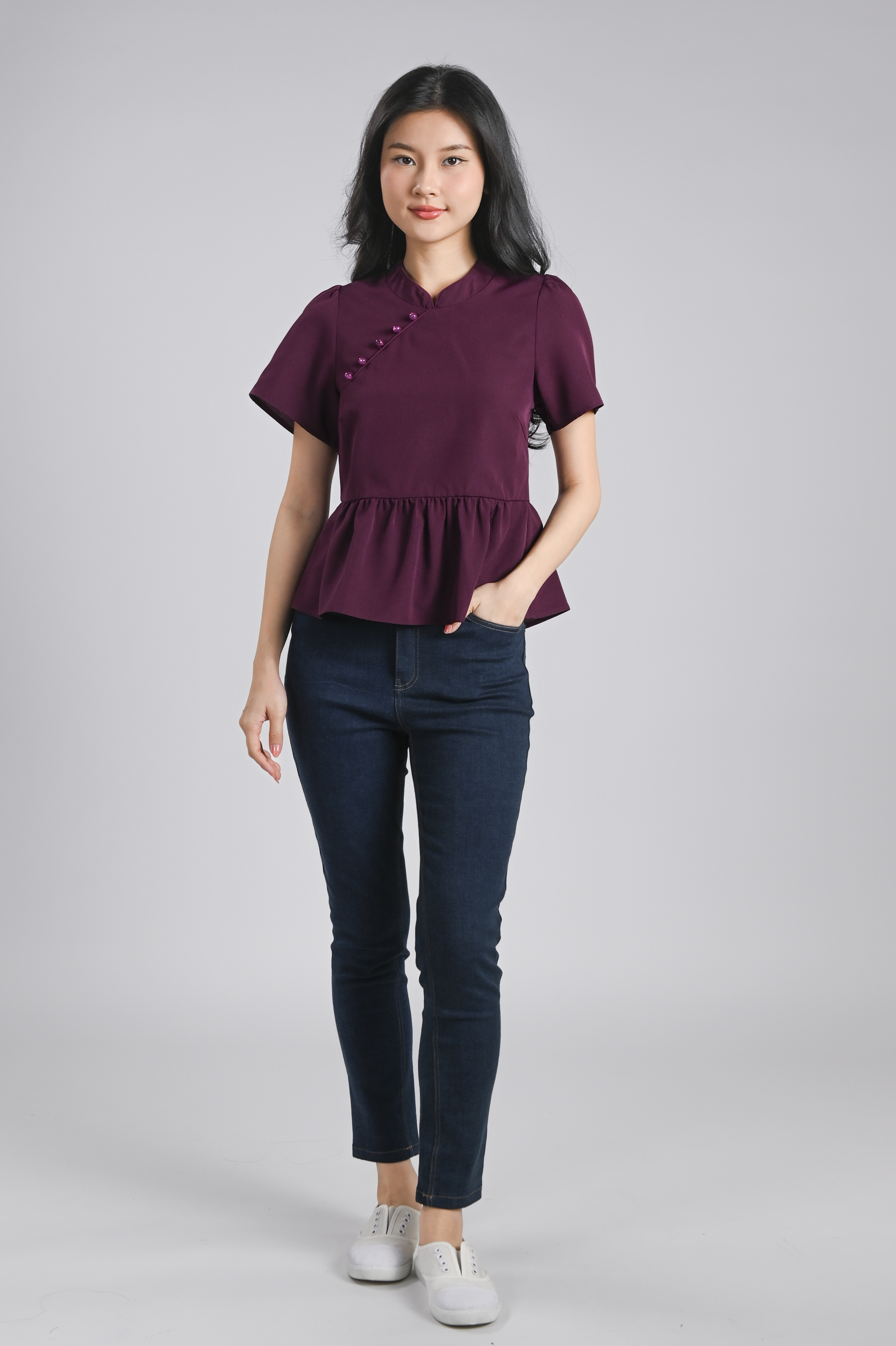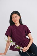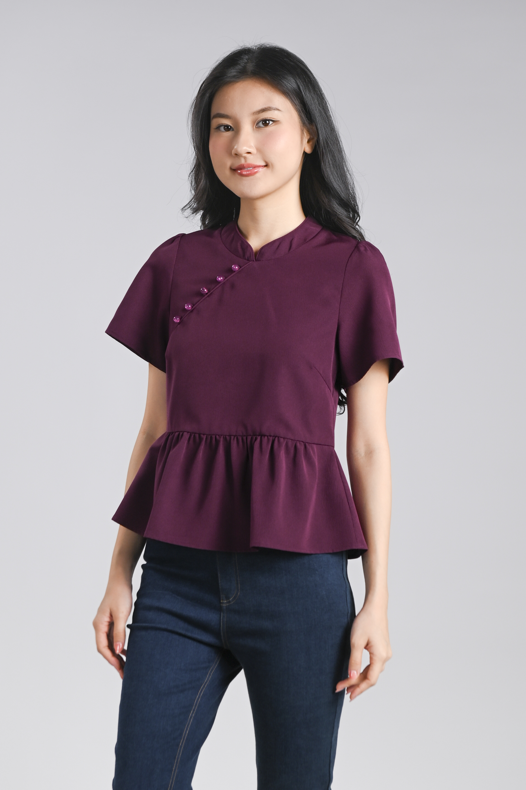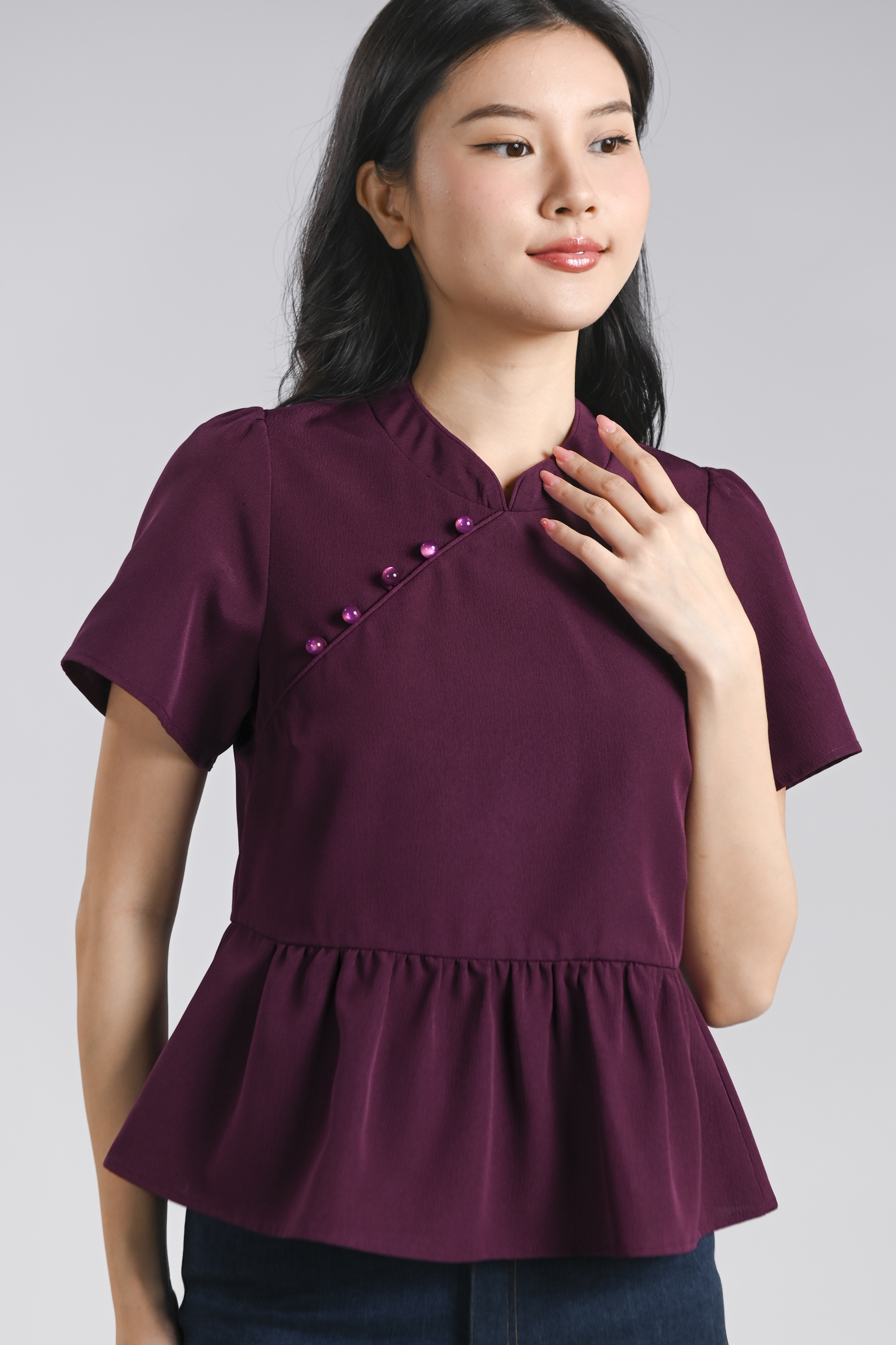 SHILIN SLEEVED CHEONGSAM TOP IN MAROON