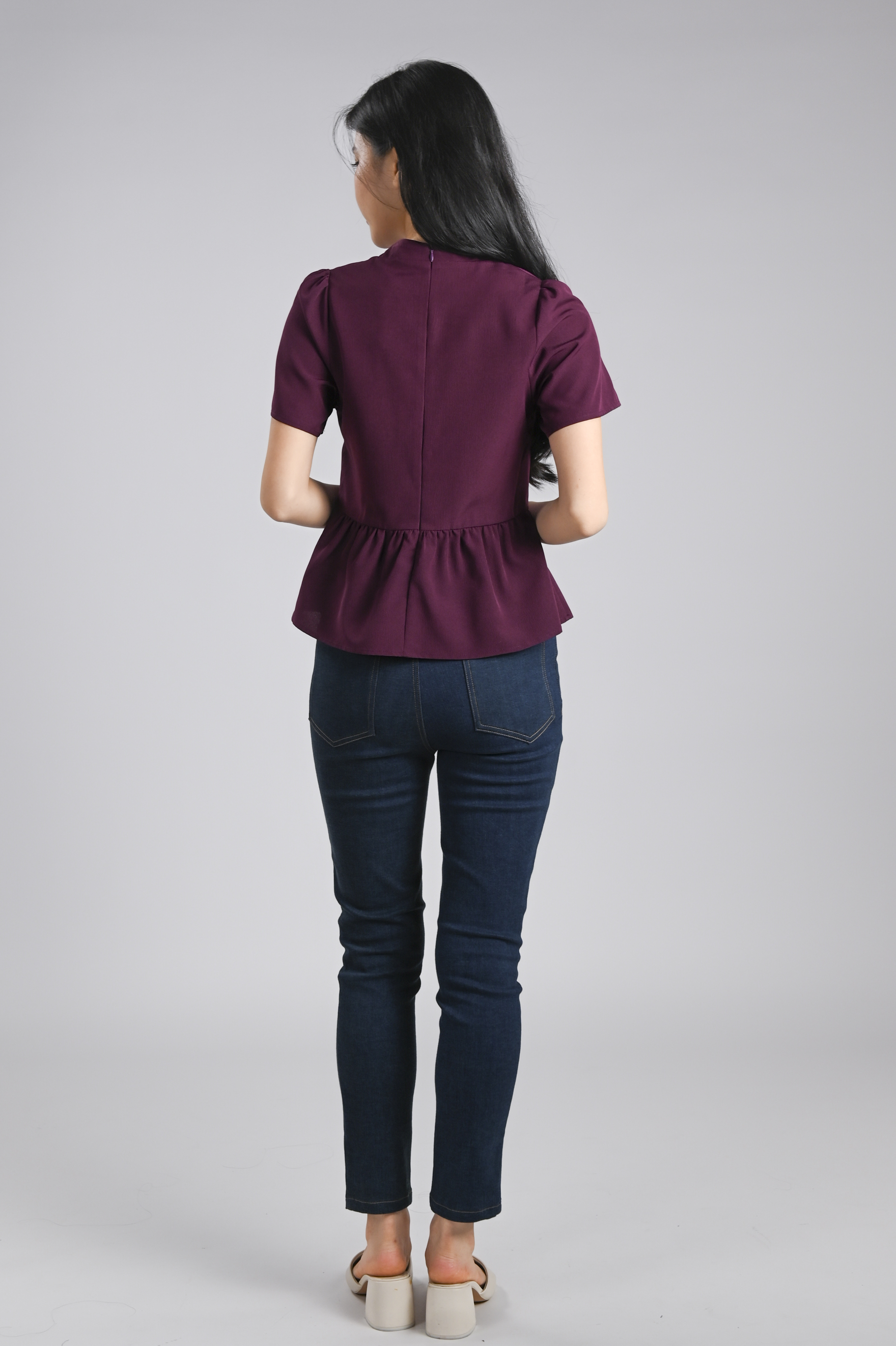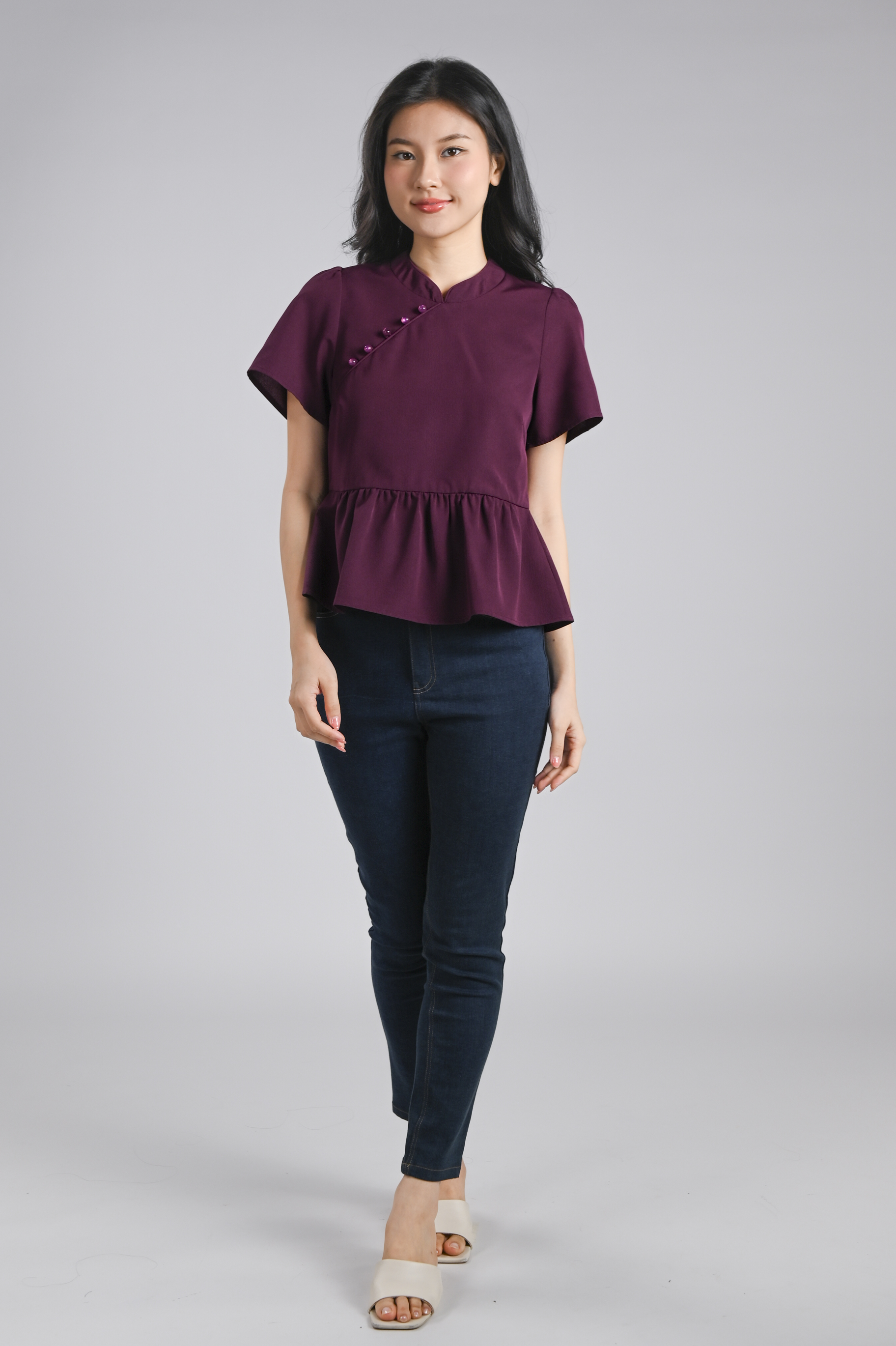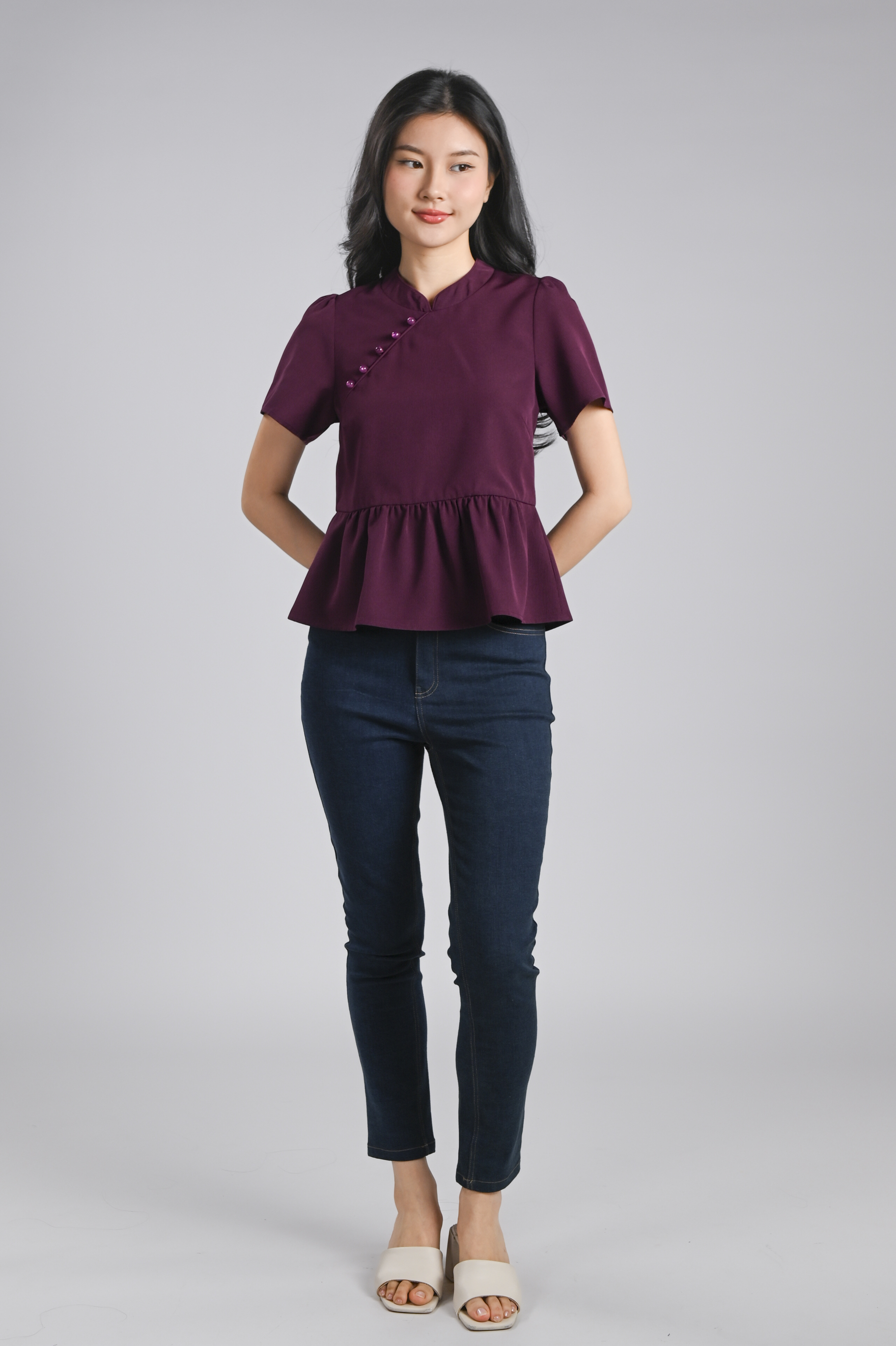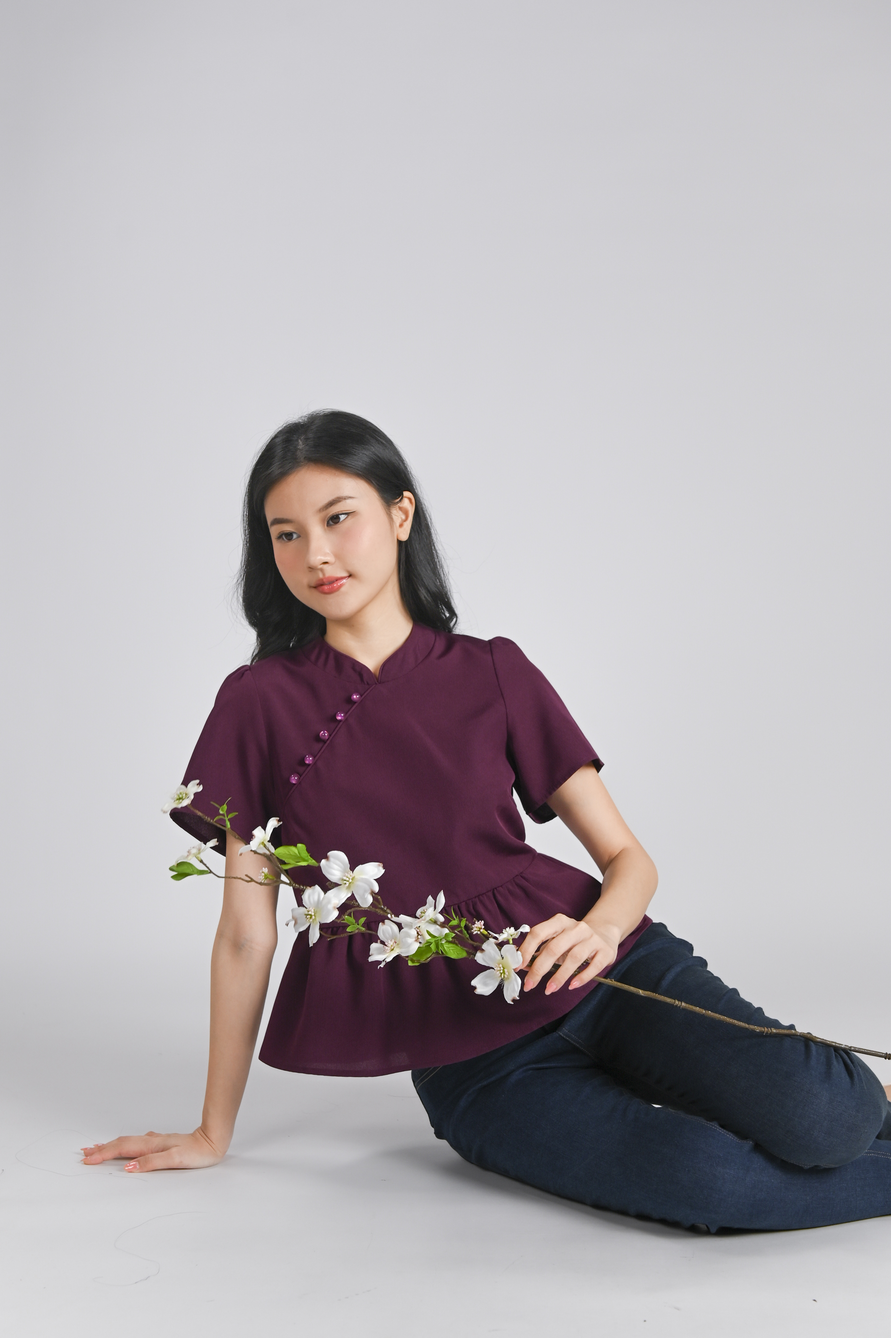 SHILIN SLEEVED CHEONGSAM TOP IN MAROON