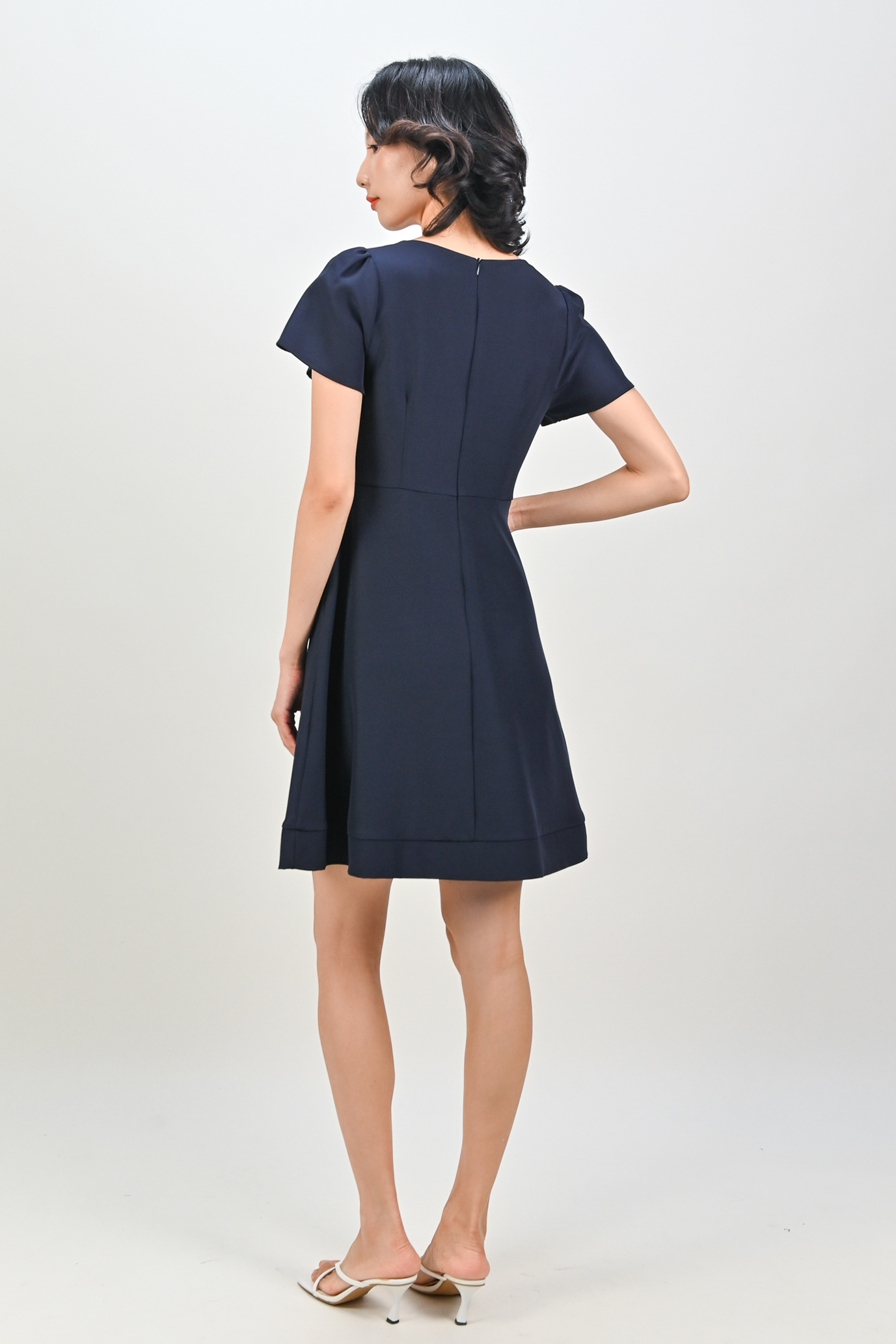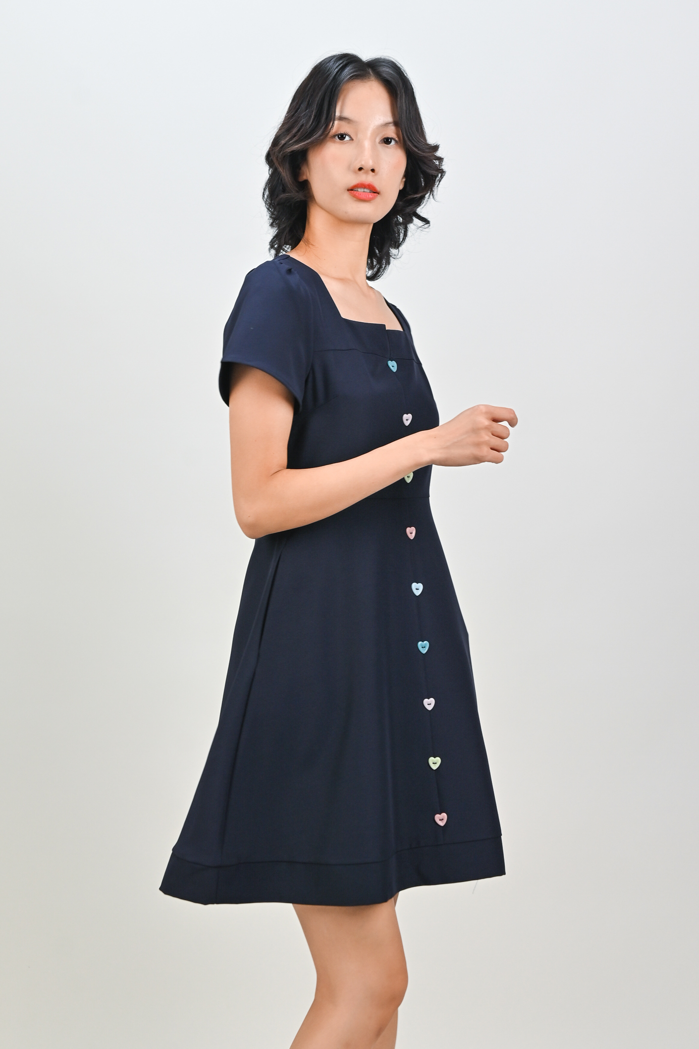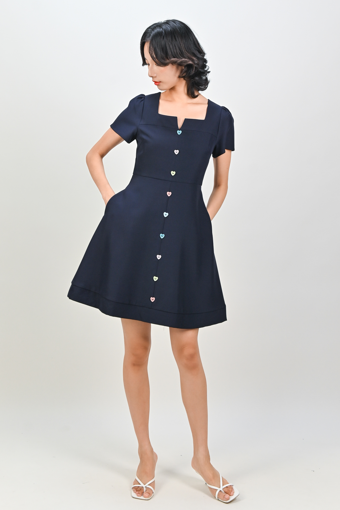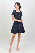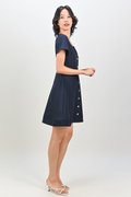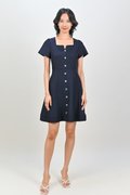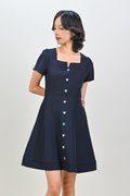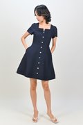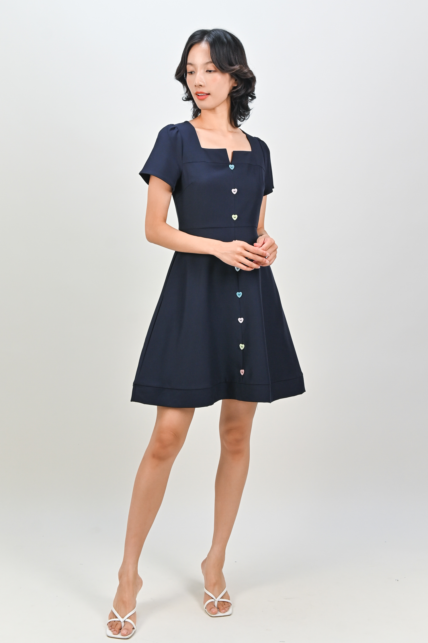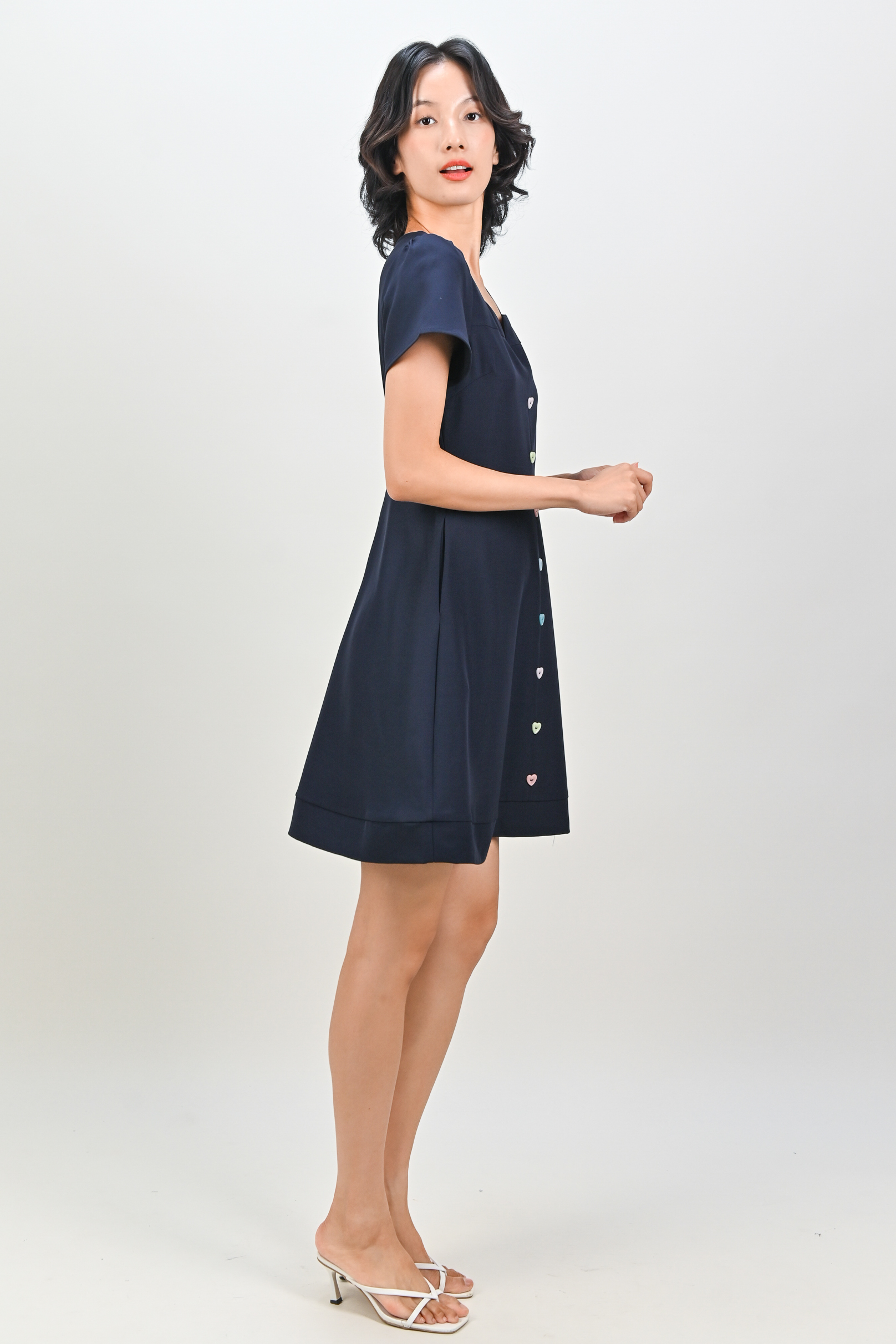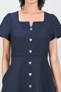 SHINZO HEART-BUTTON SLEEVED DRESS IN NAVY