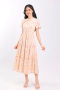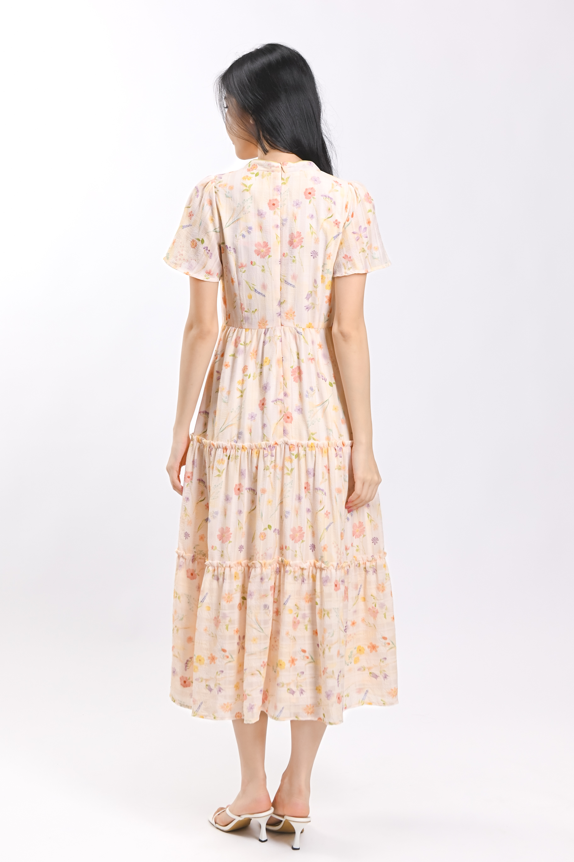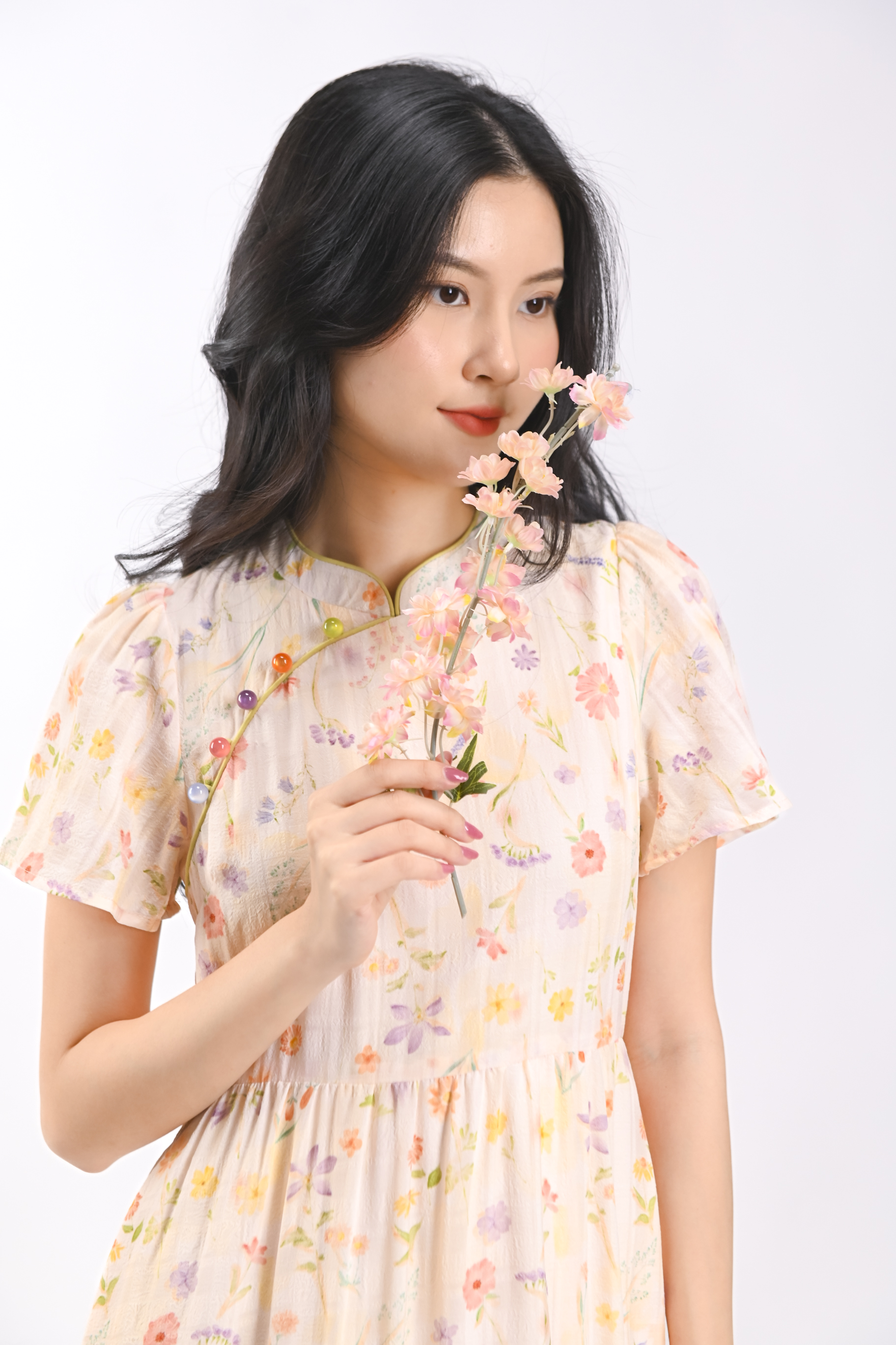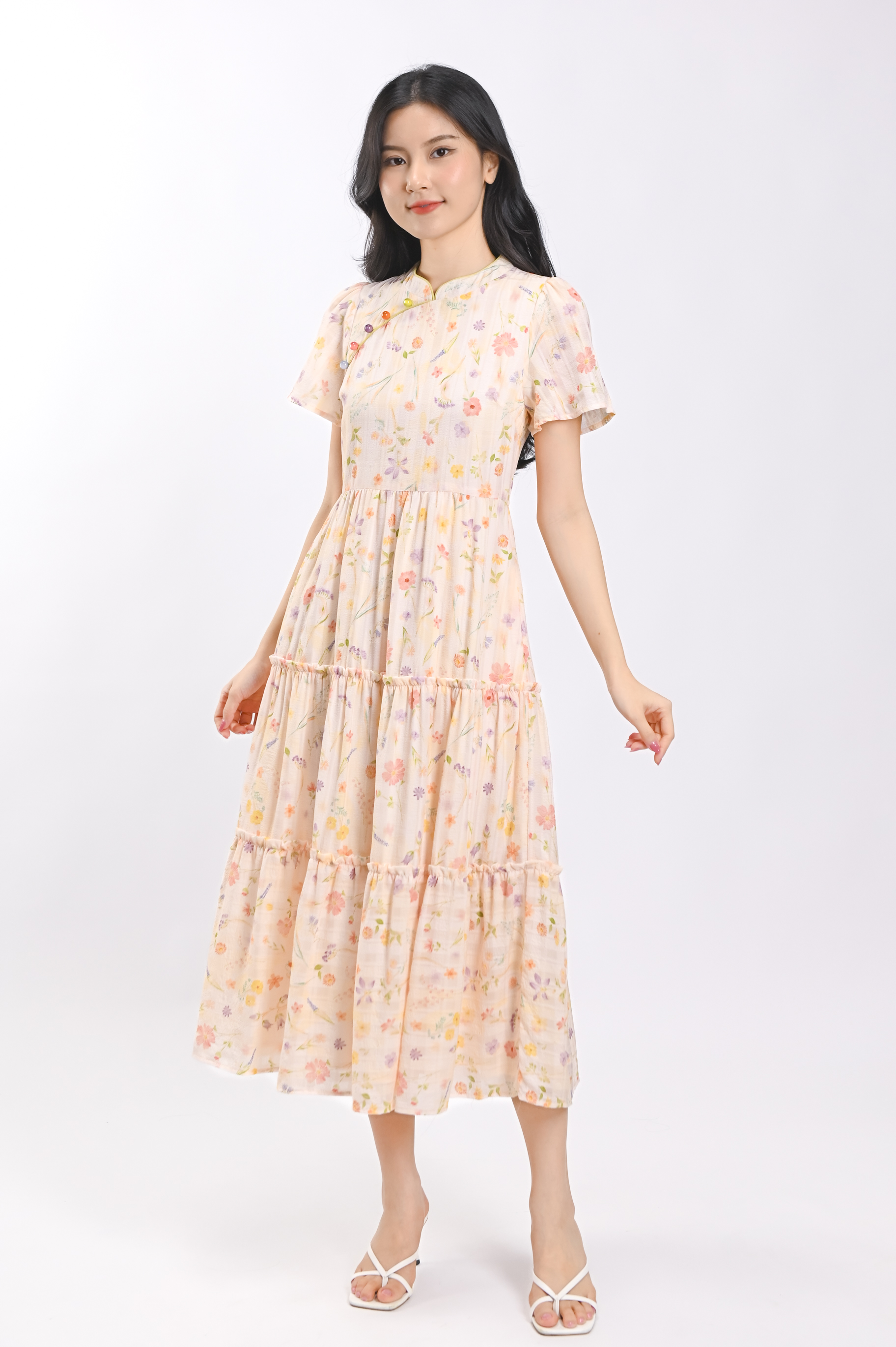 SHIYUN CREAM FLORAL TIERED CHEONGSAM DRESS
