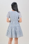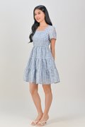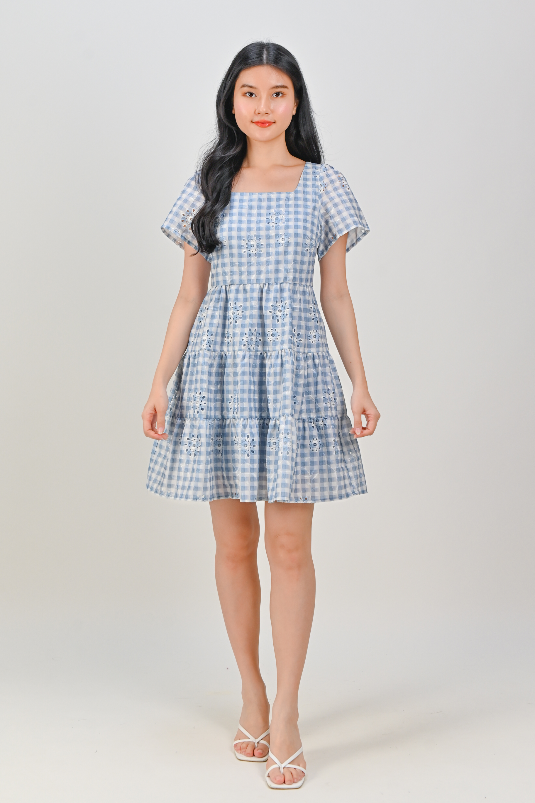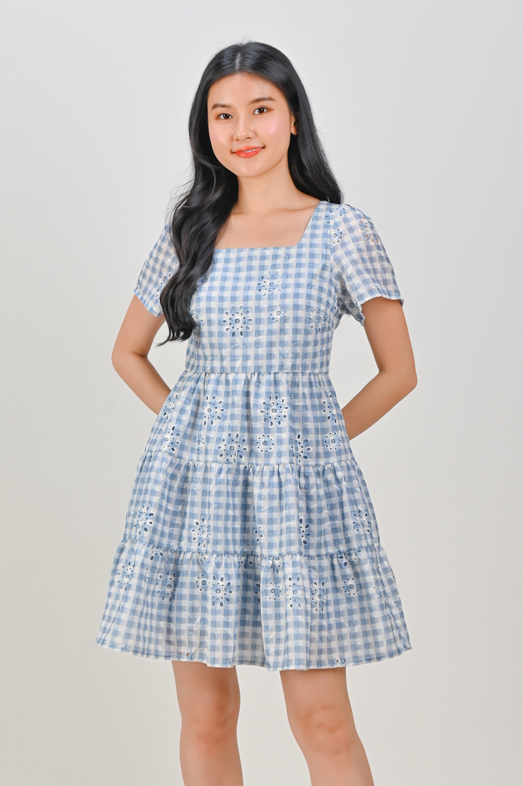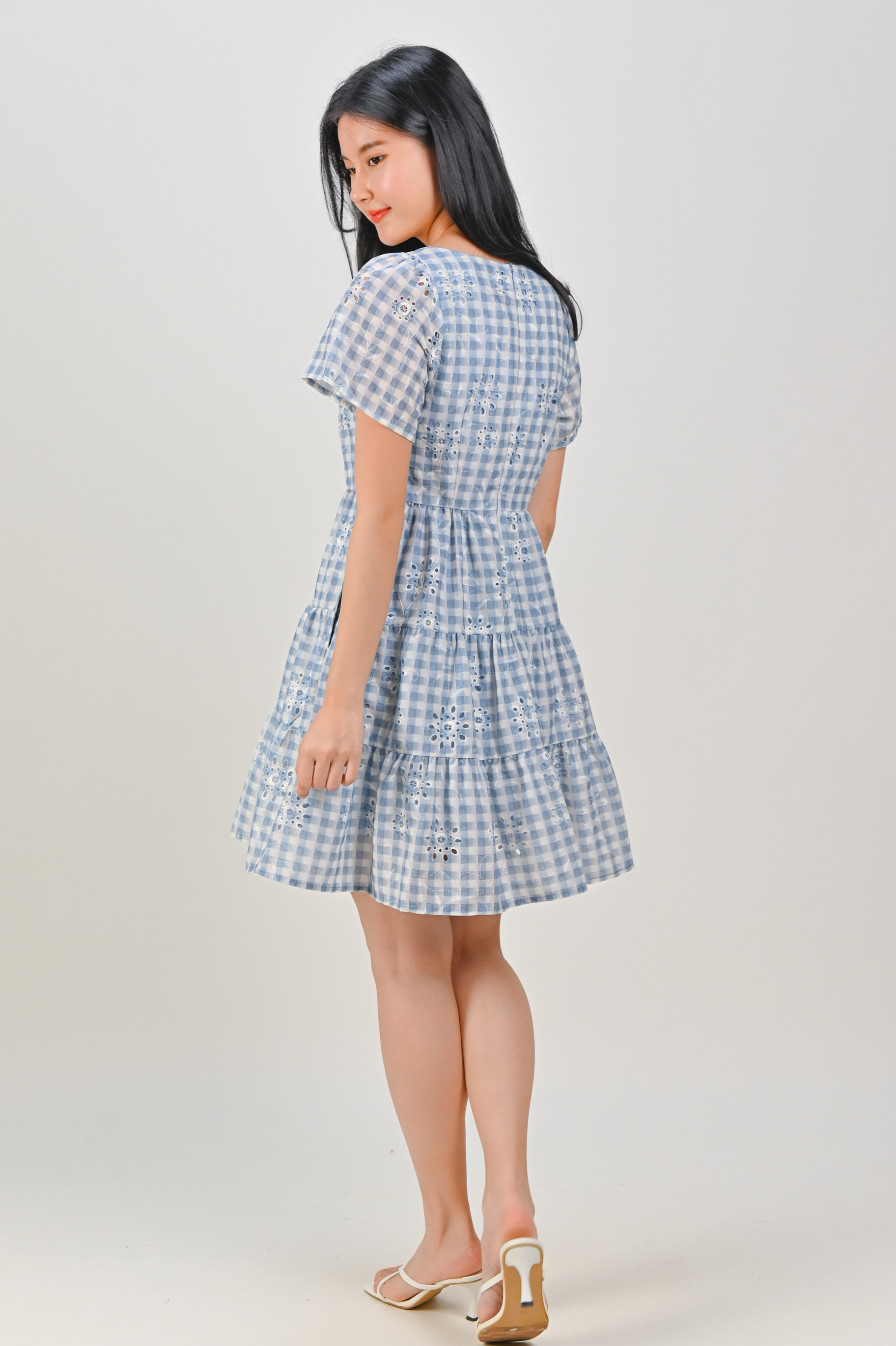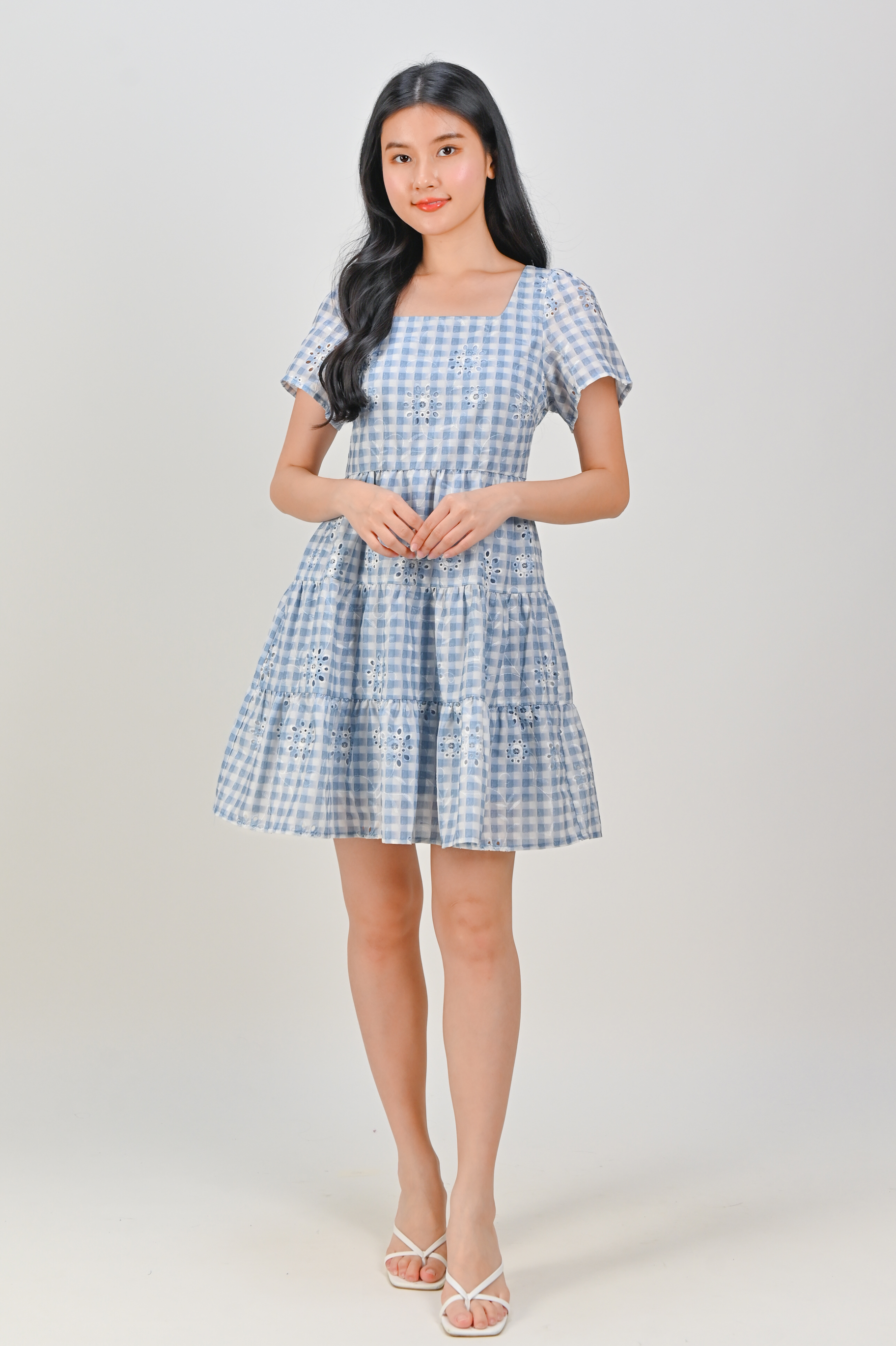 SHIZUKU GINGHAM EYELET BABYDOLL DRESS IN BLUE