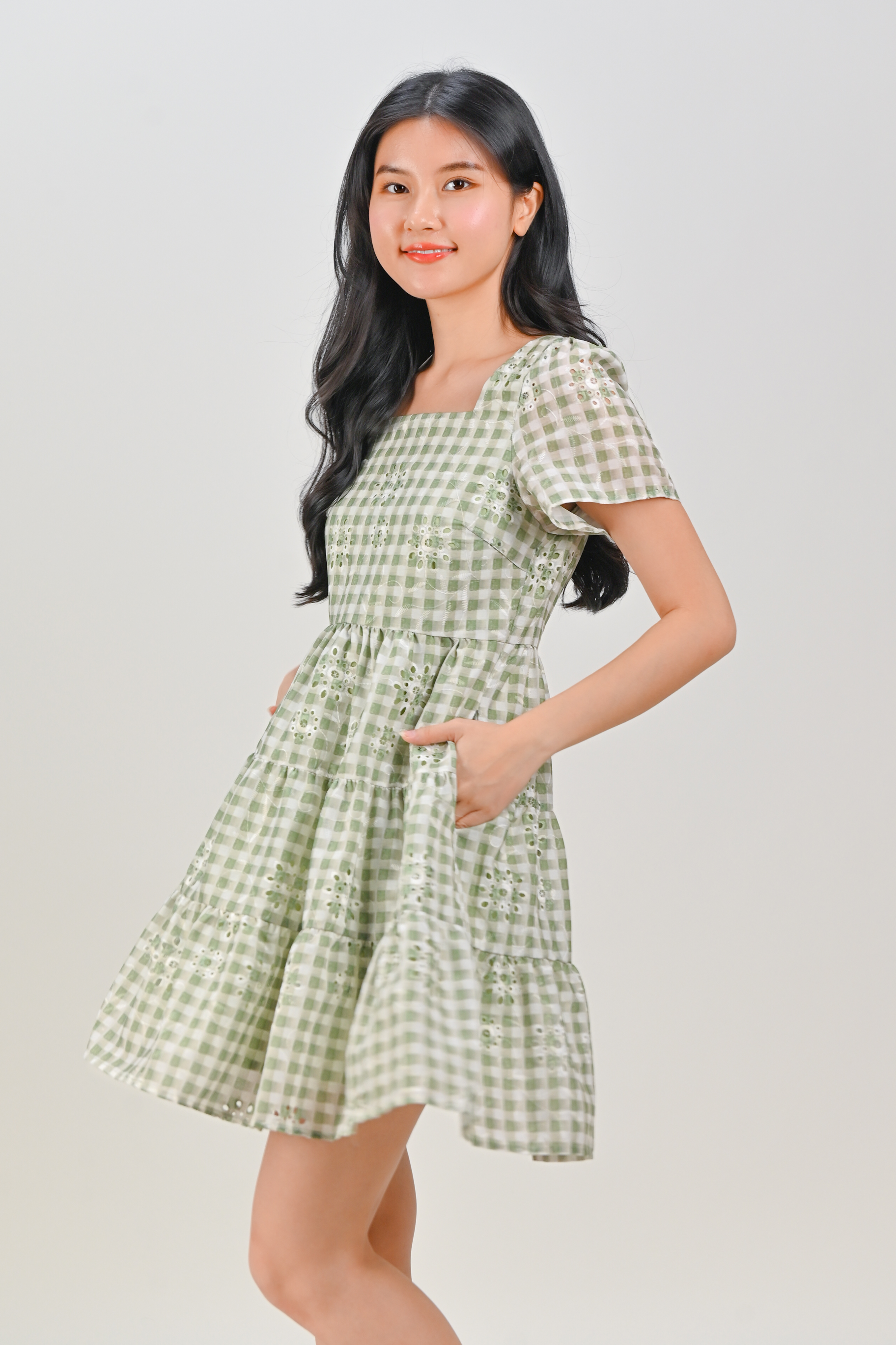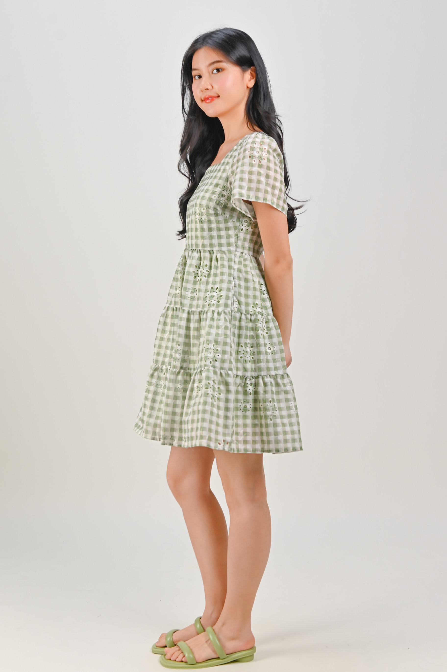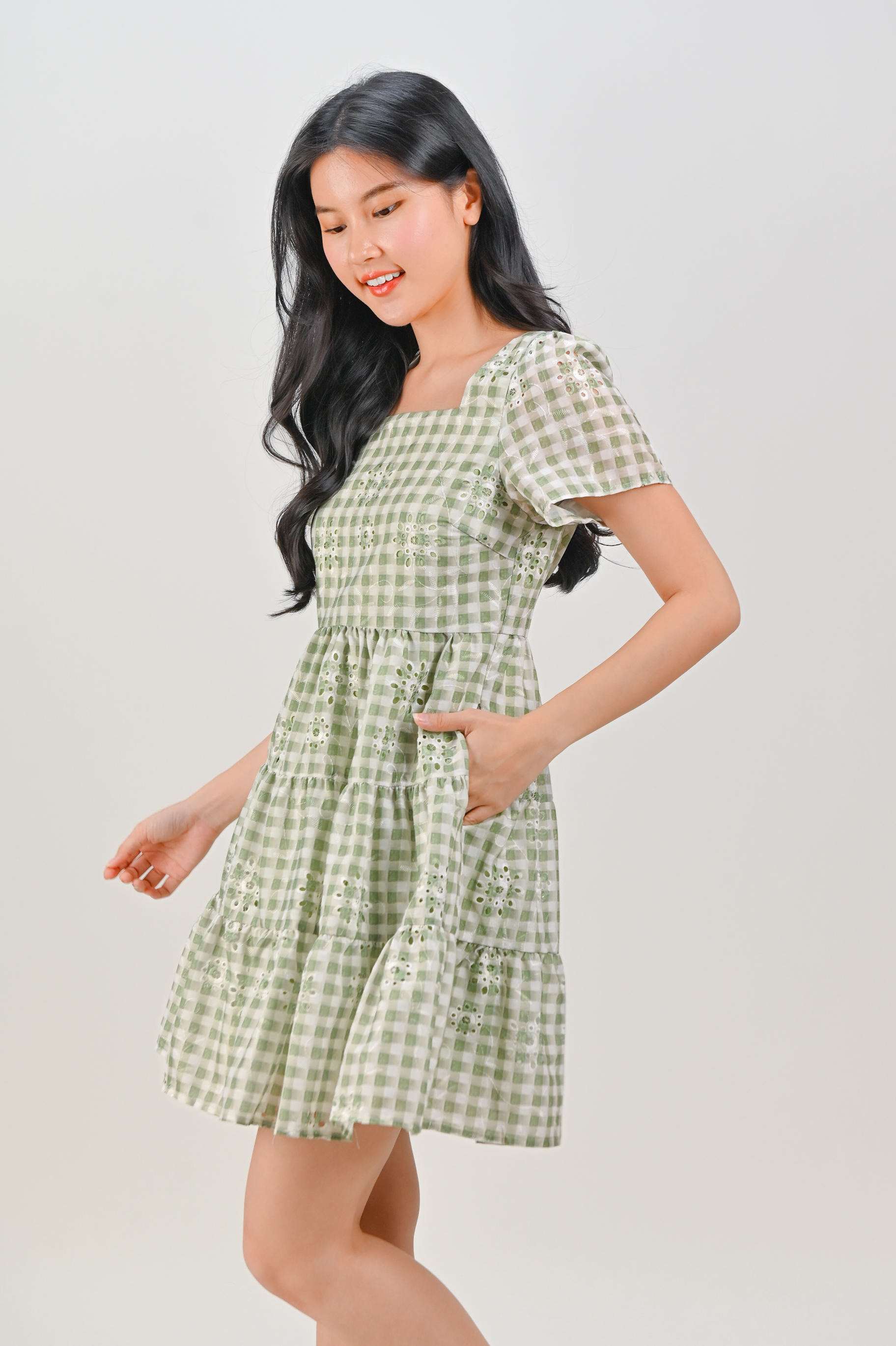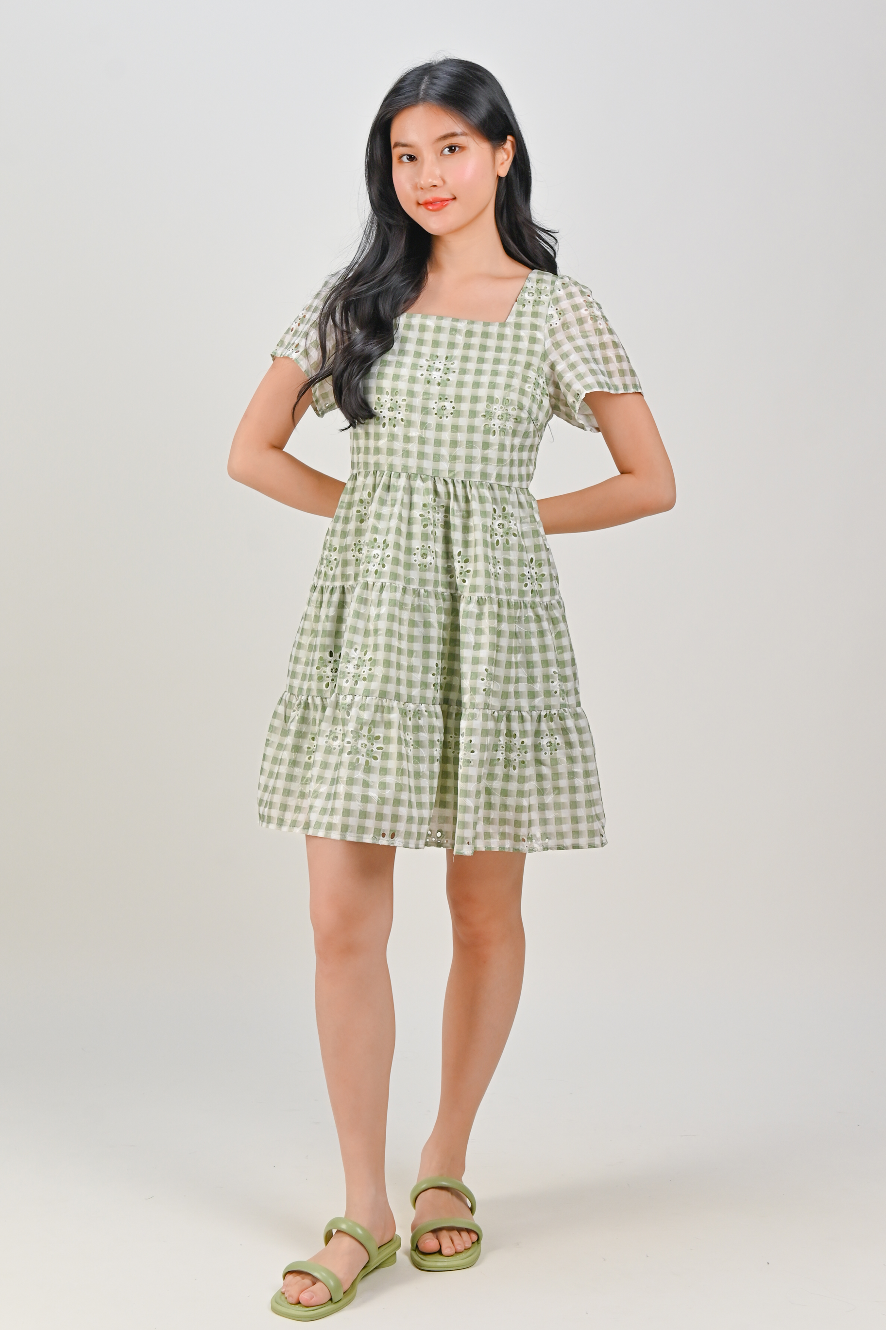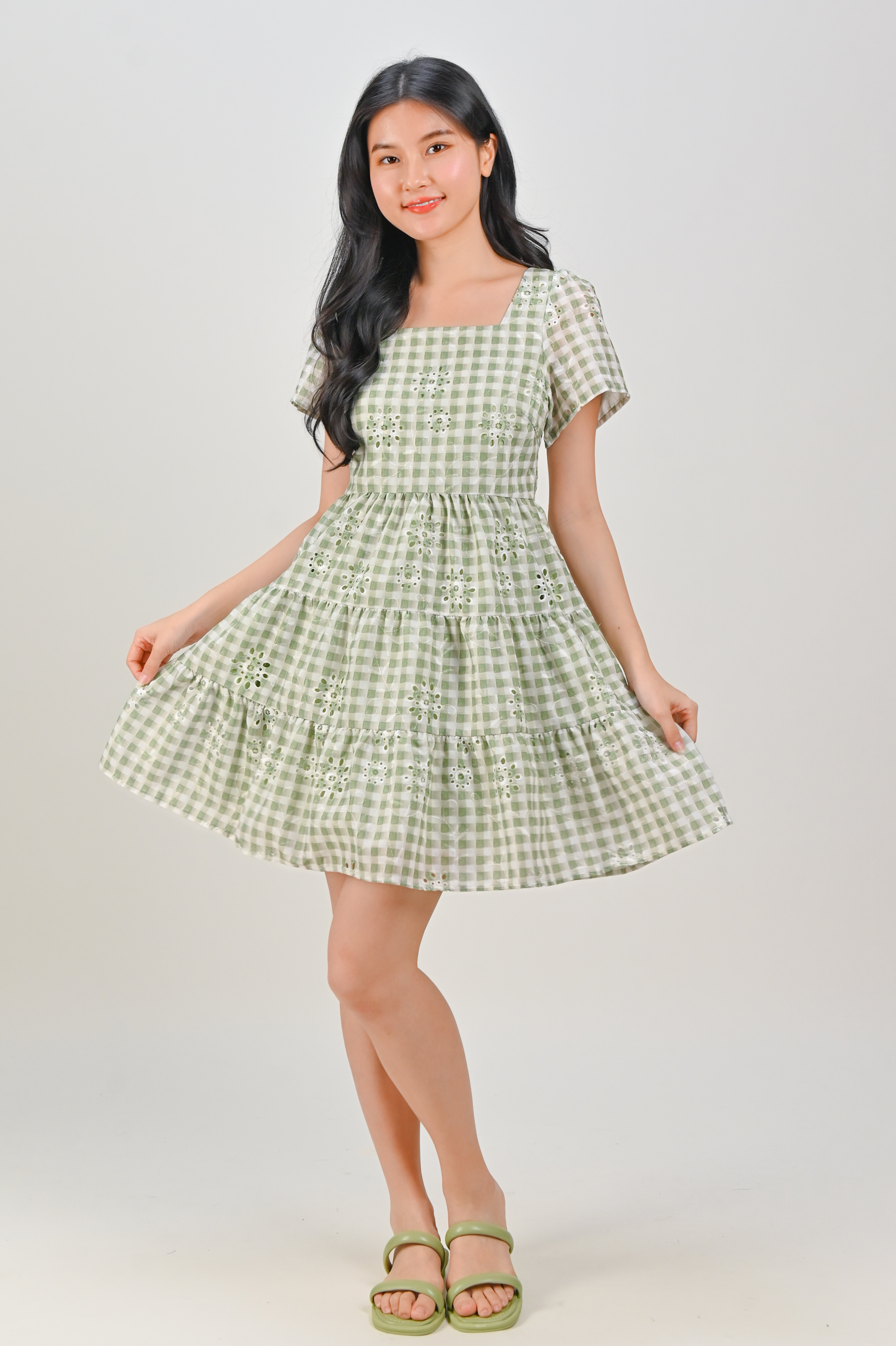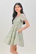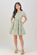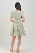 SHIZUKU GINGHAM EYELET BABYDOLL DRESS IN GREEN
