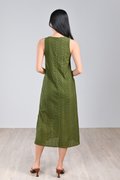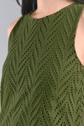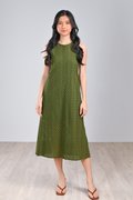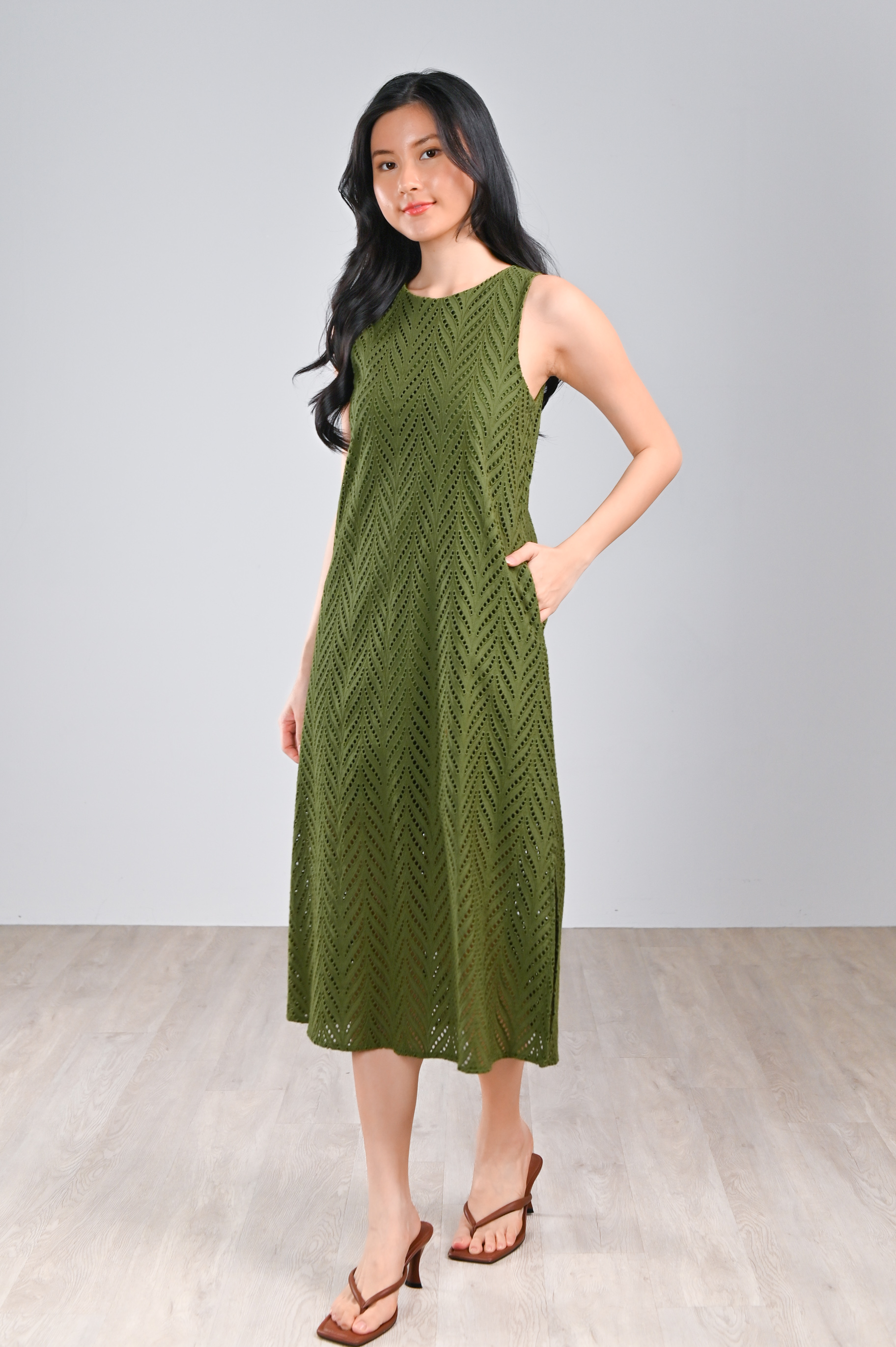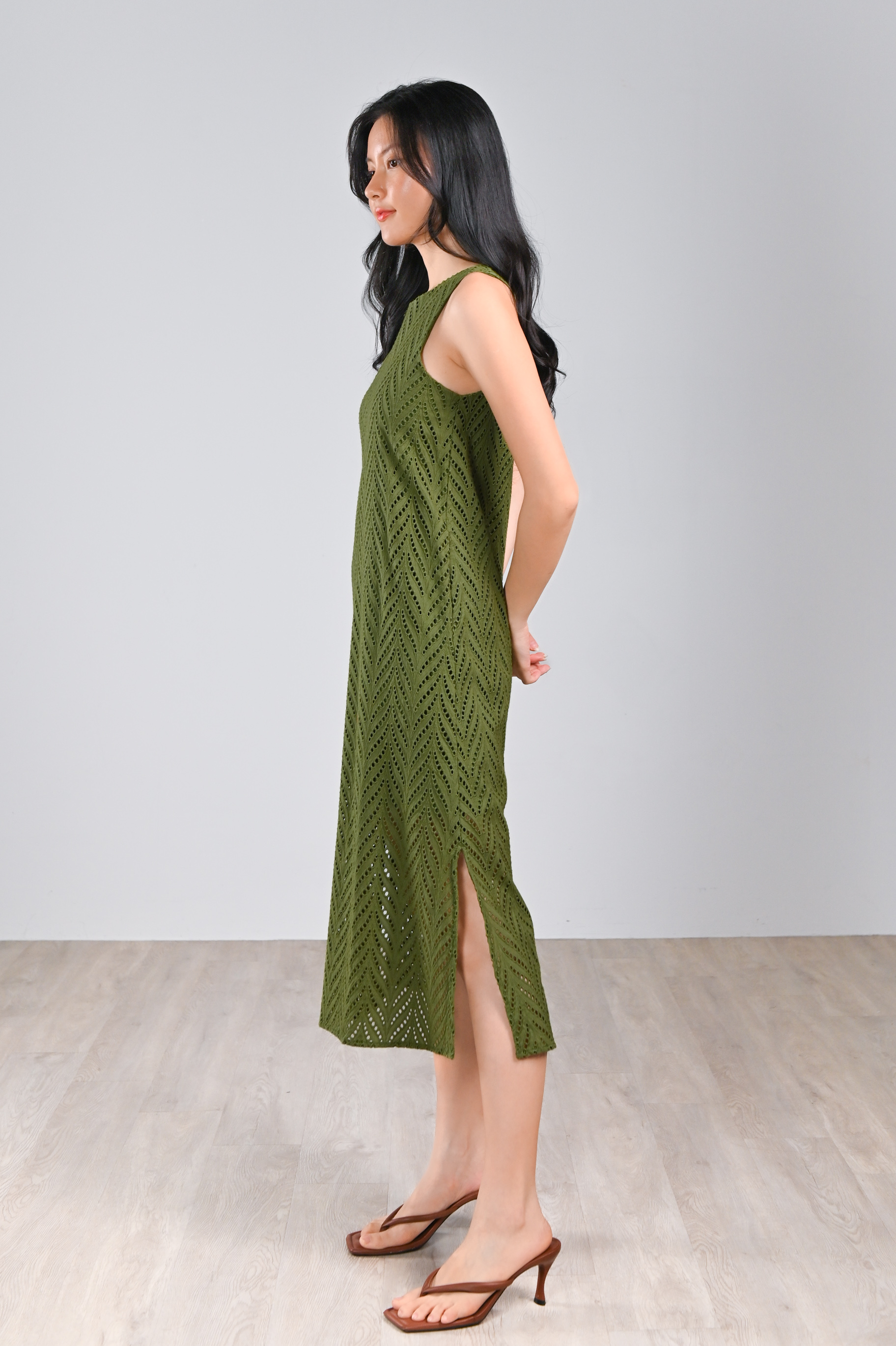 SINING EYELET SIDE-SLIT MIDI DRESS IN OLIVE