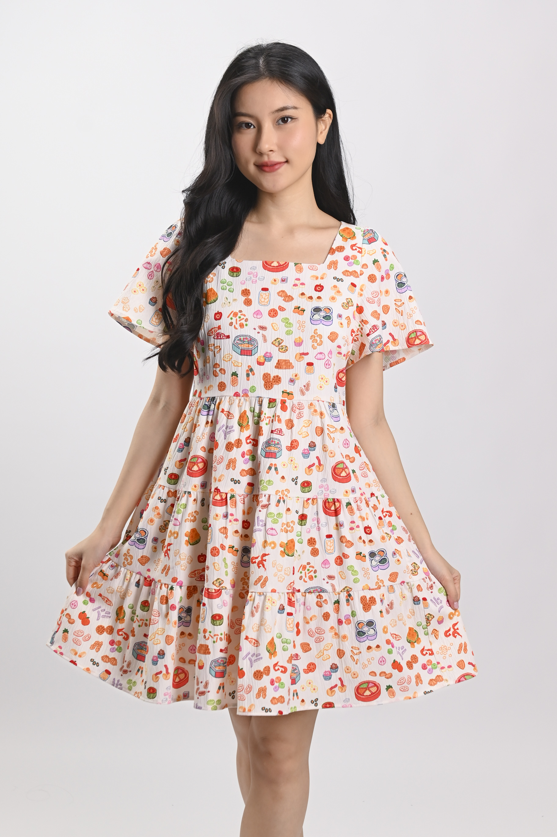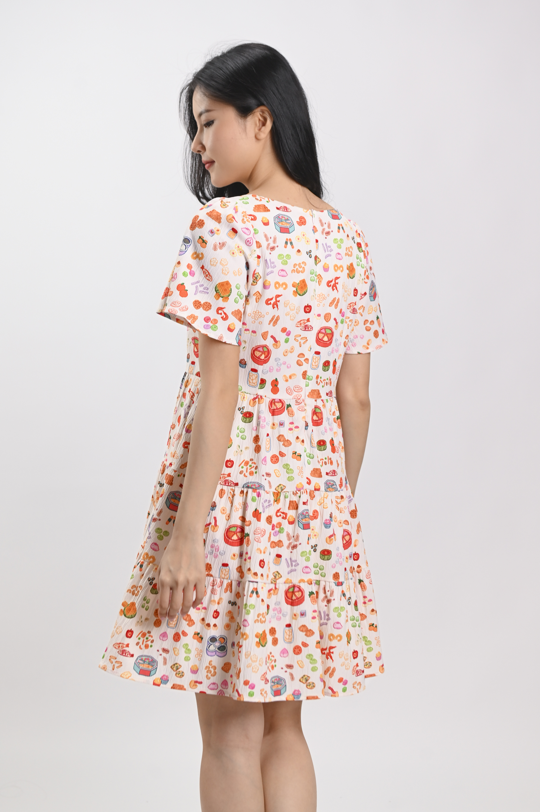 SNACKTACULAR SQUARE-NECK BABYDOLL DRESS