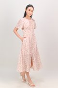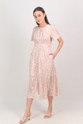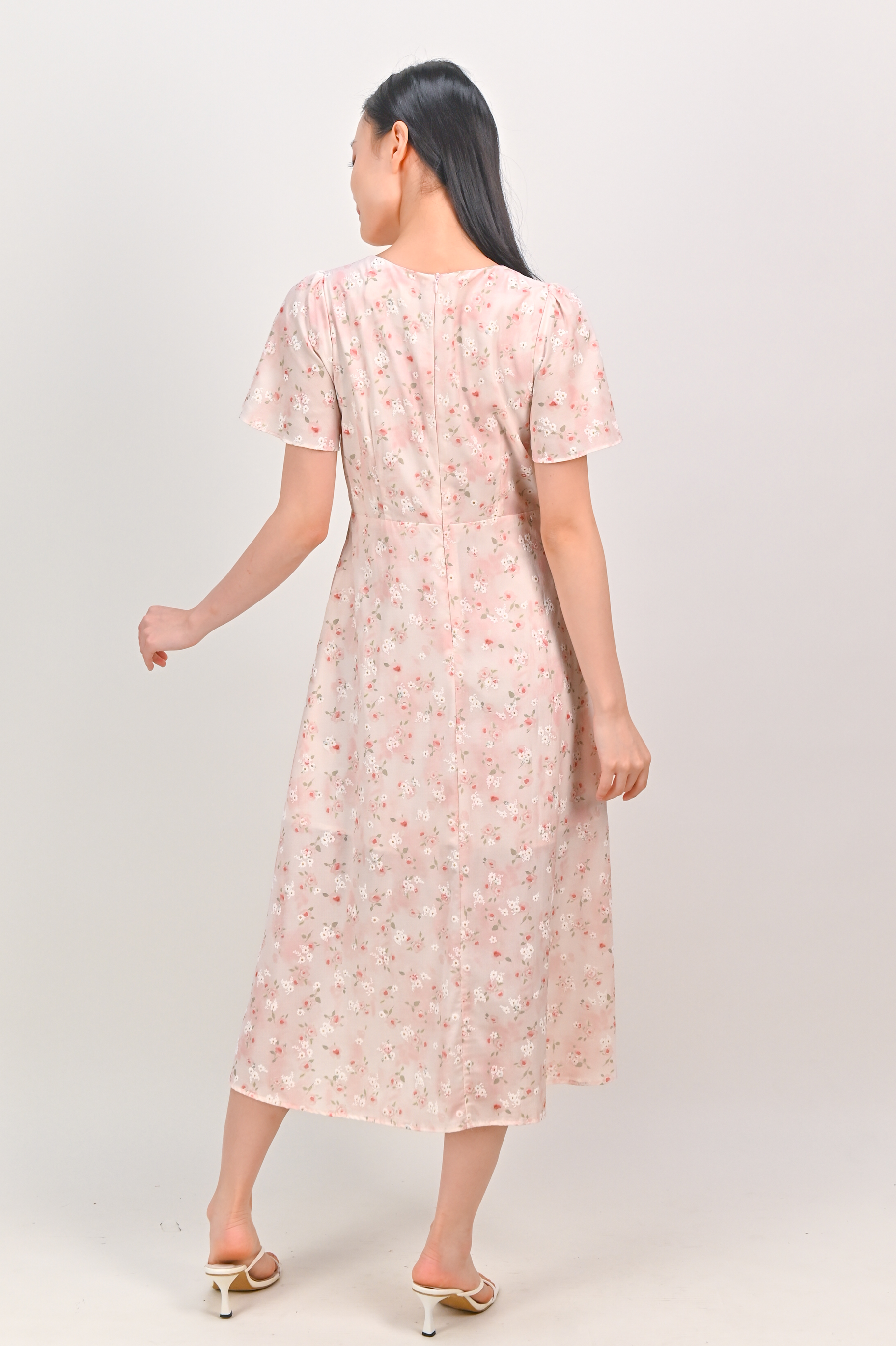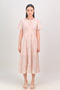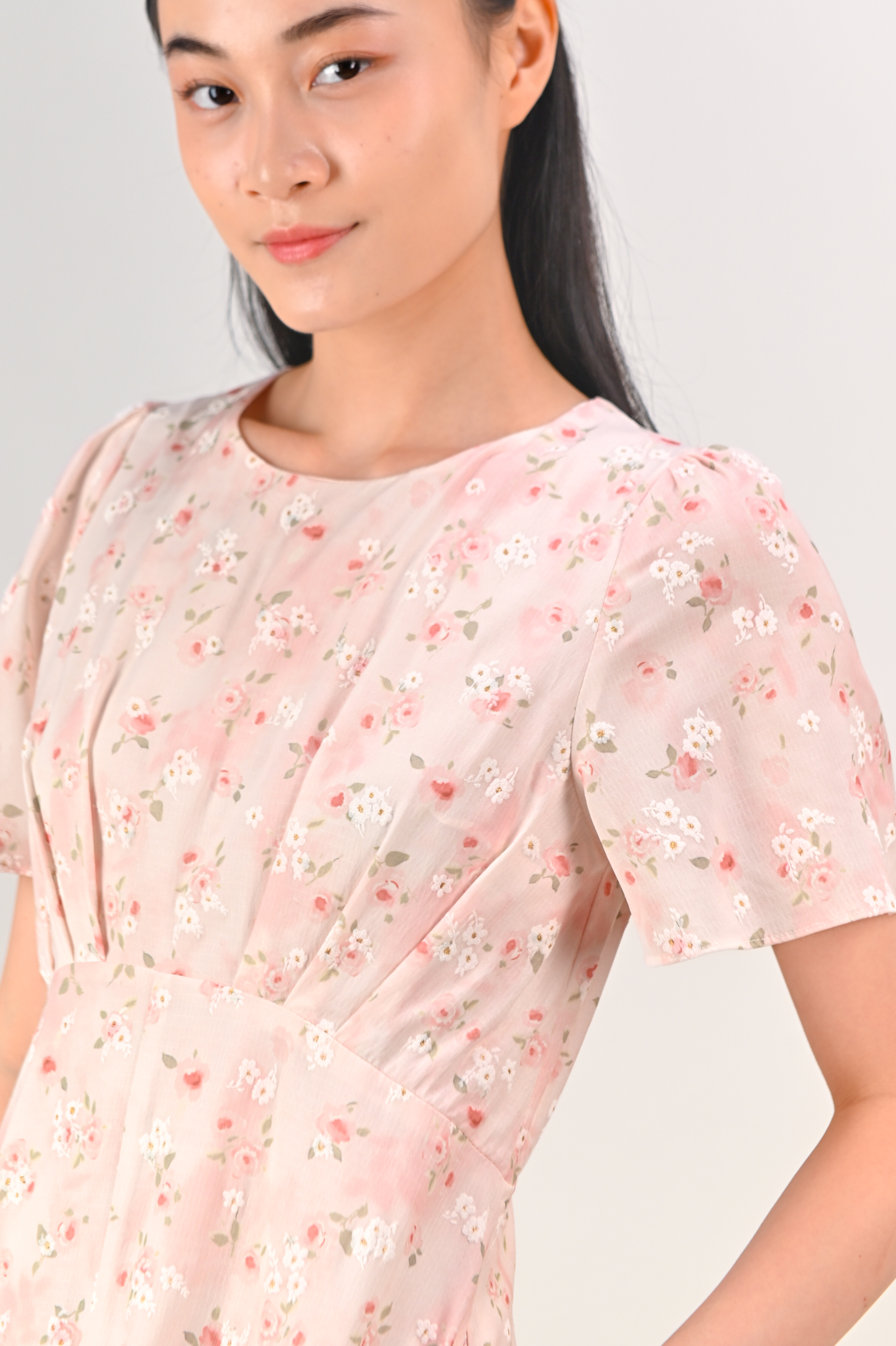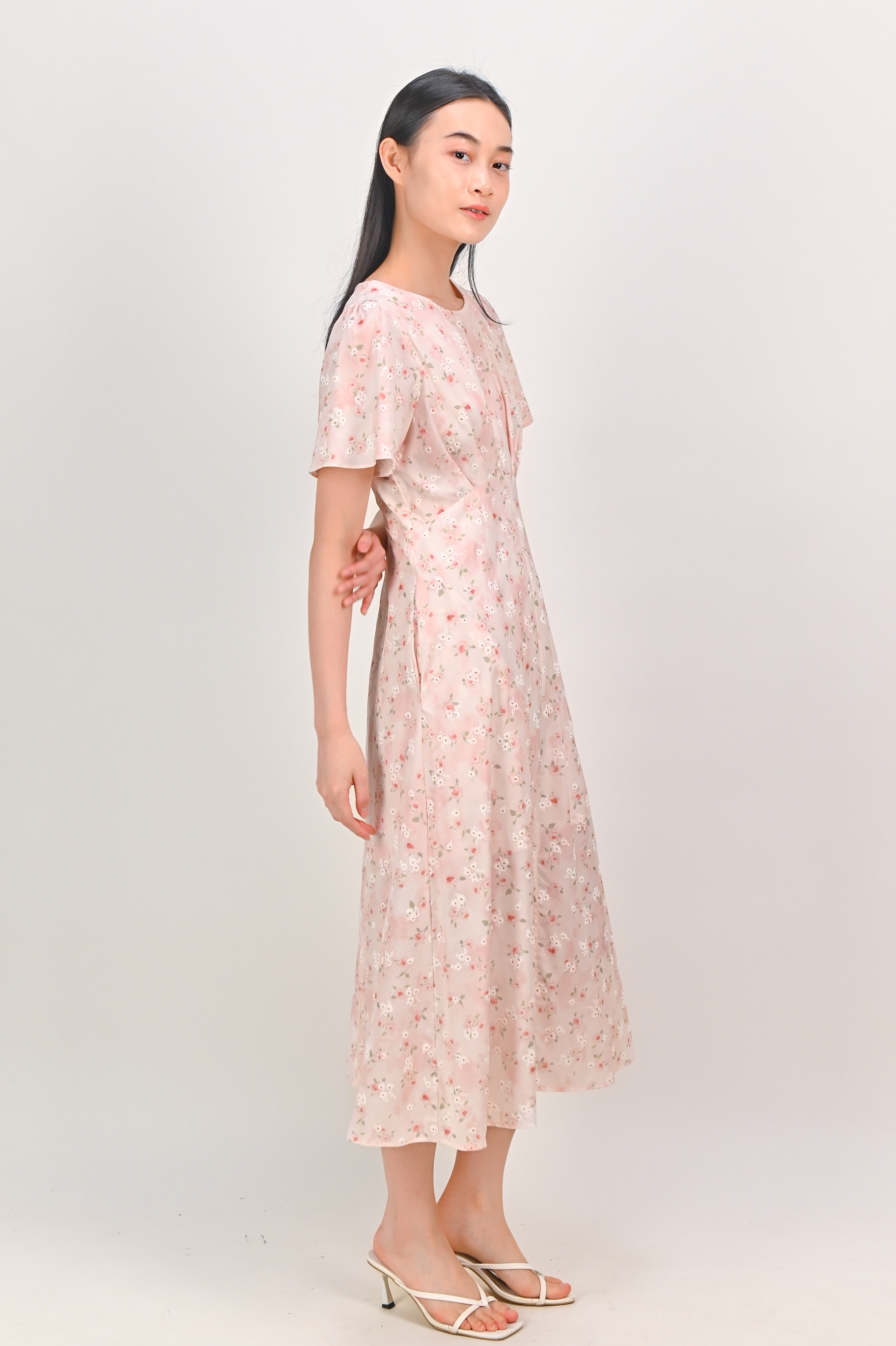 SOLENE PINK FLORAL SLEEVED PLEAT DRESS