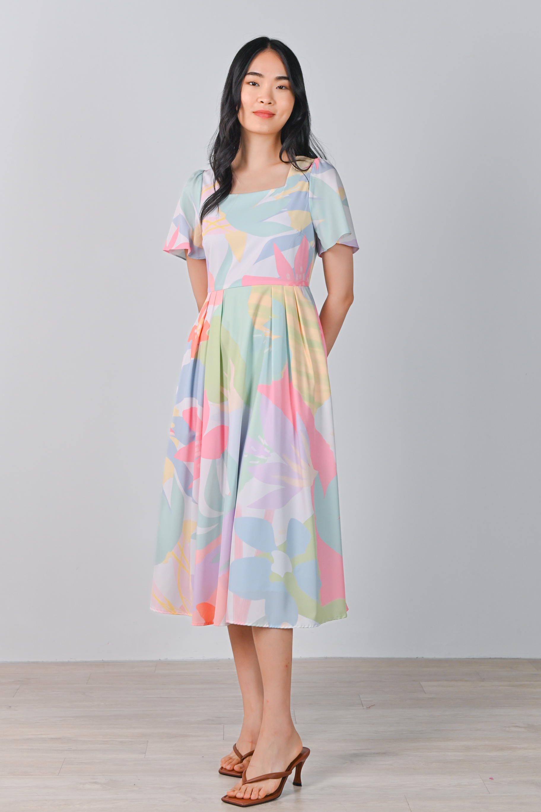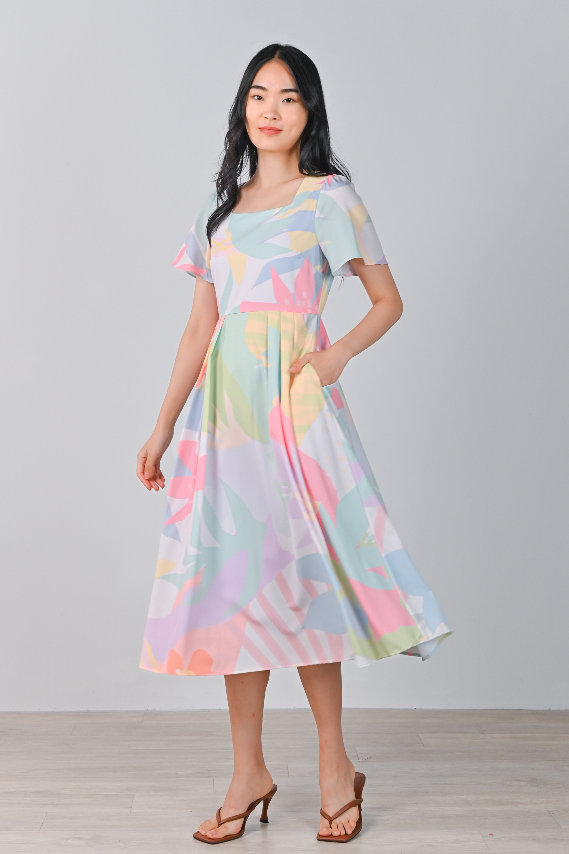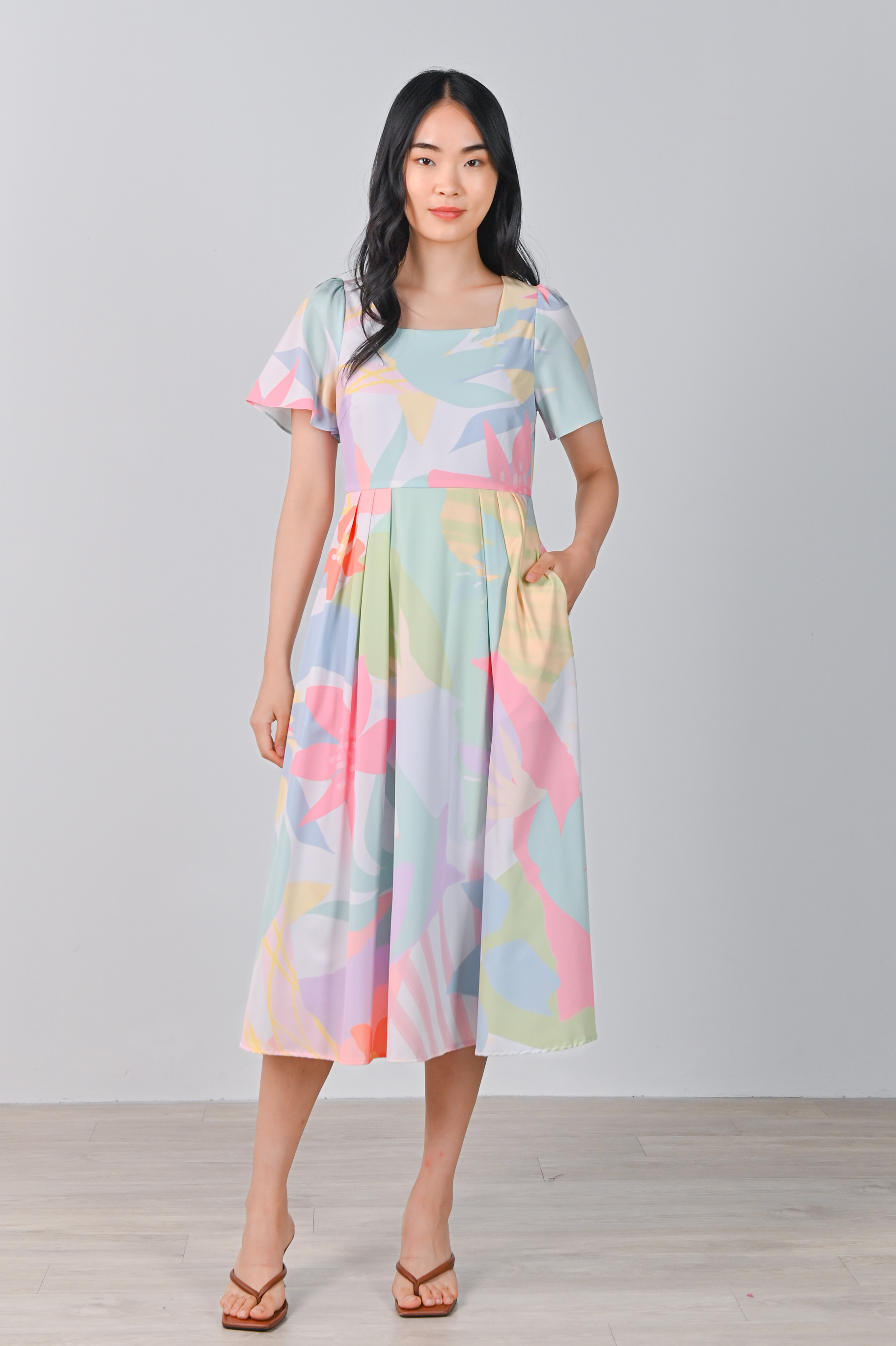 SPRING FLING SLEEVED SQUARE-NECK DRESS