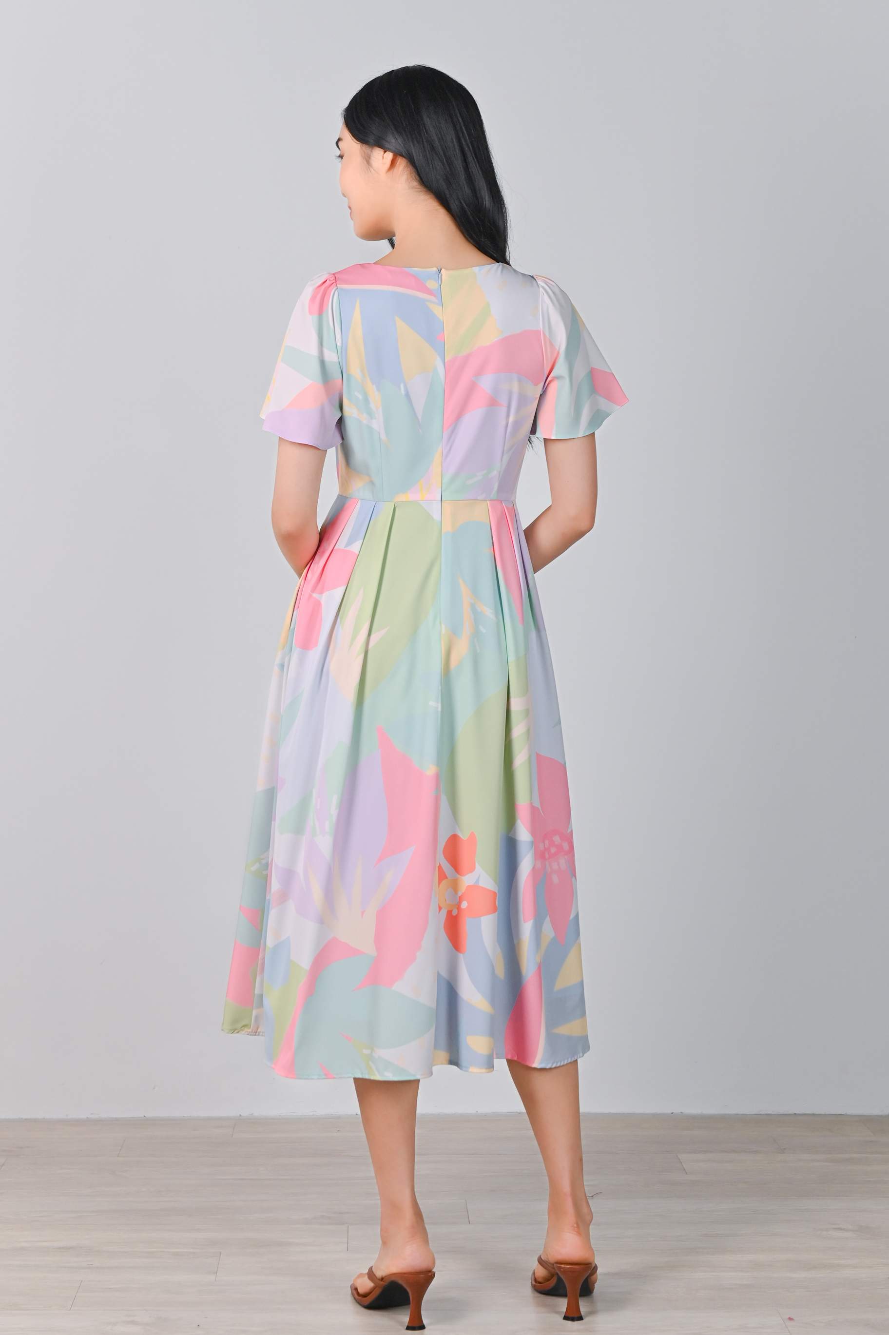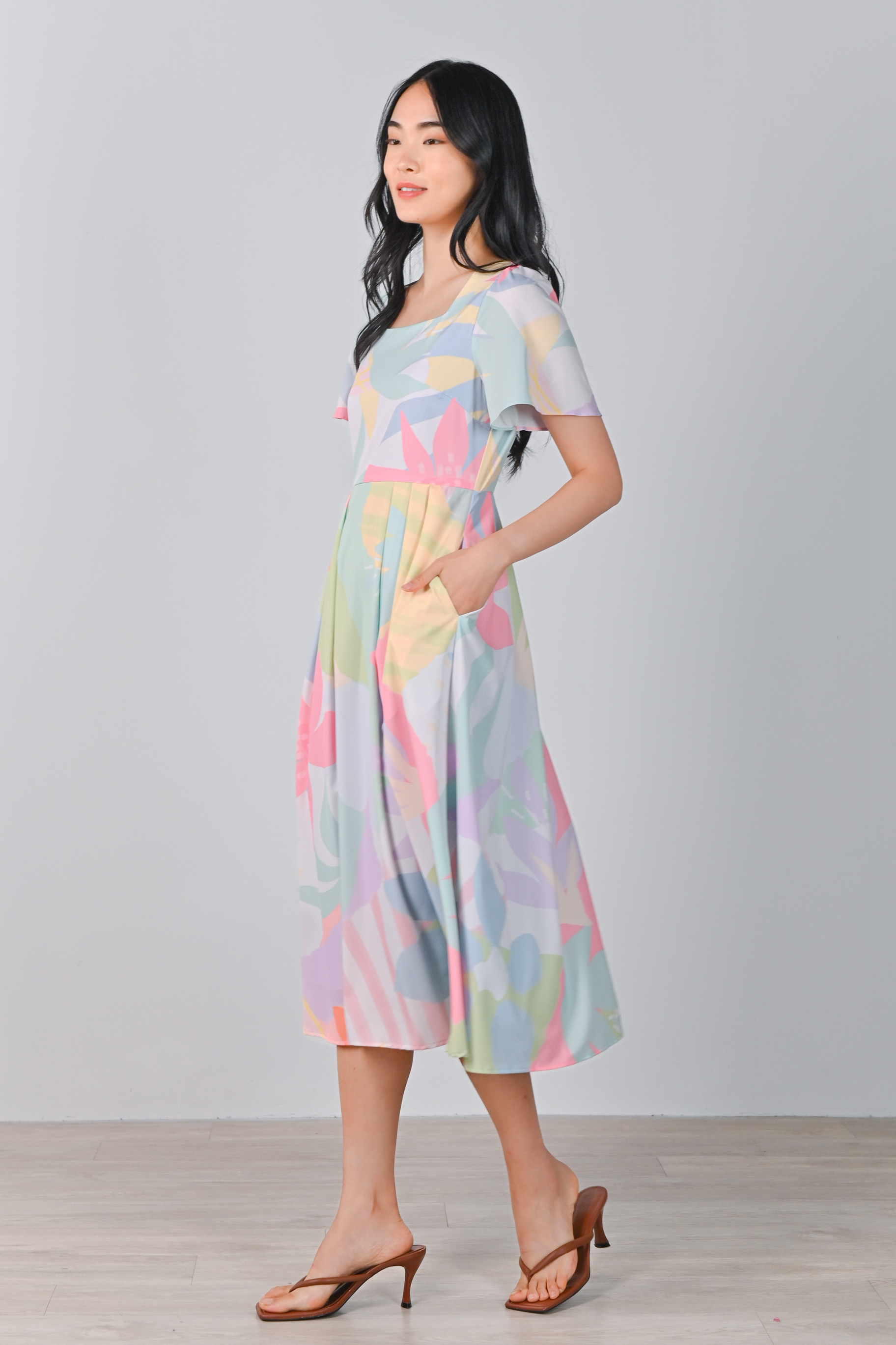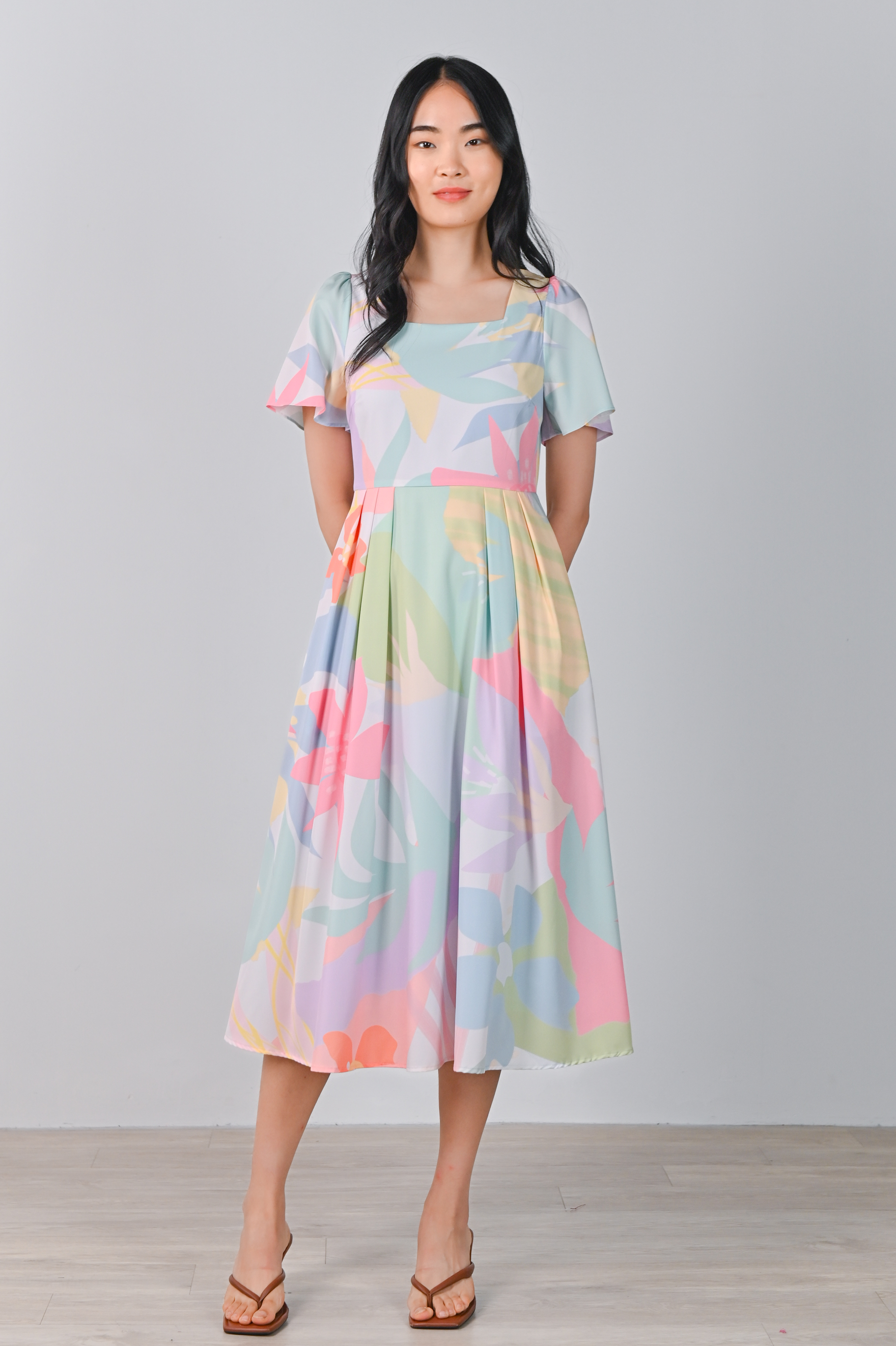 SPRING FLING SLEEVED SQUARE-NECK DRESS