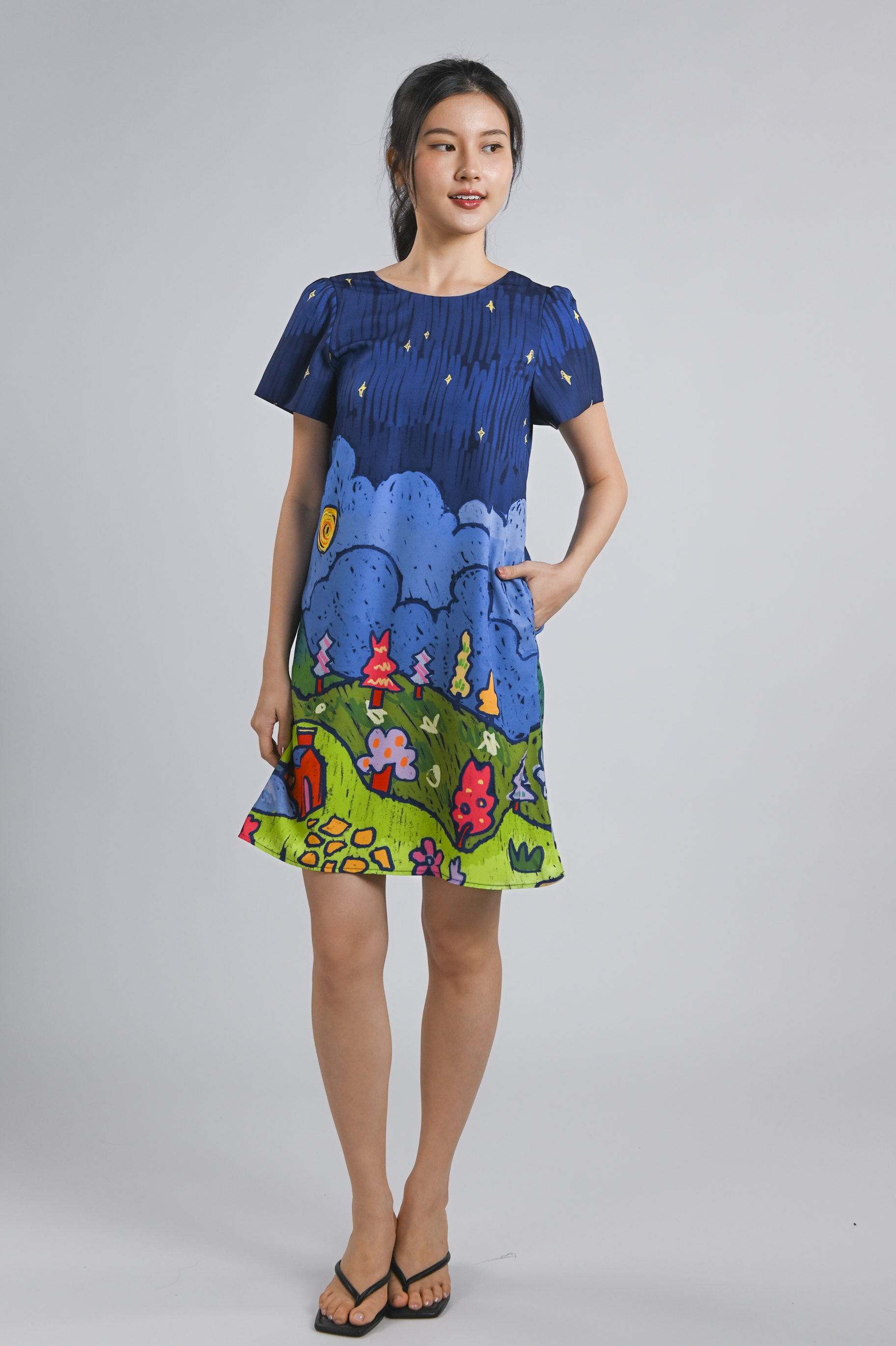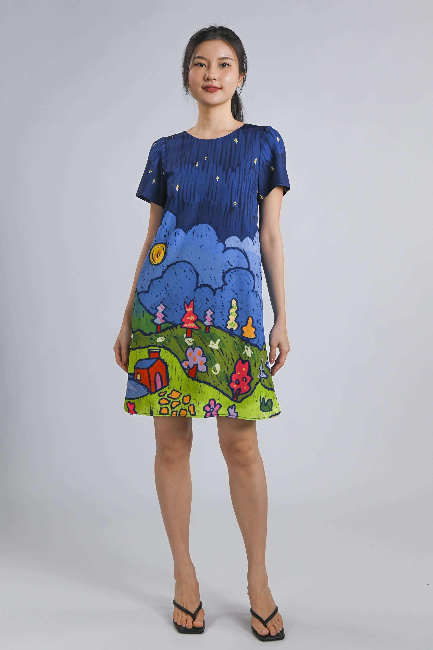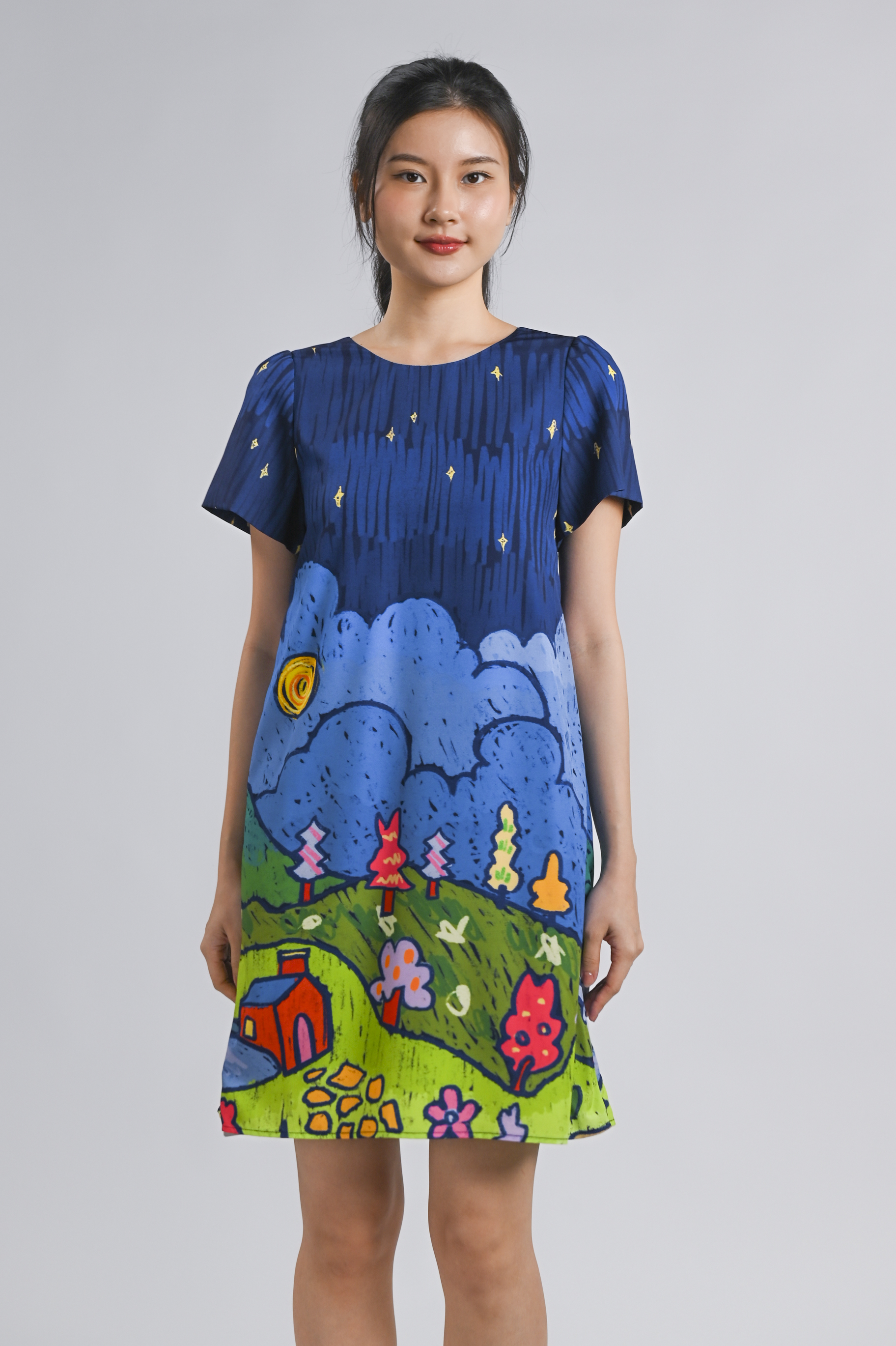 STARRY NIGHT SLEEVED SHIFT DRESS
