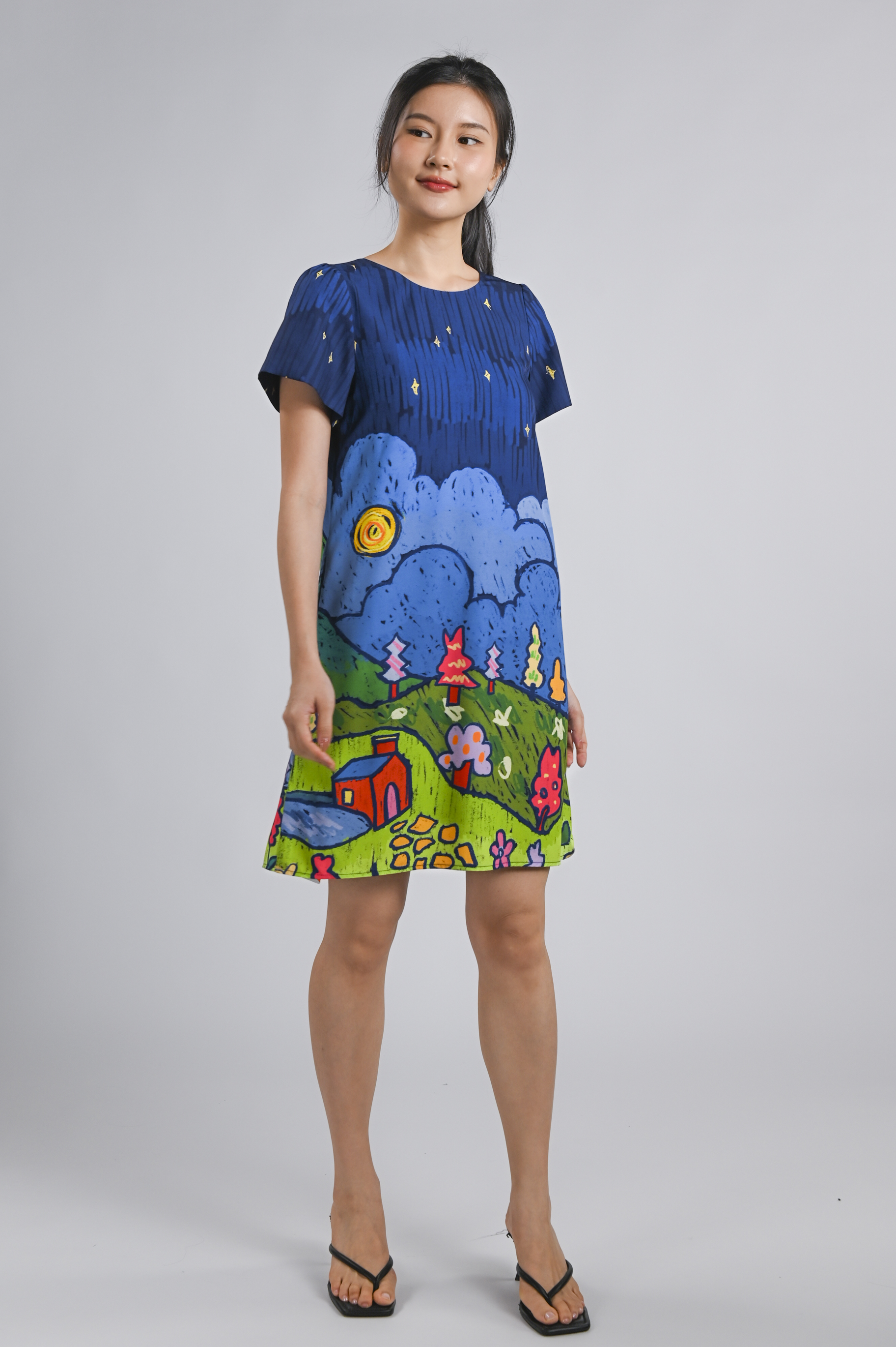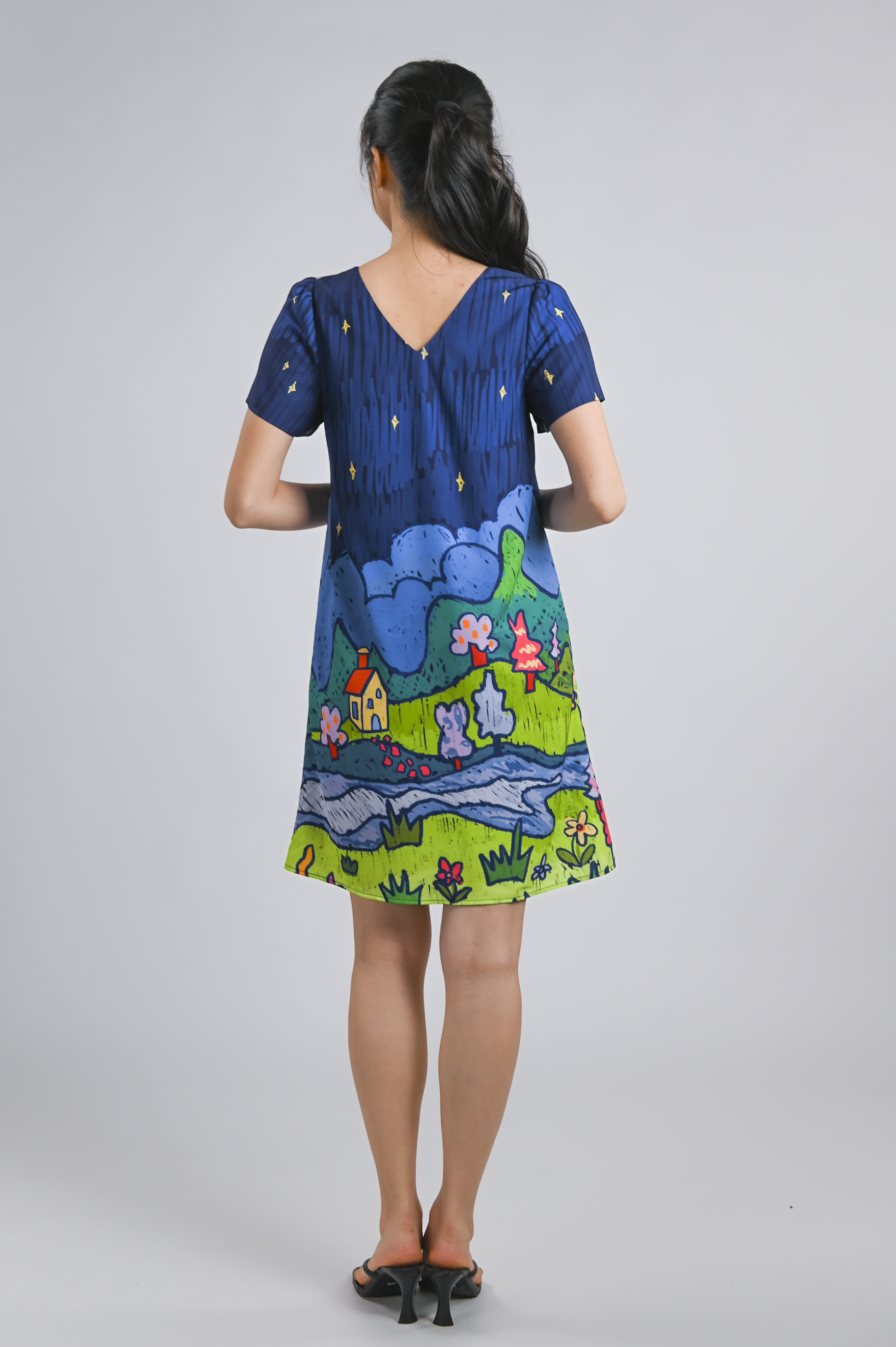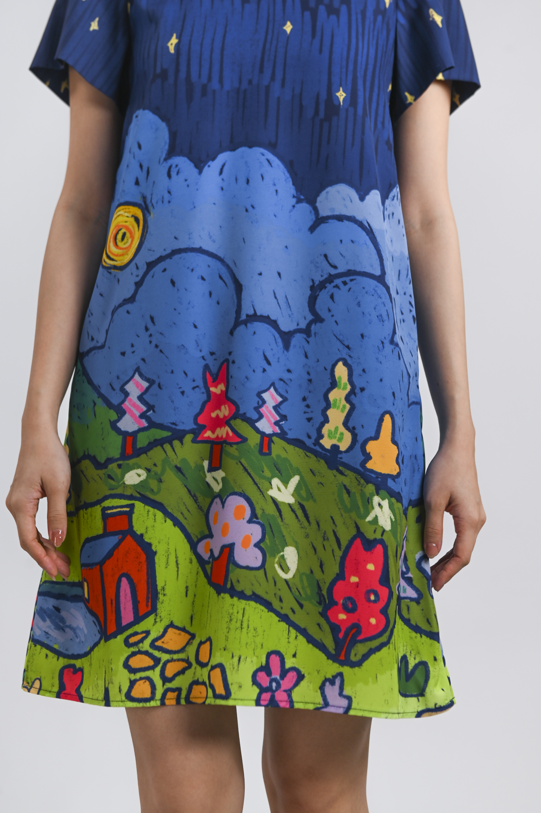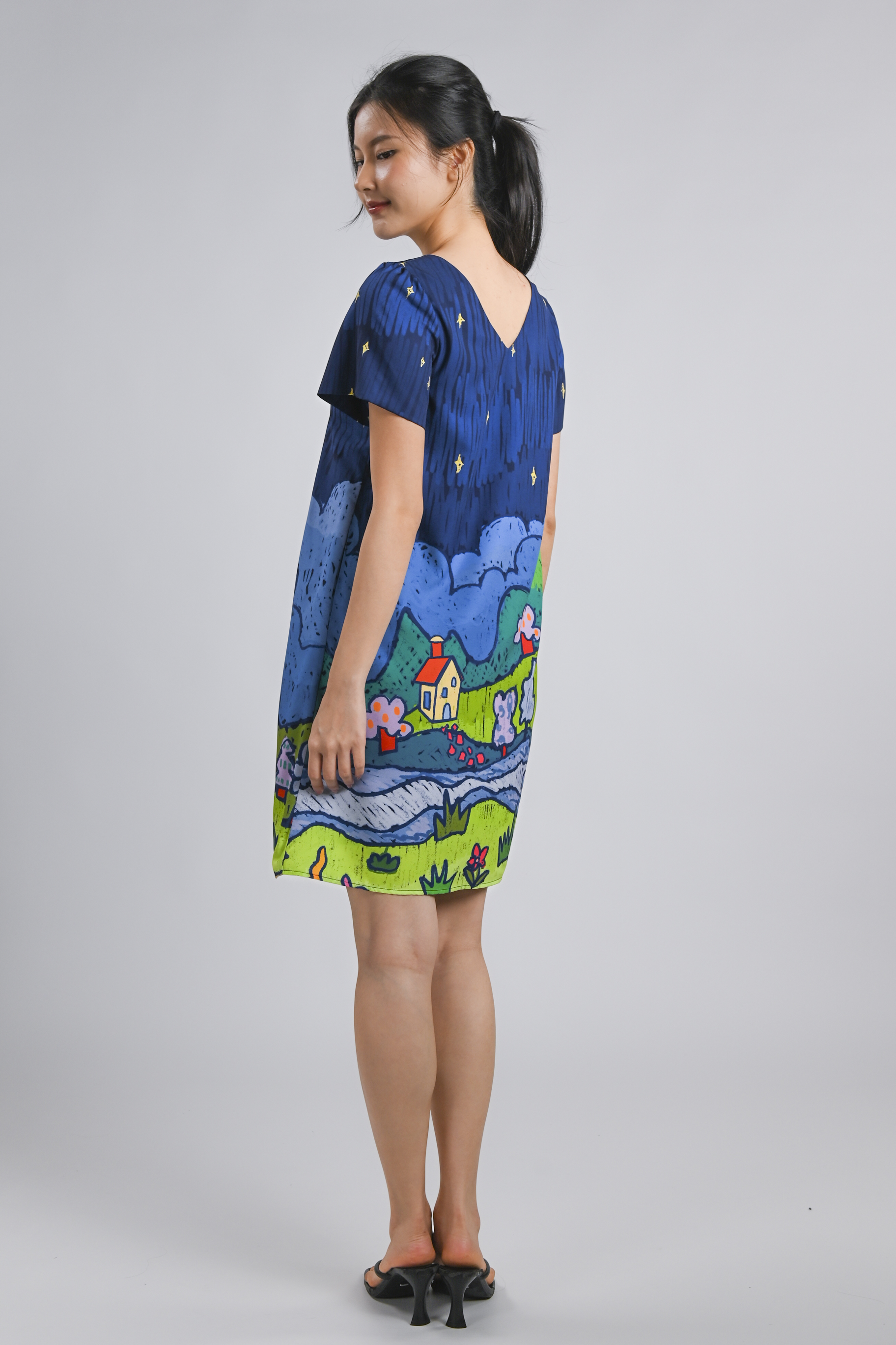 STARRY NIGHT SLEEVED SHIFT DRESS