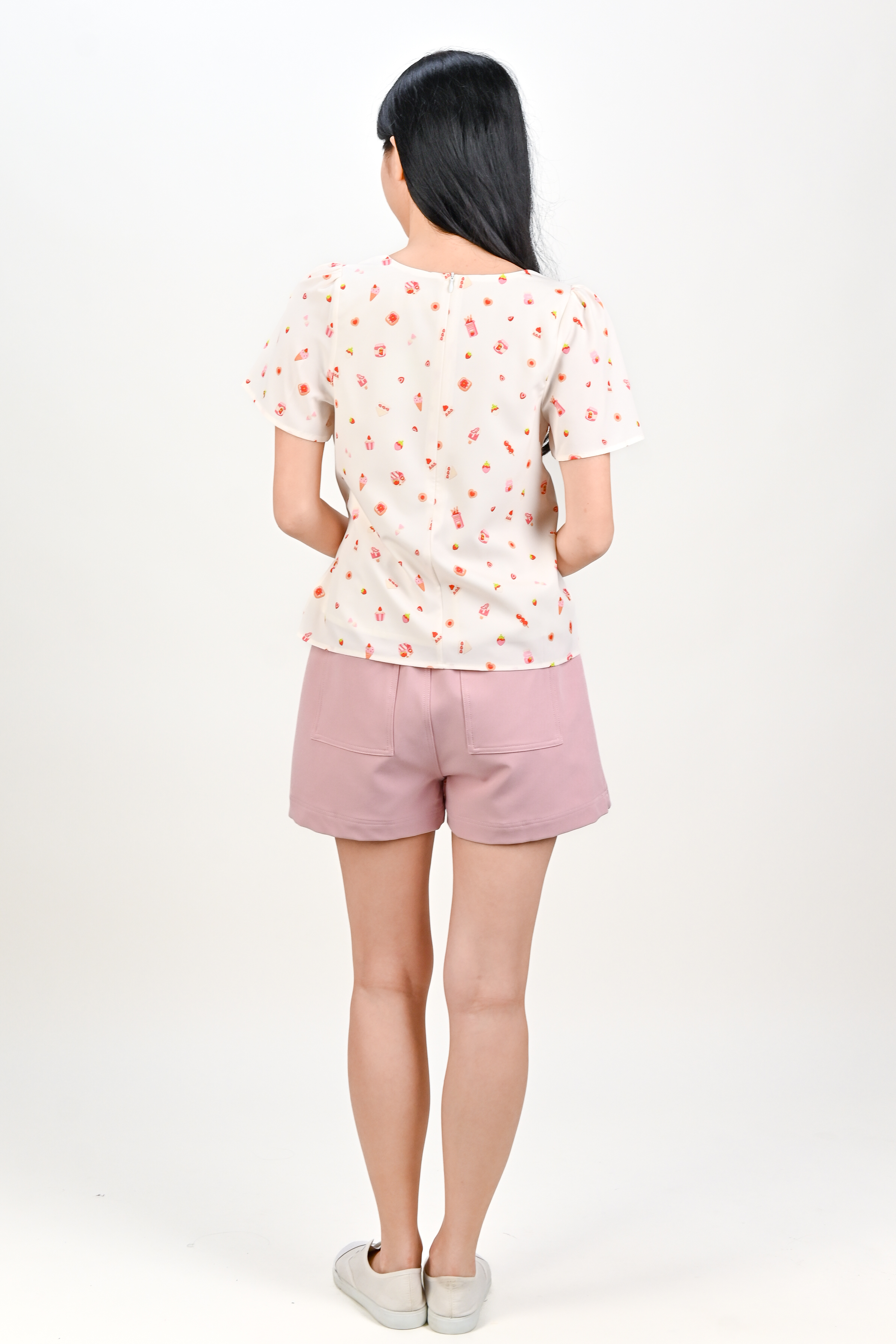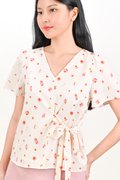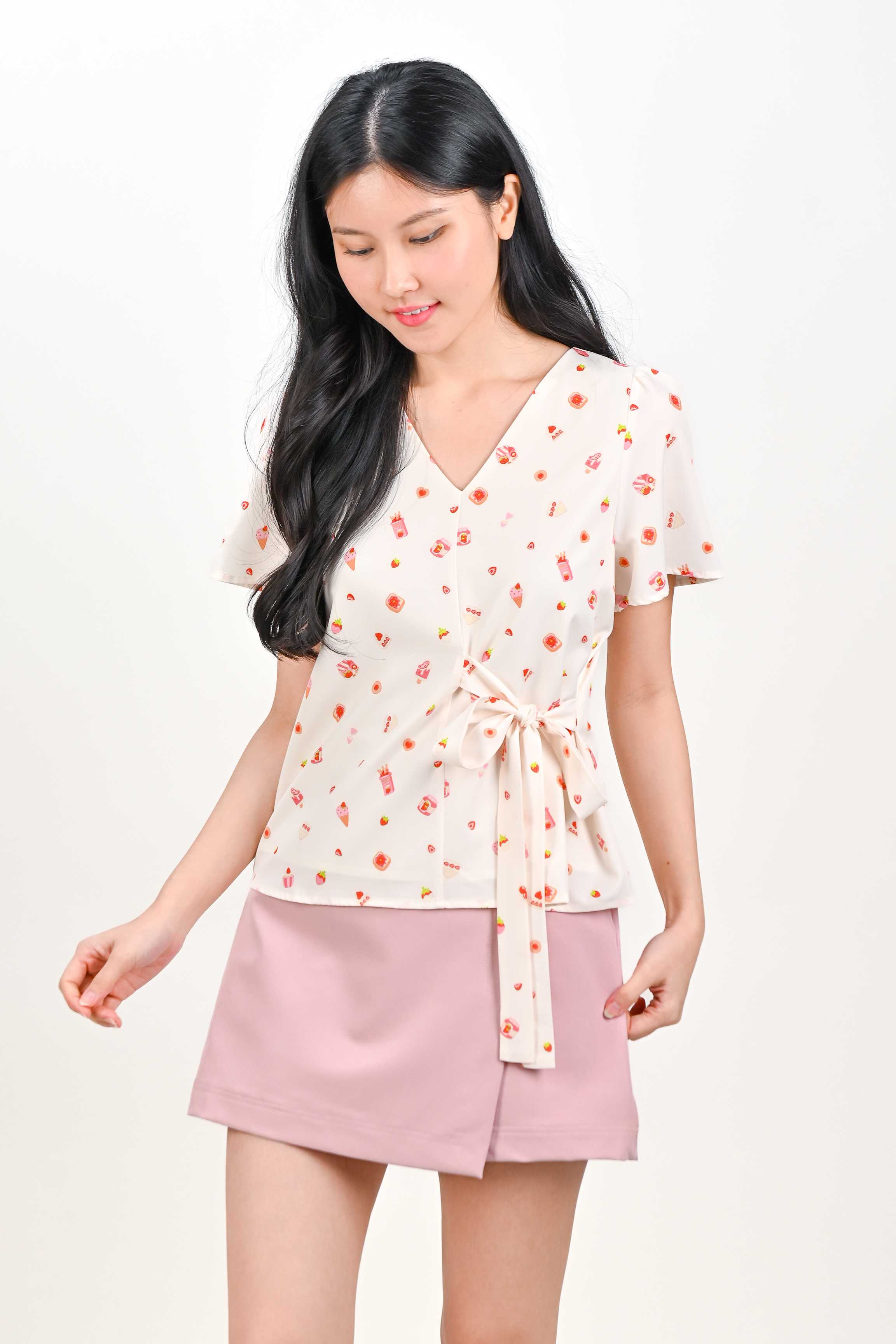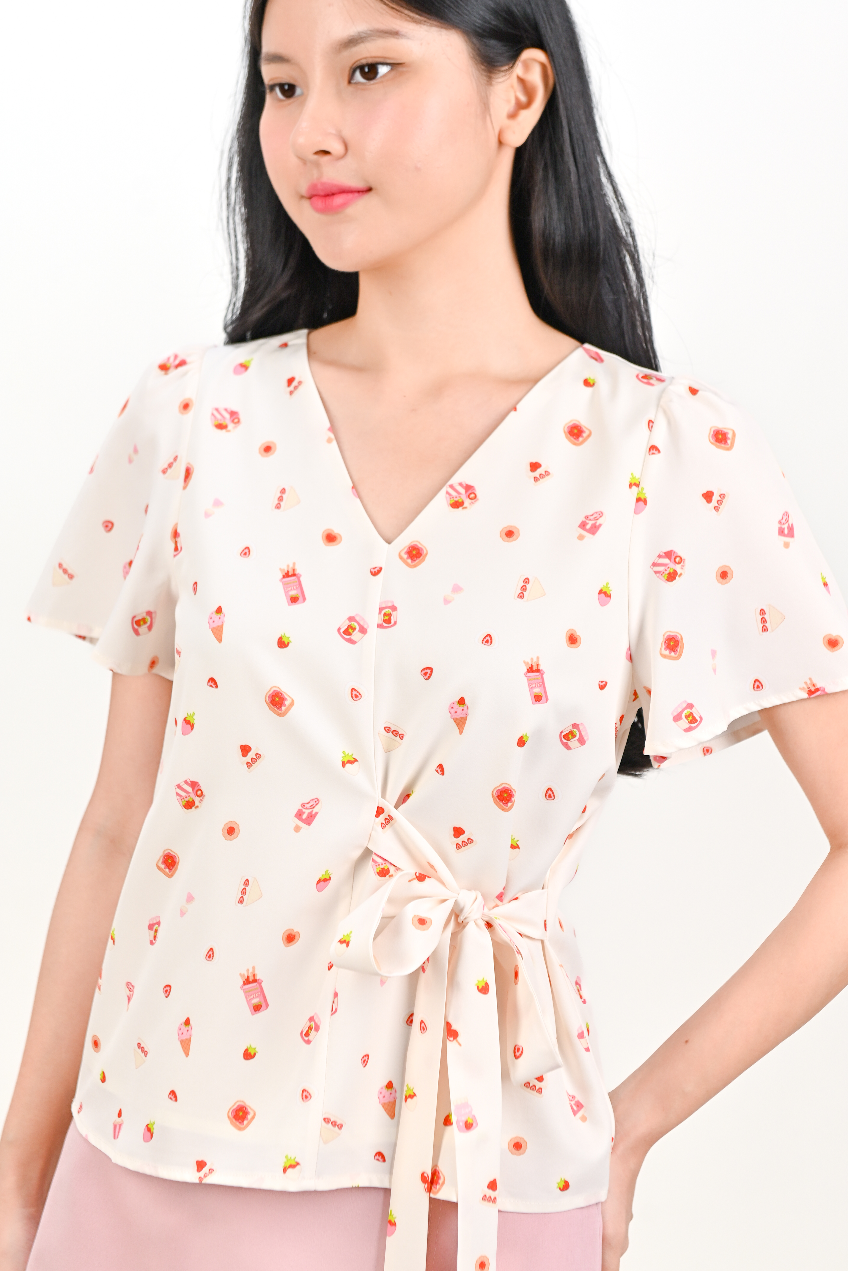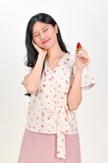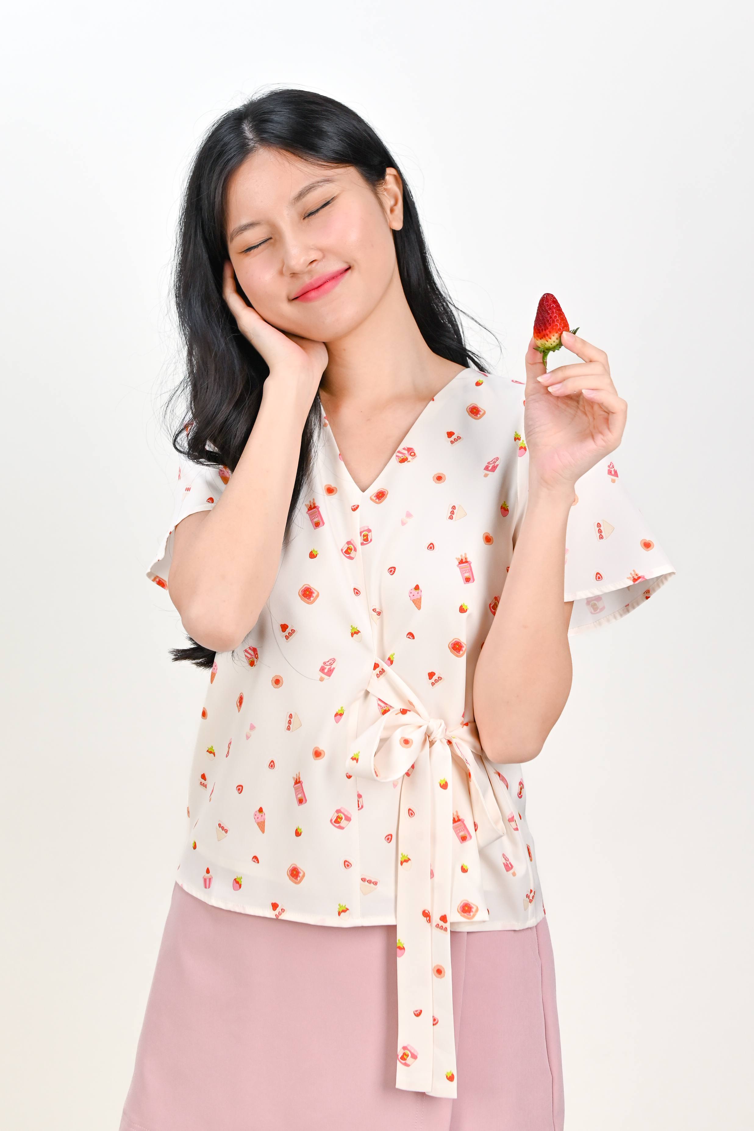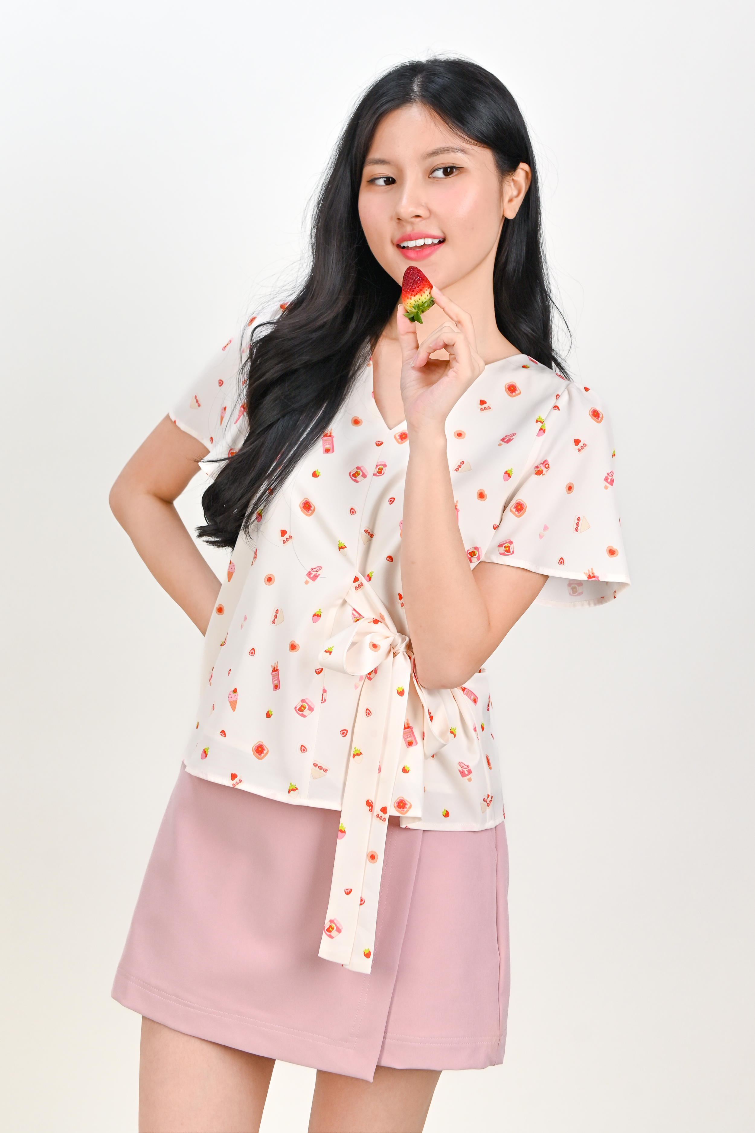 STRAWBERRY DREAM SLEEVED TIE-SASH TOP