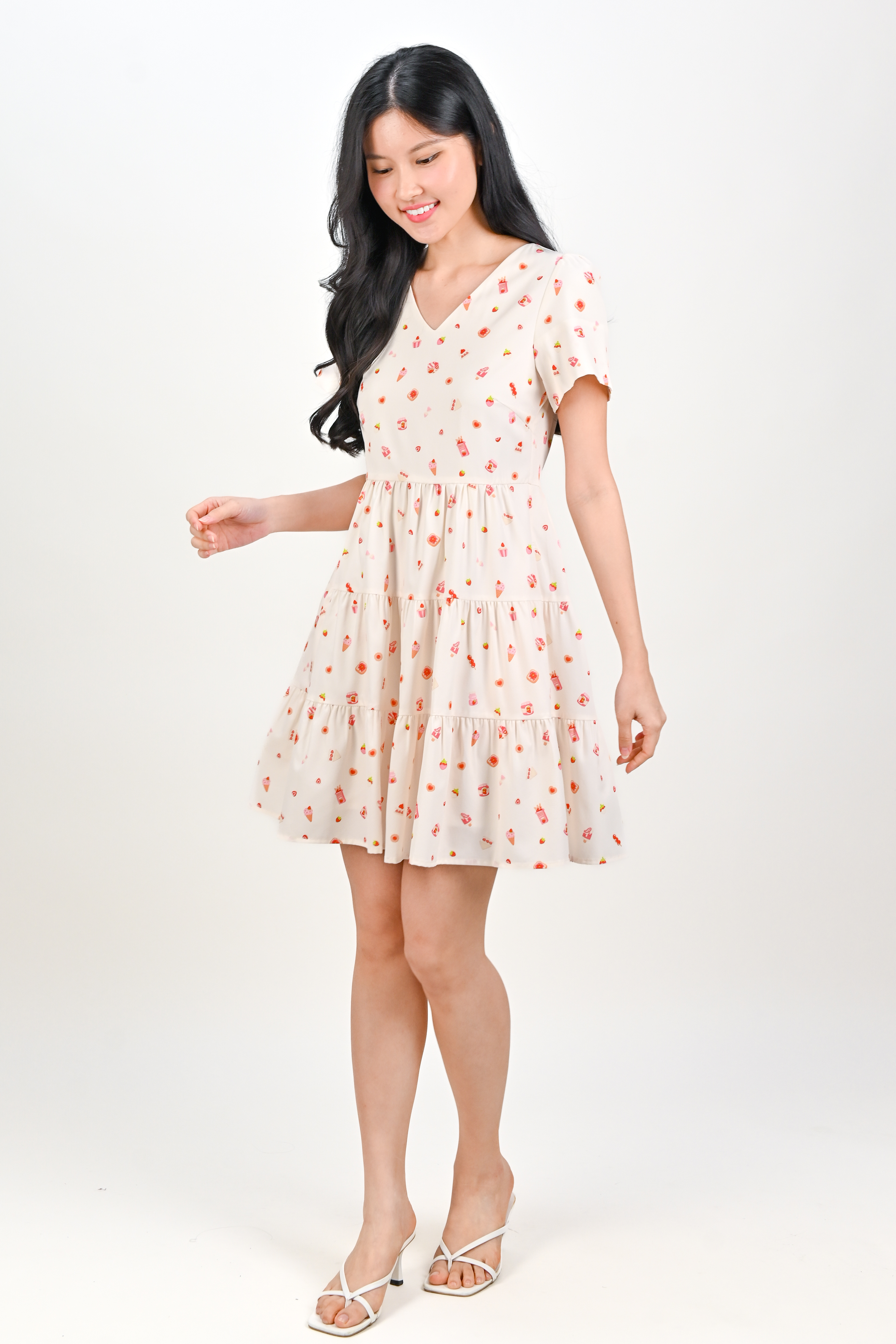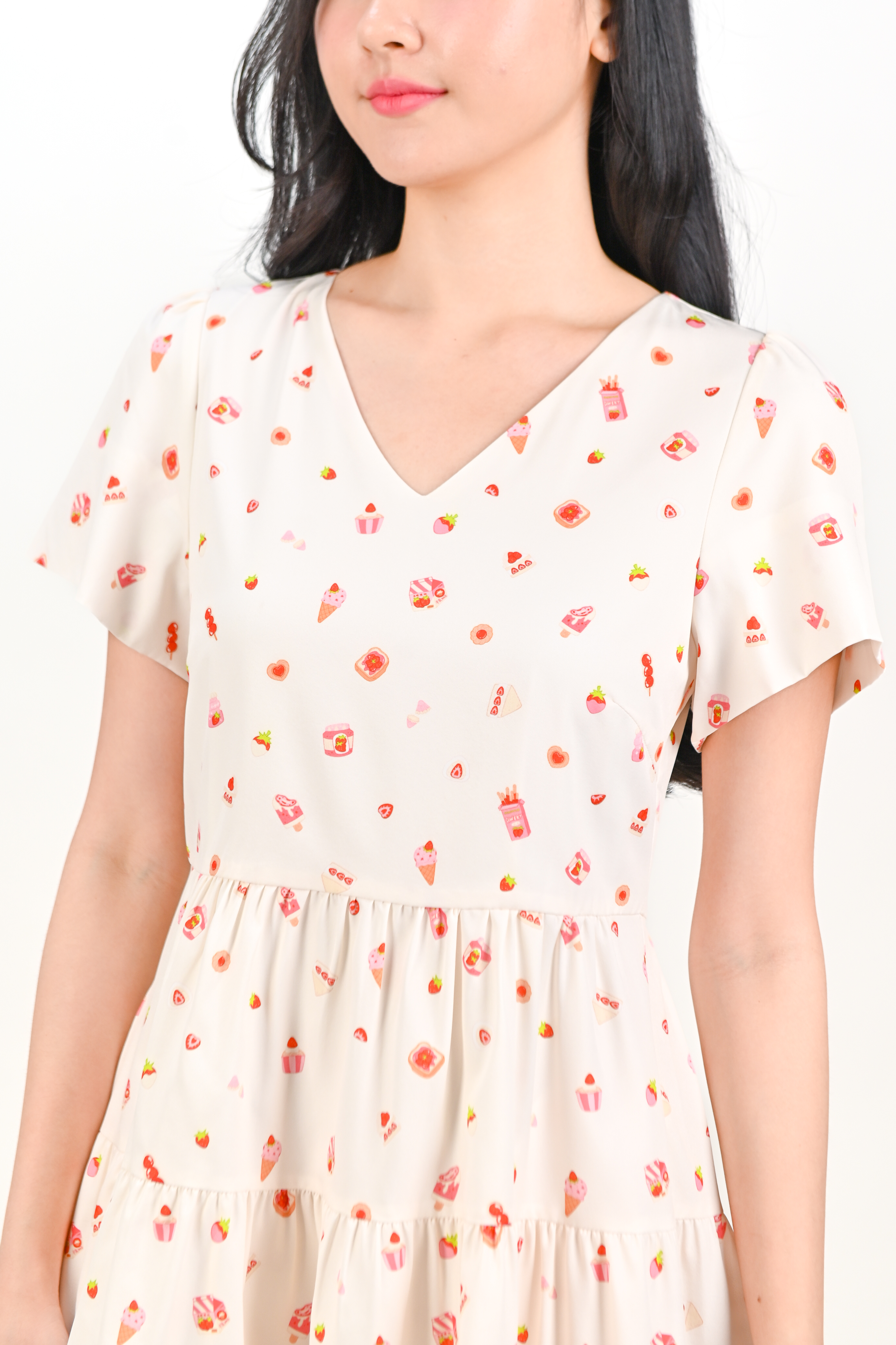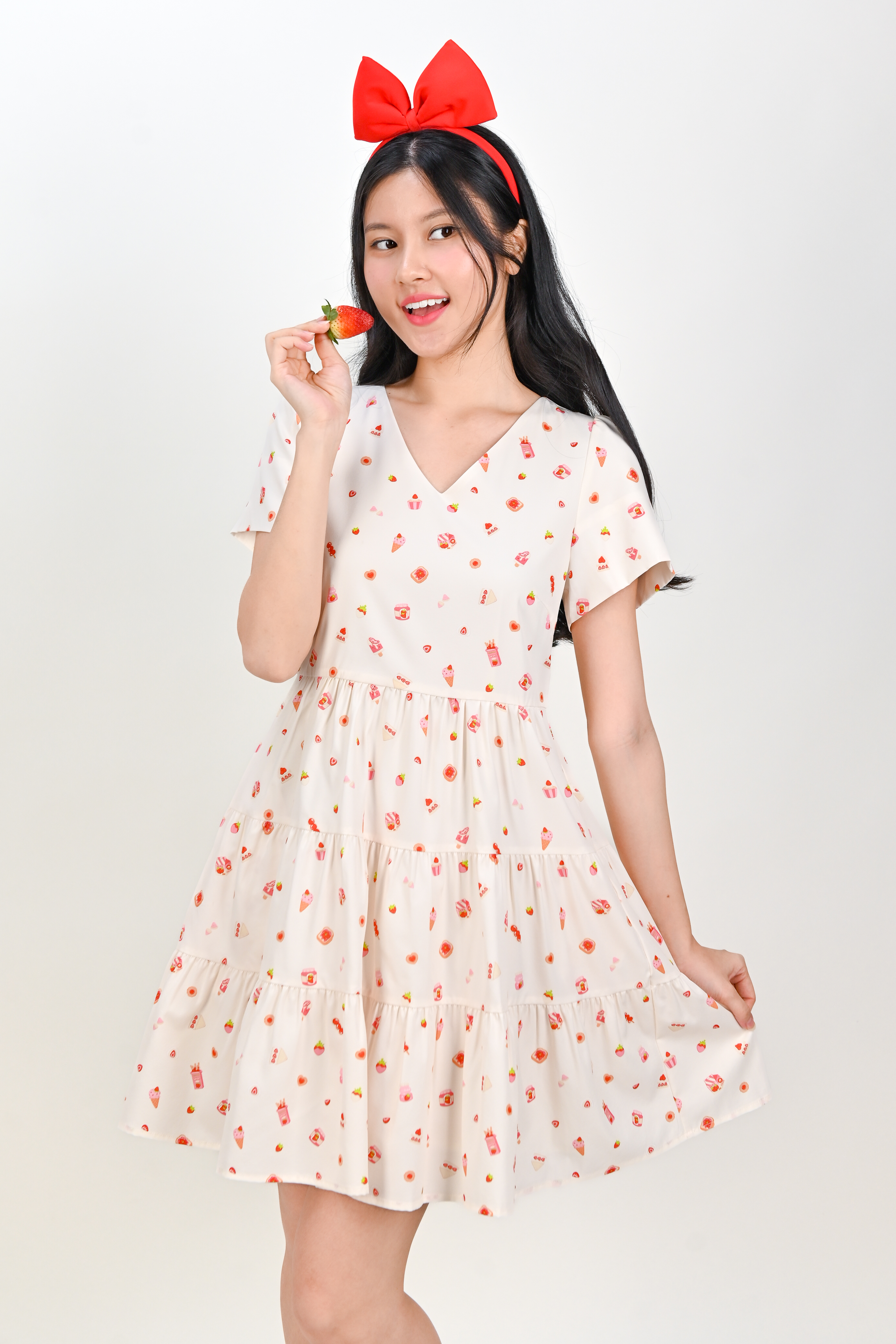 STRAWBERRY DREAM V-NECK BABYDOLL DRESS