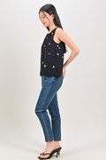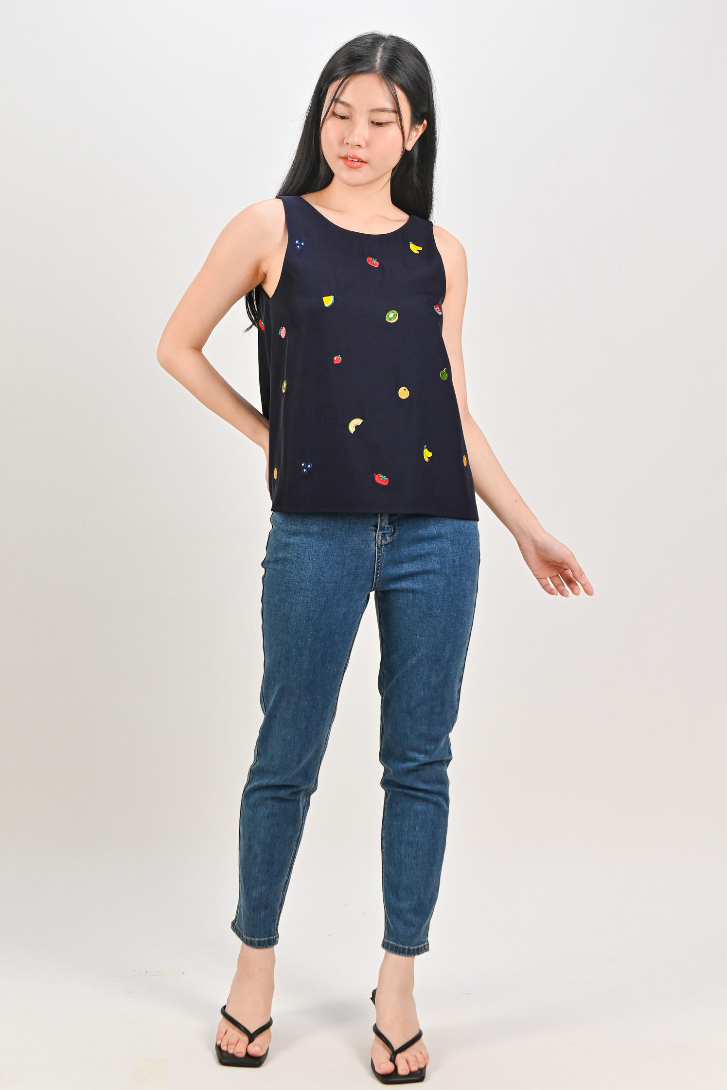 SUMMER HARVEST EMB. TWO-WAY TOP IN NAVY