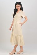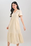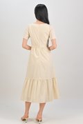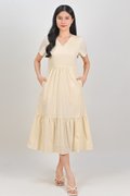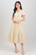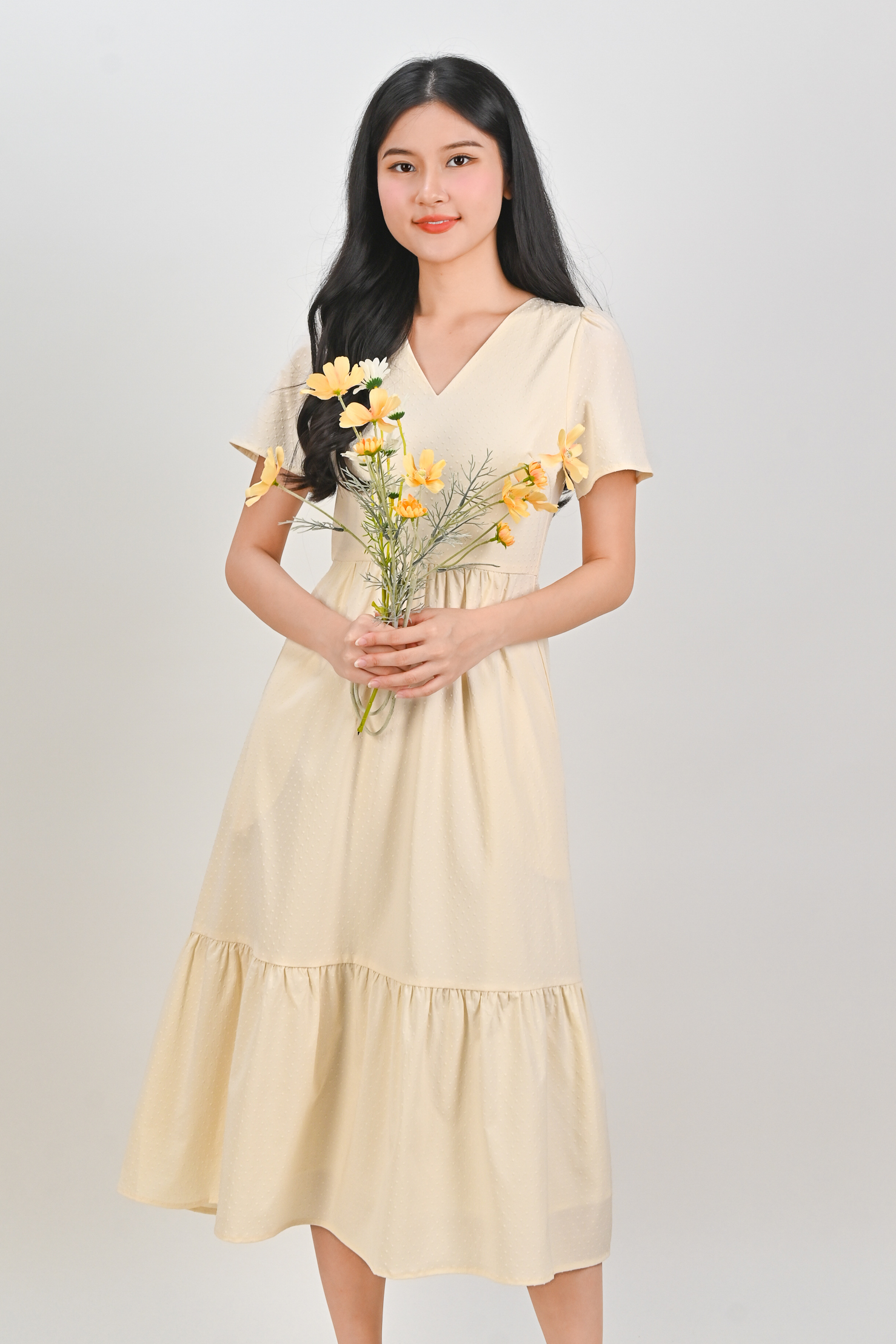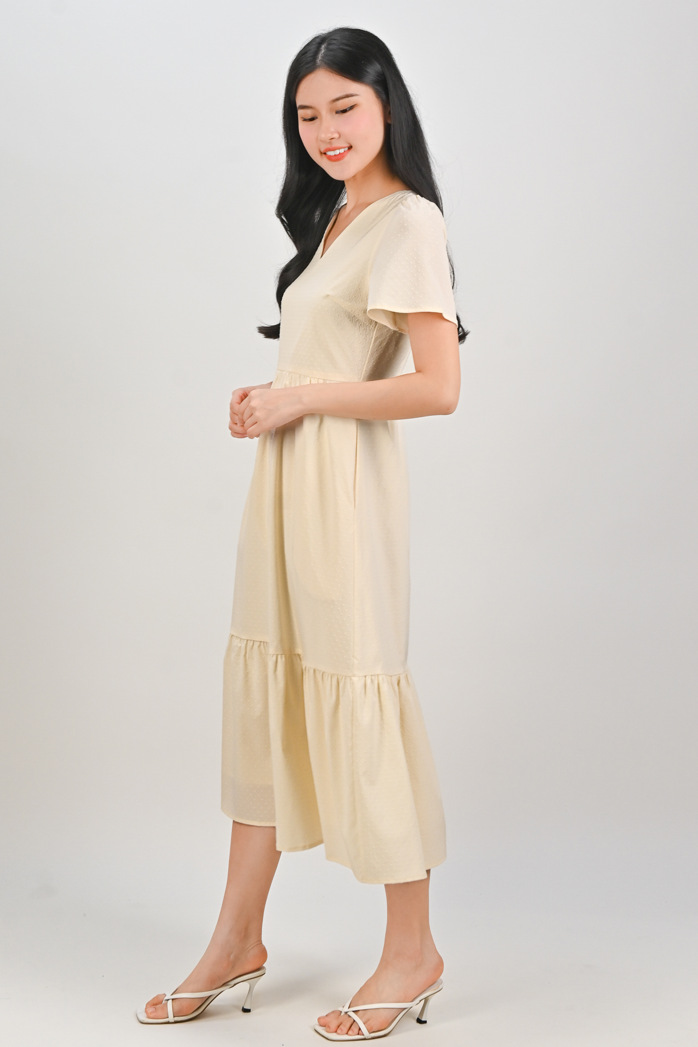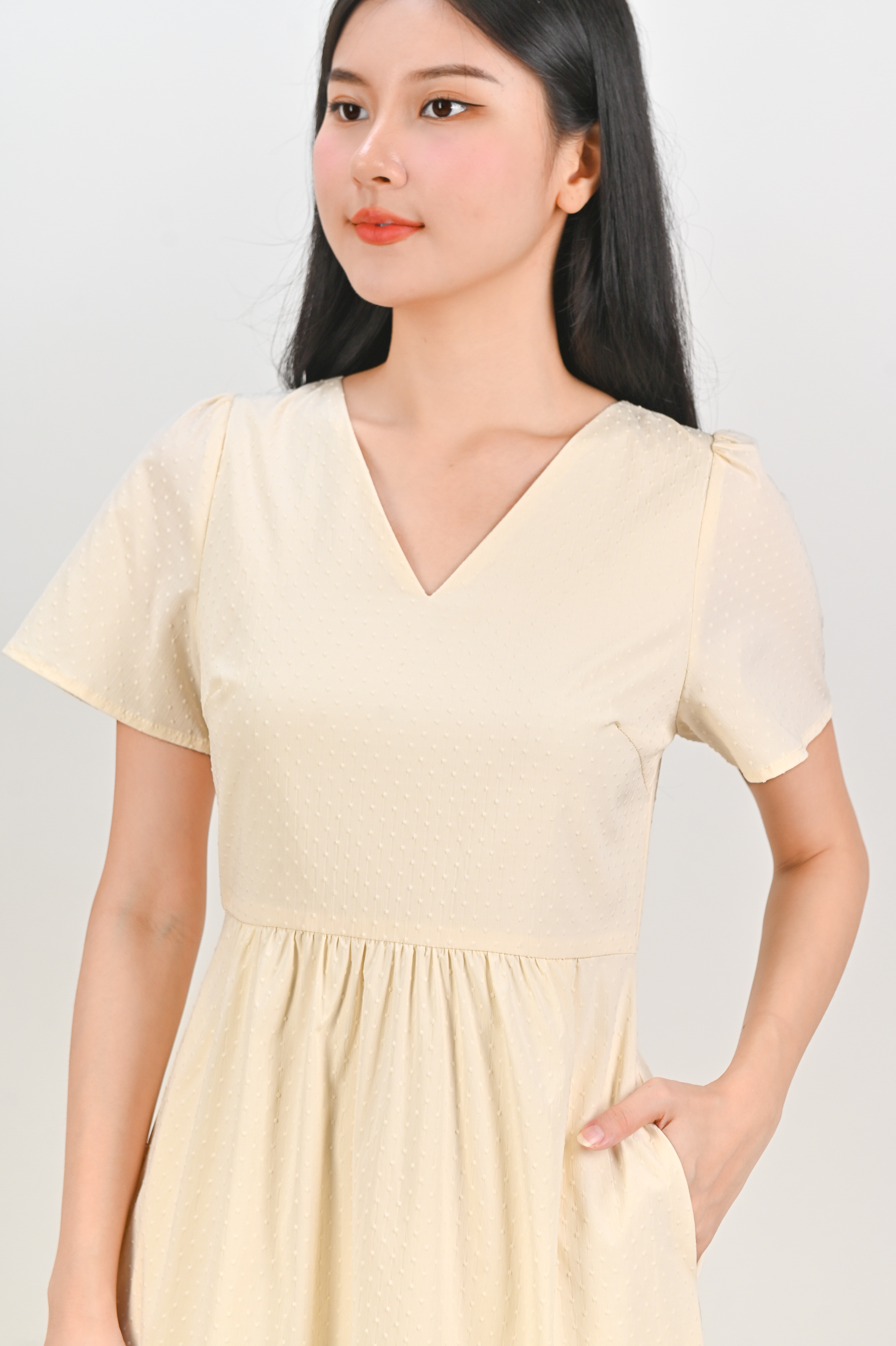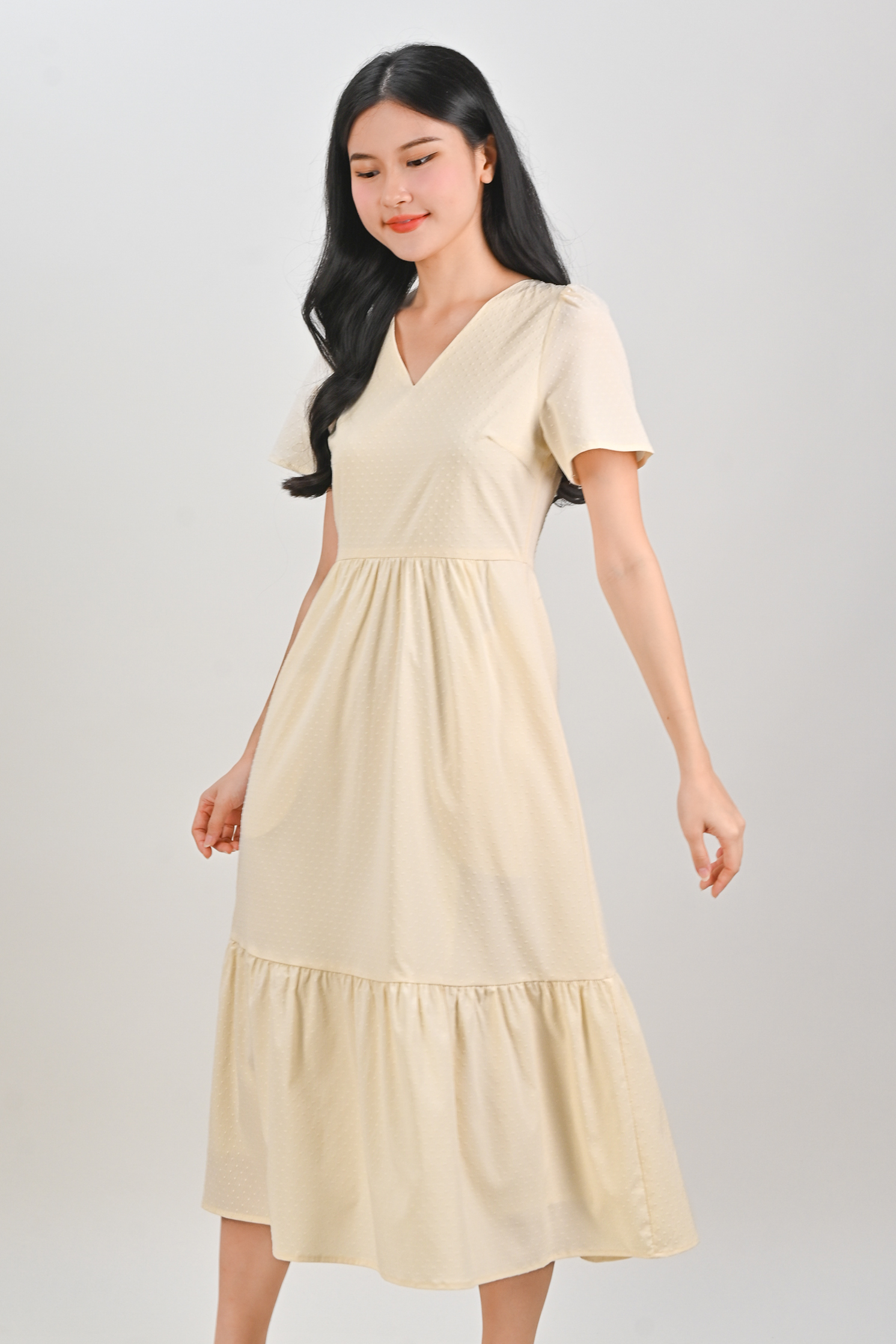 SYBELLE DOTTY V-NECK SLEEVED DRESS IN CREAM