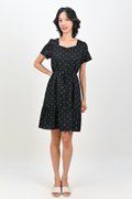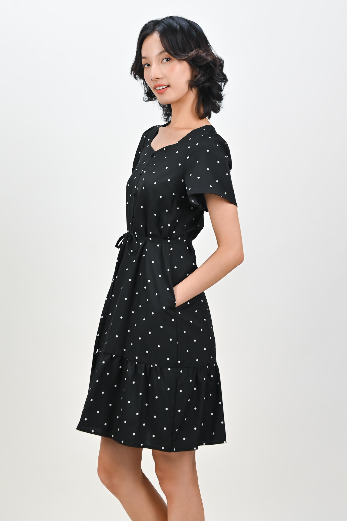 TALLARA POLKA SLEEVED BUTTON DRESS IN BLACK