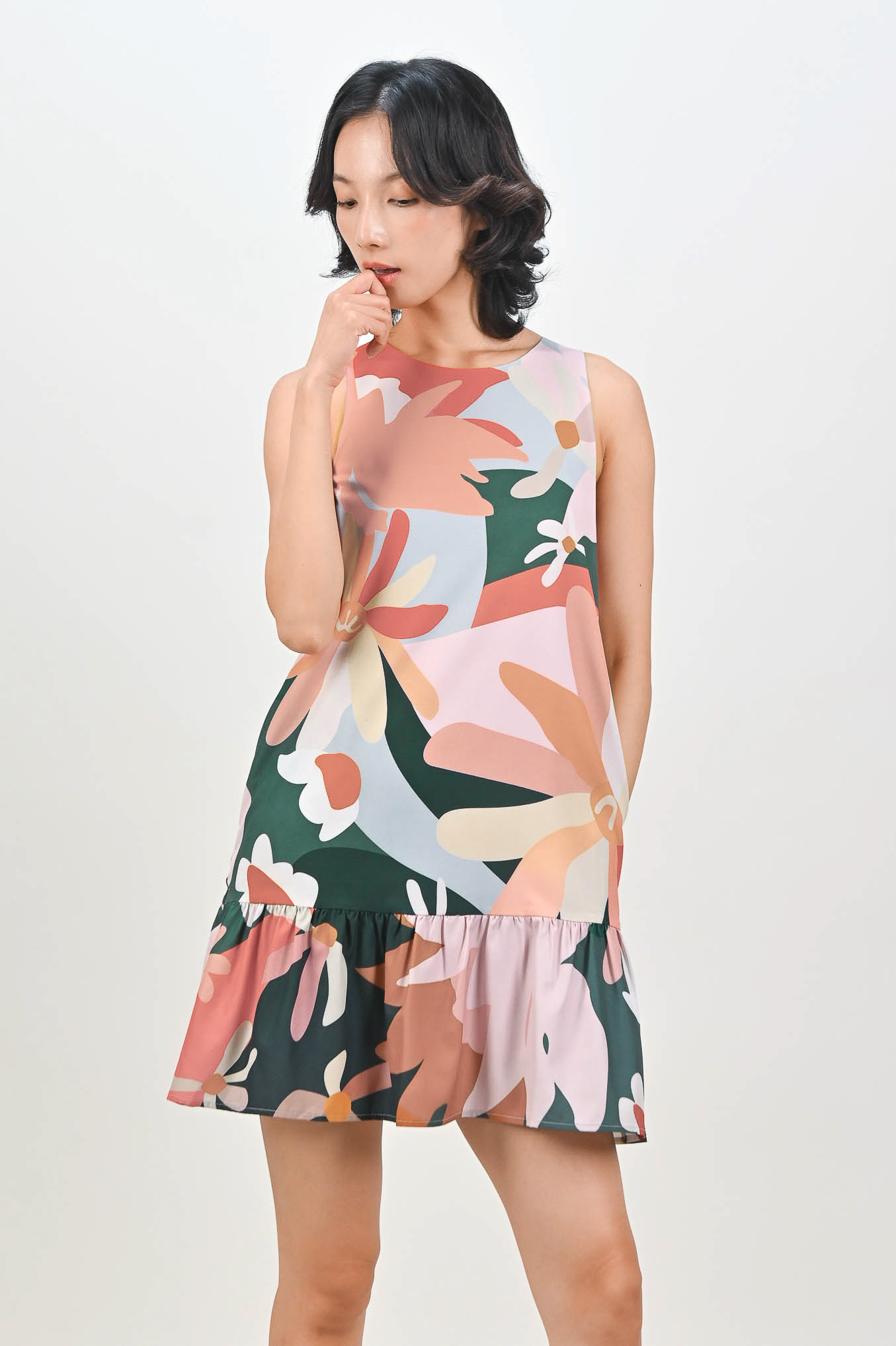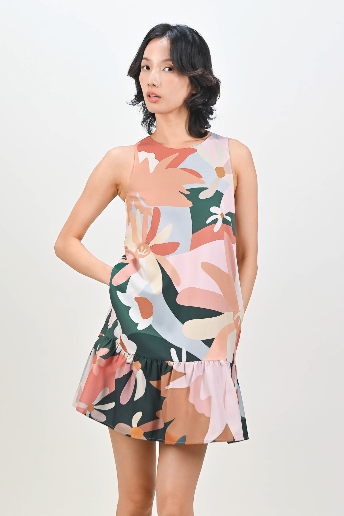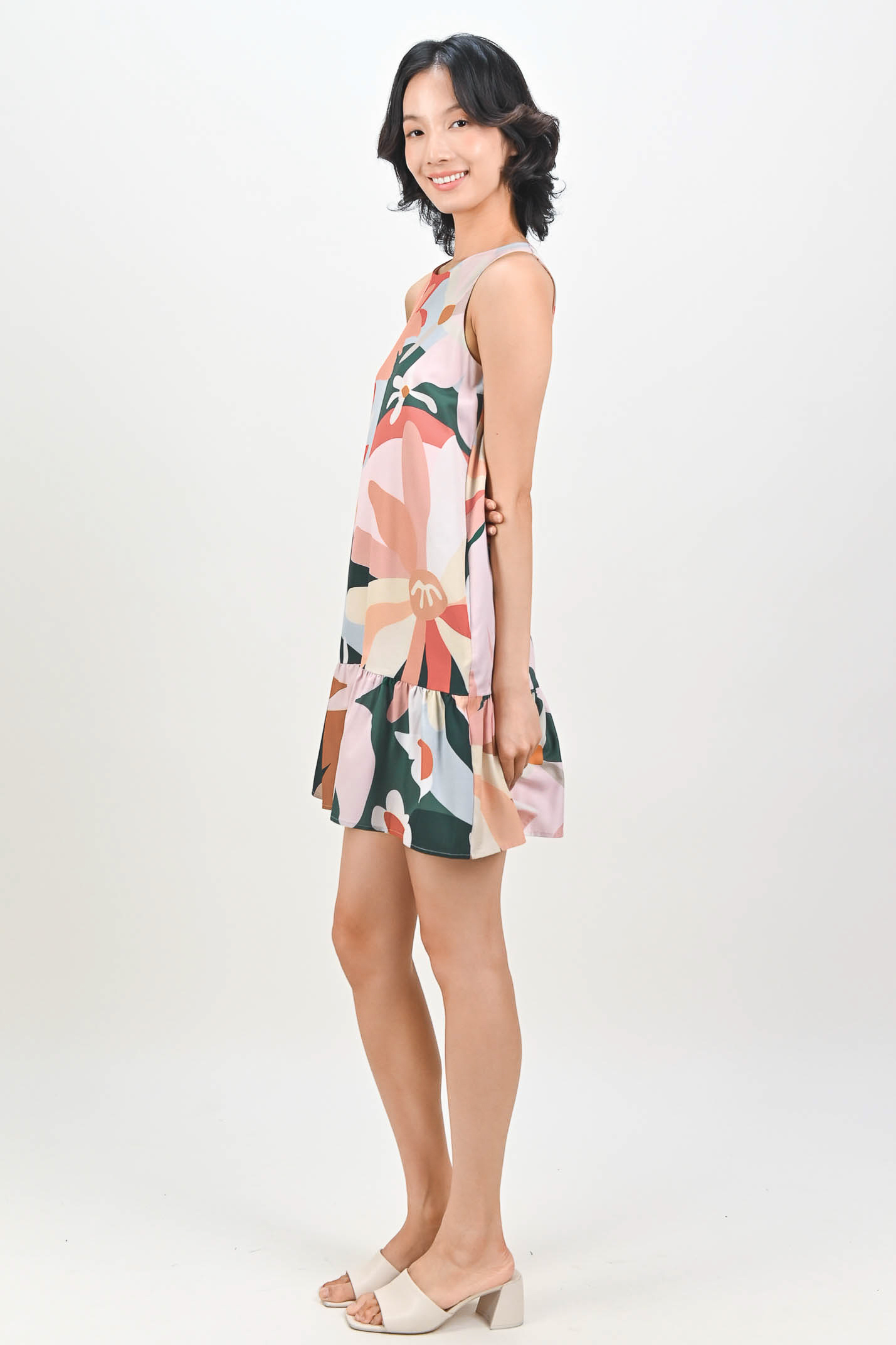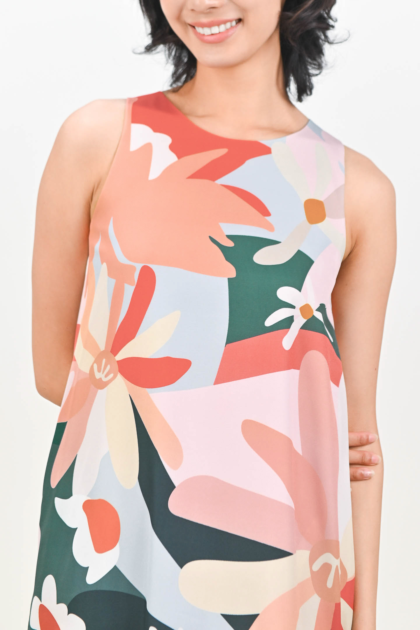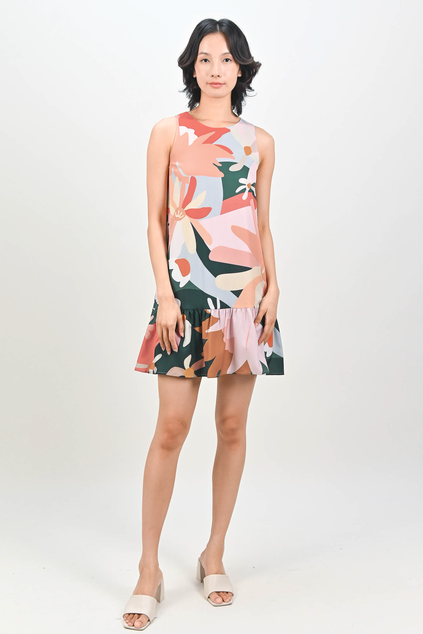TEAL GARDENS SLEEVELESS DROPWAIST DRESS