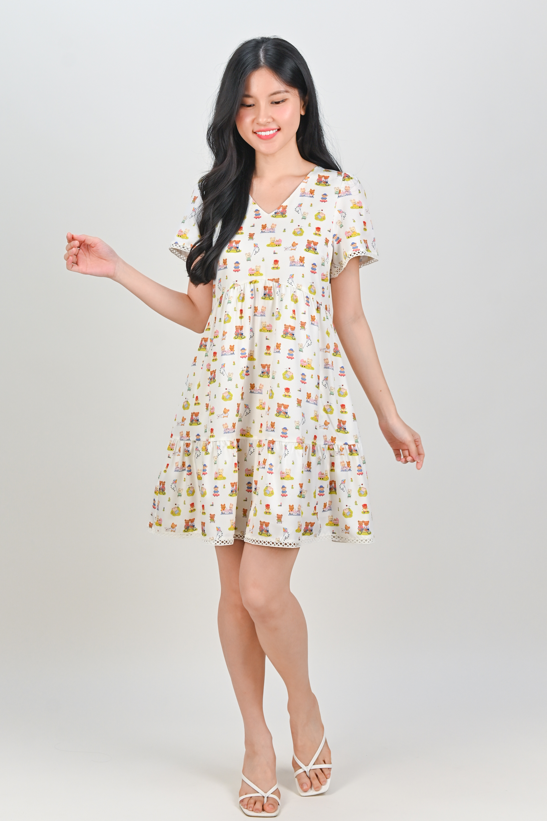 TEDDY PARK LACE-TRIM BABYDOLL DRESS