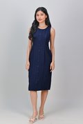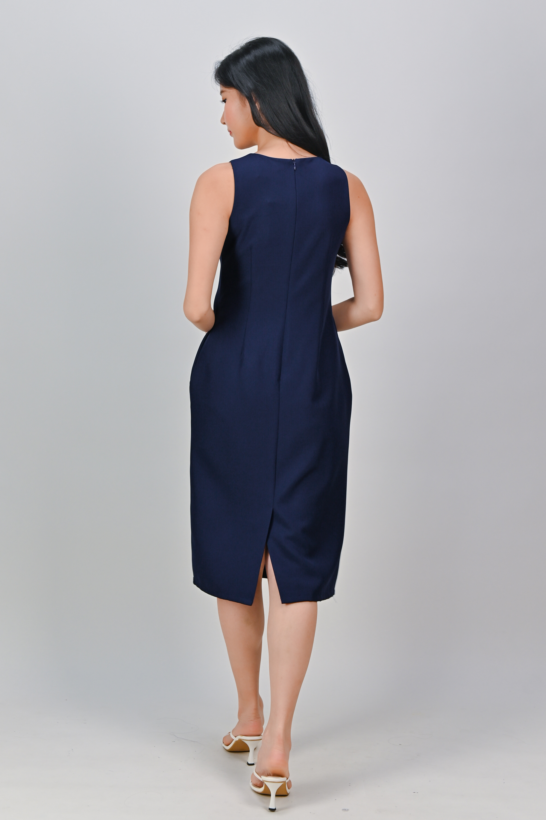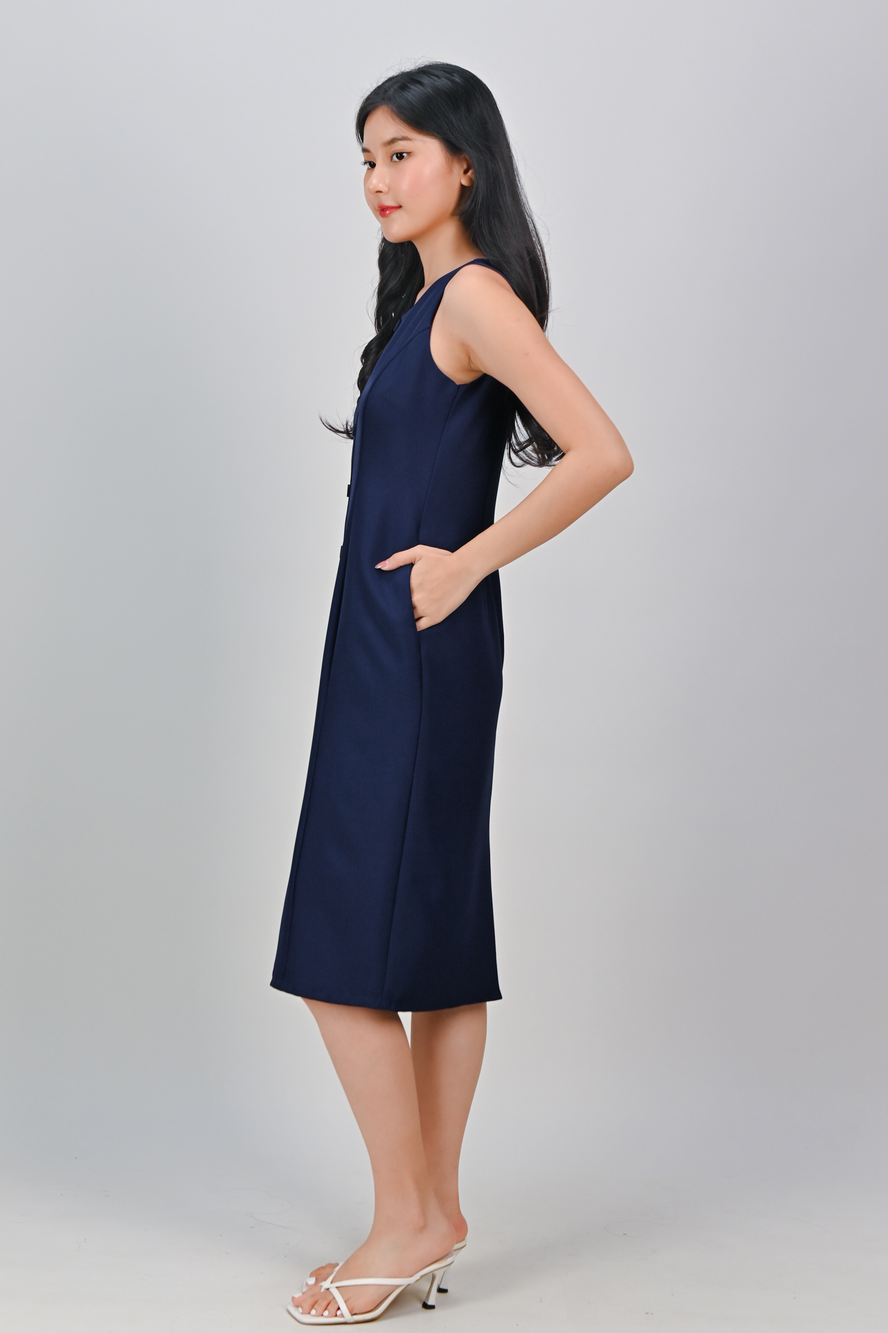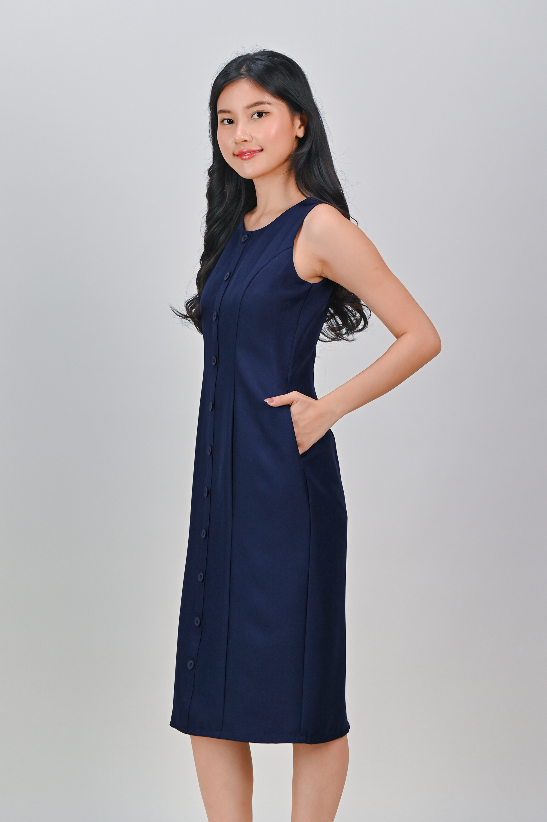 TEMARA BUTTON PENCIL DRESS IN NAVY