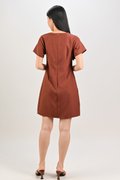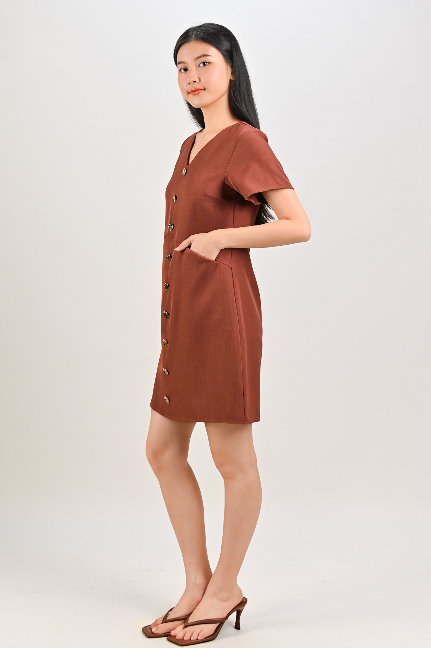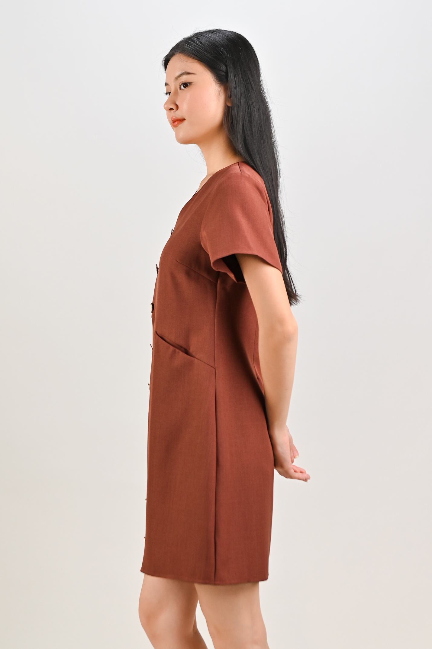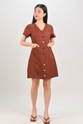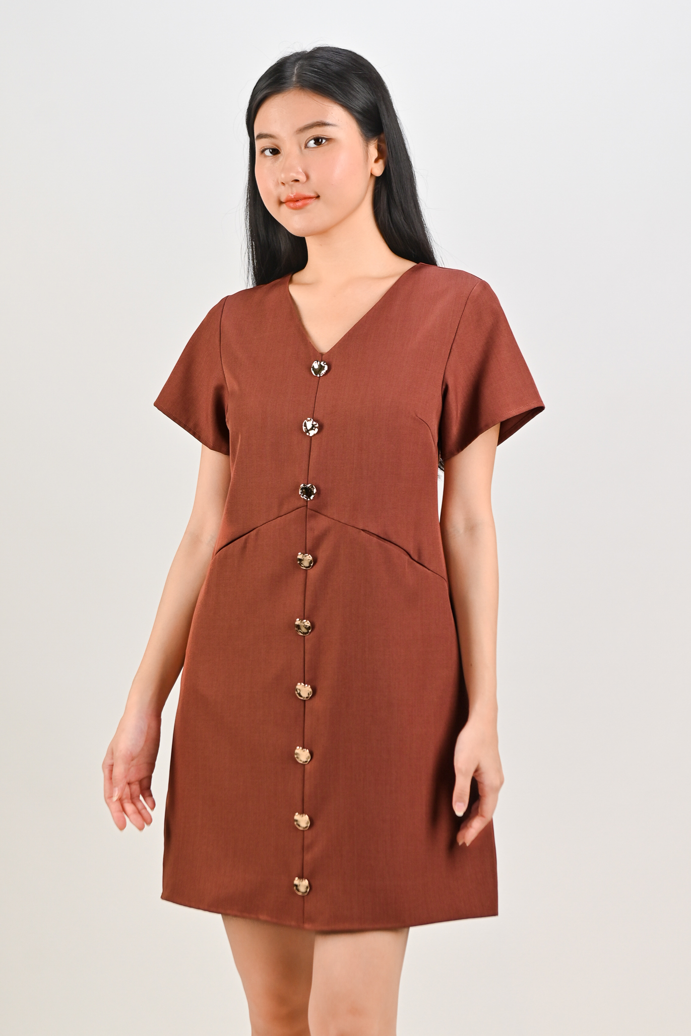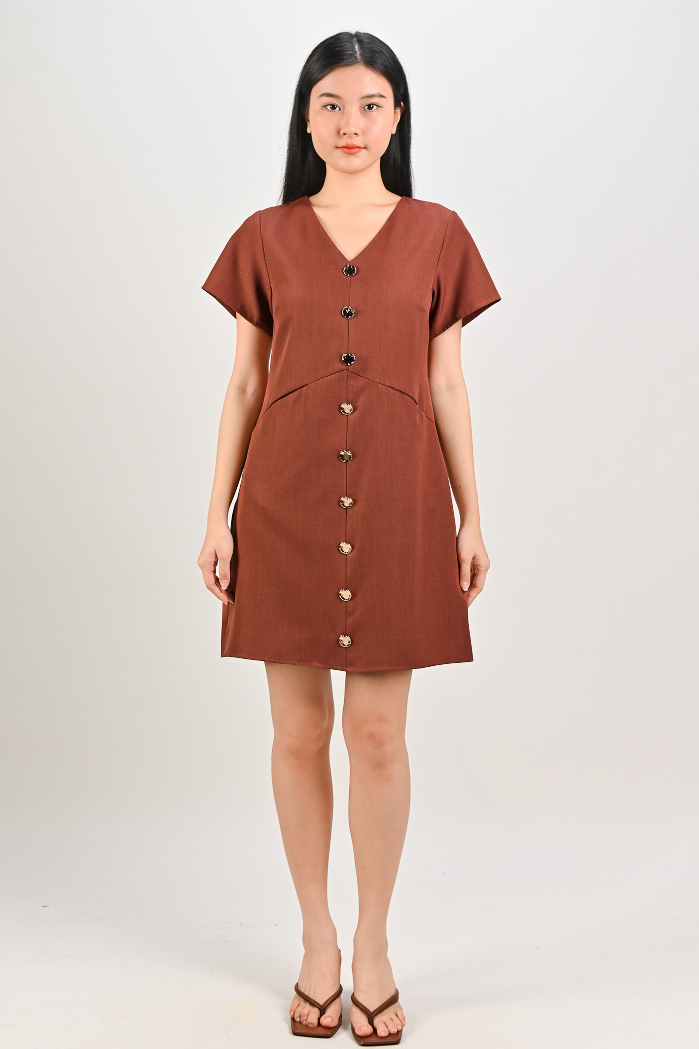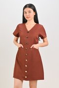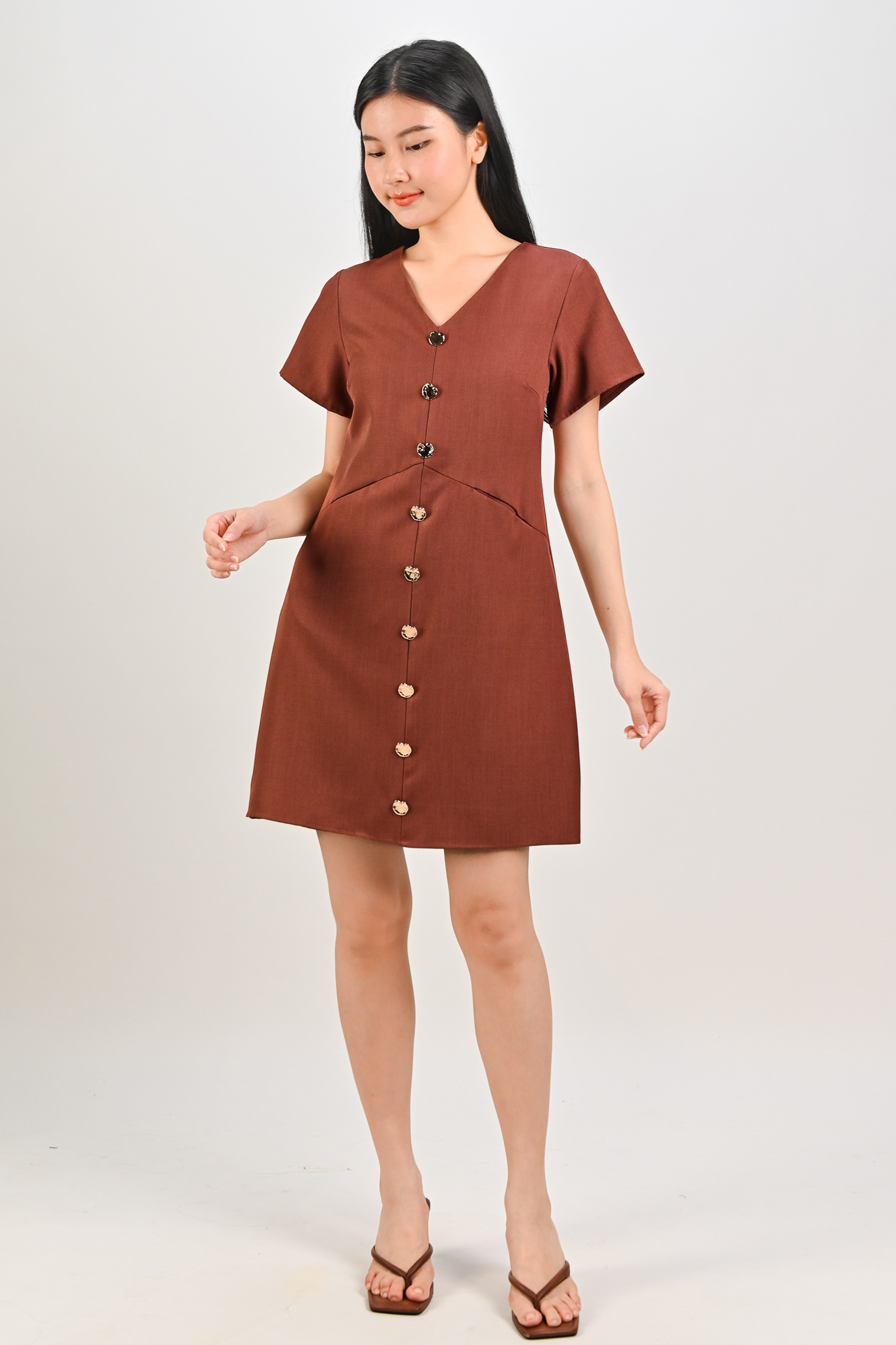 TILLY GOLD-BUTTON DRESS IN CHESTNUT