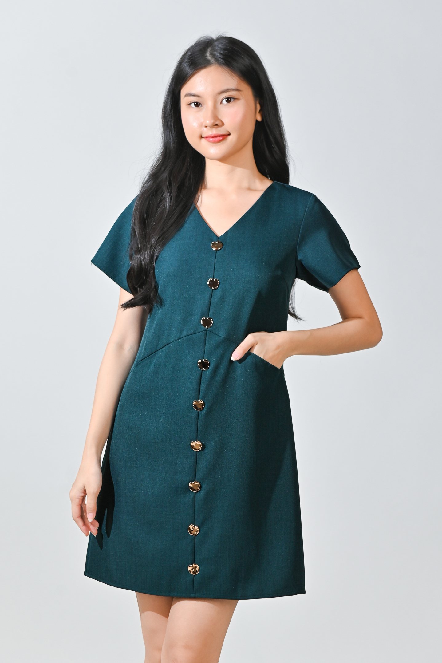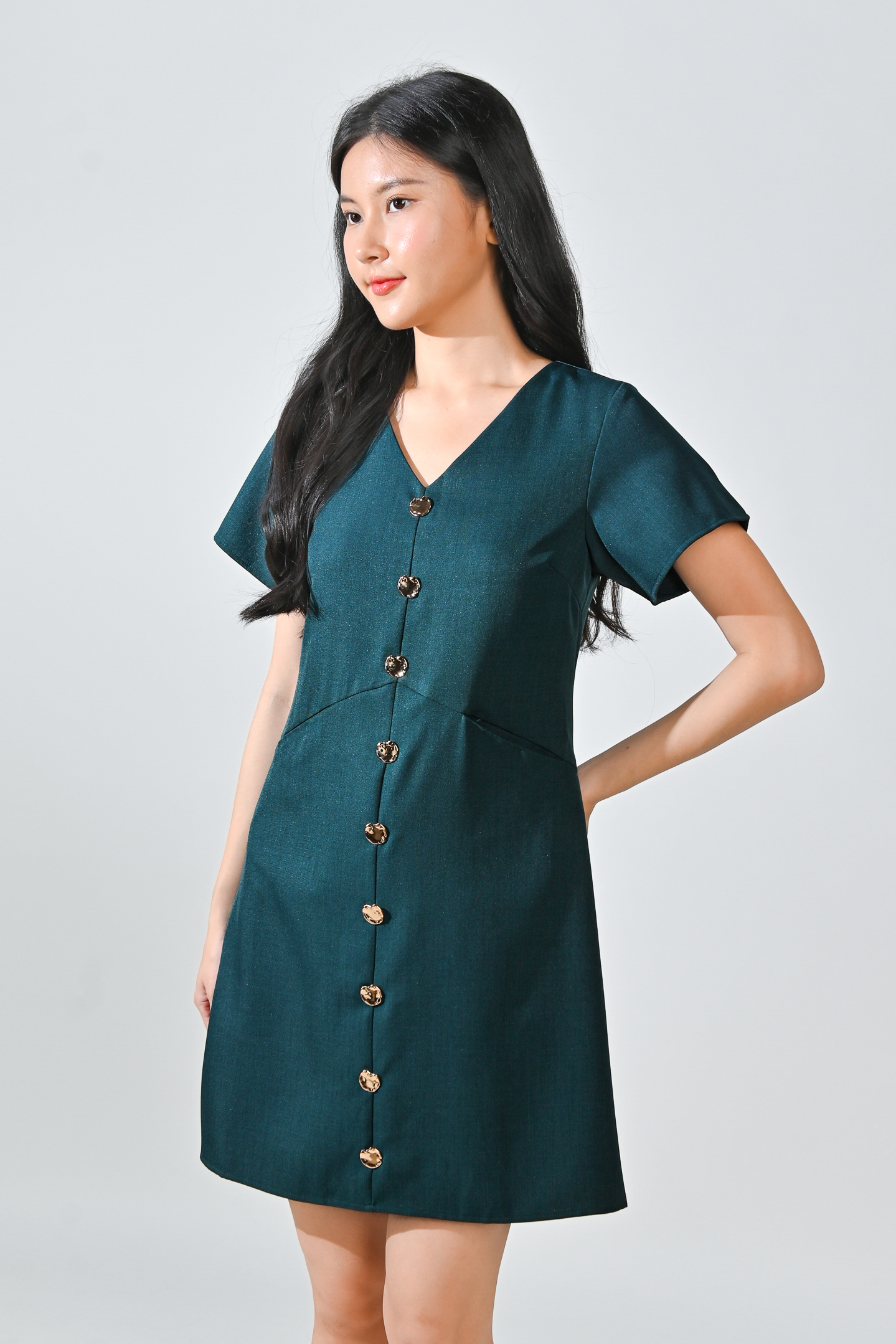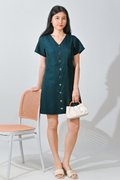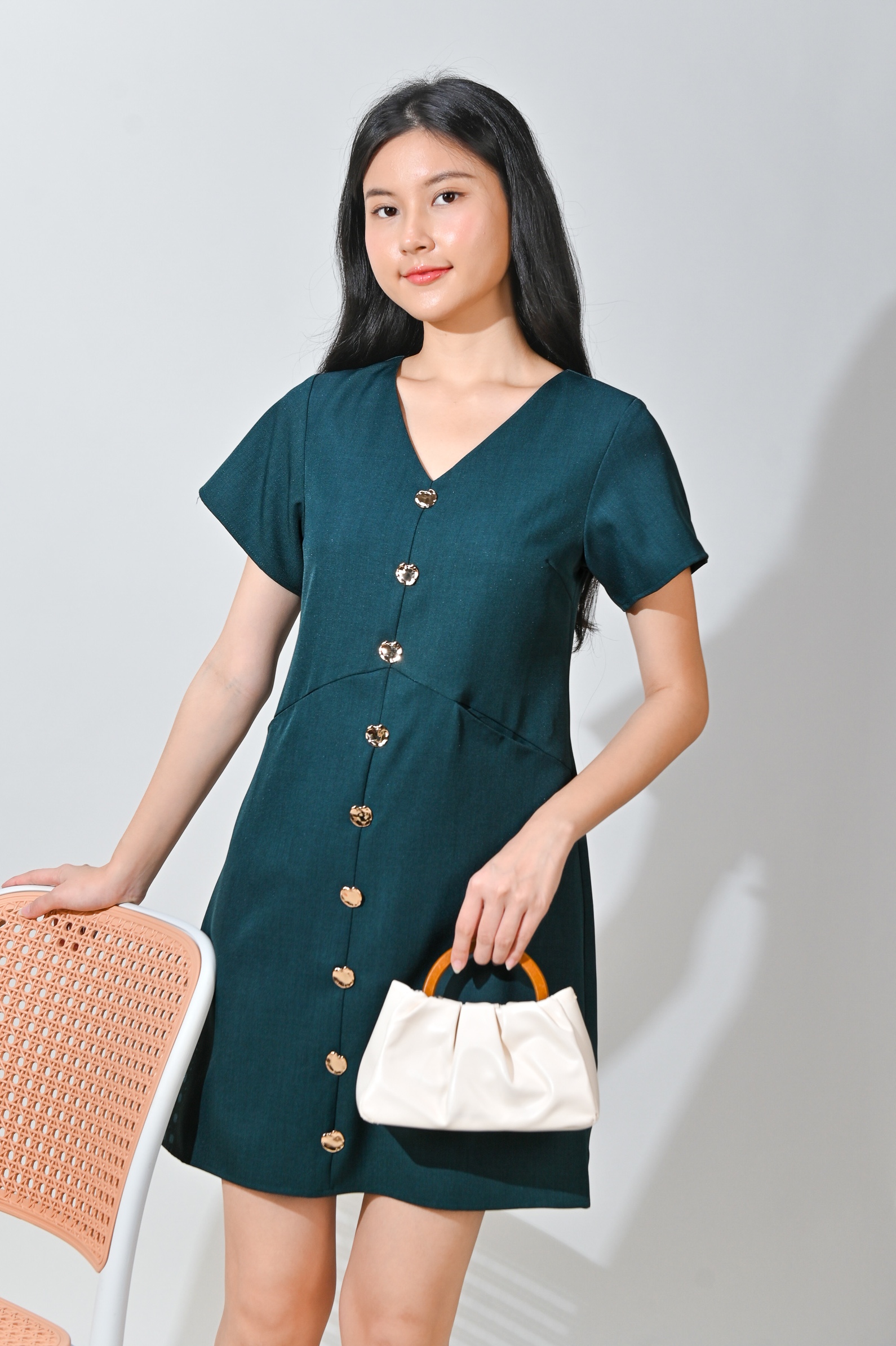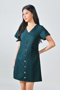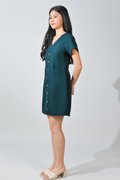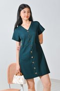 TILLY GOLD-BUTTON DRESS IN FOREST