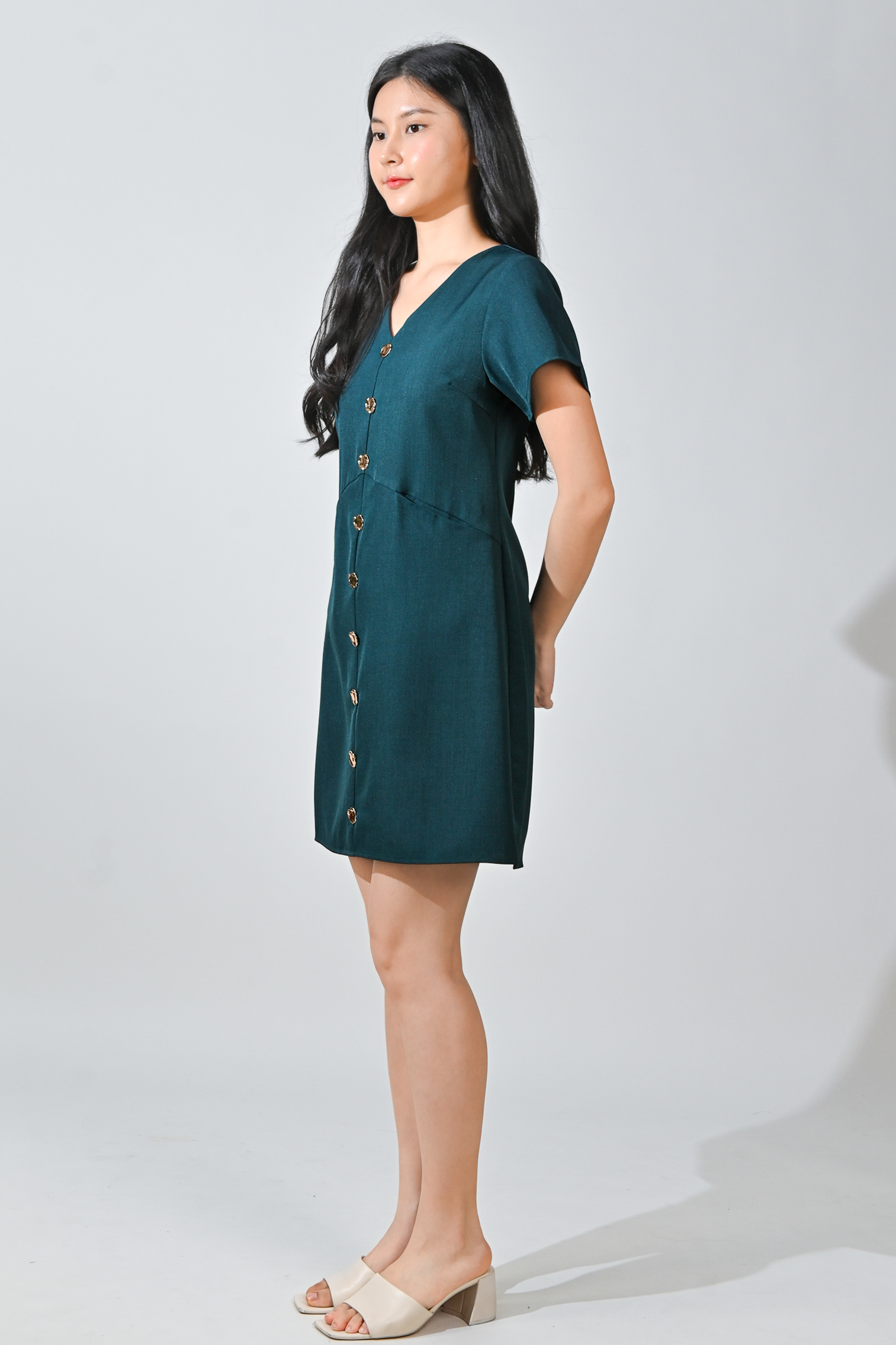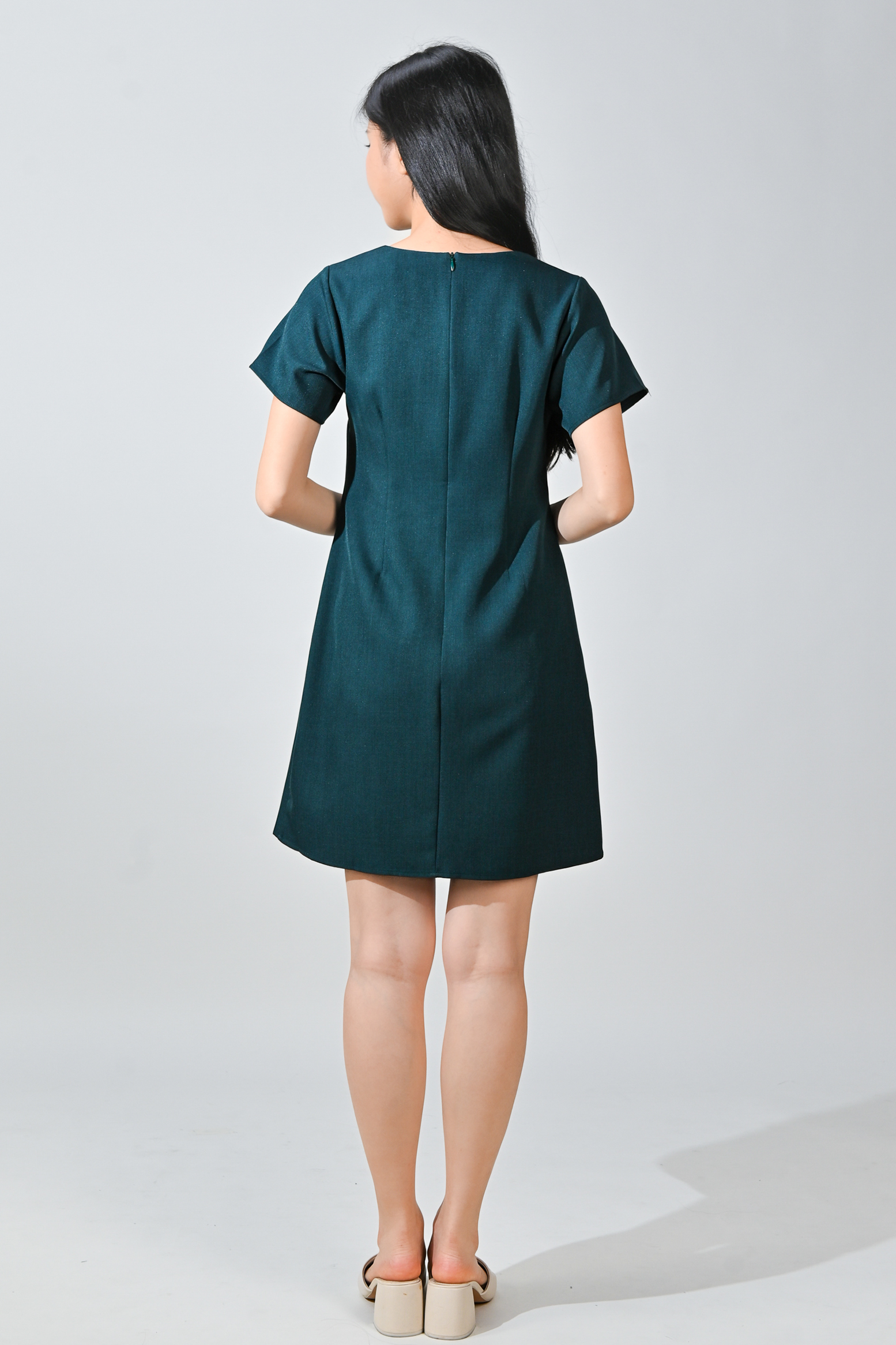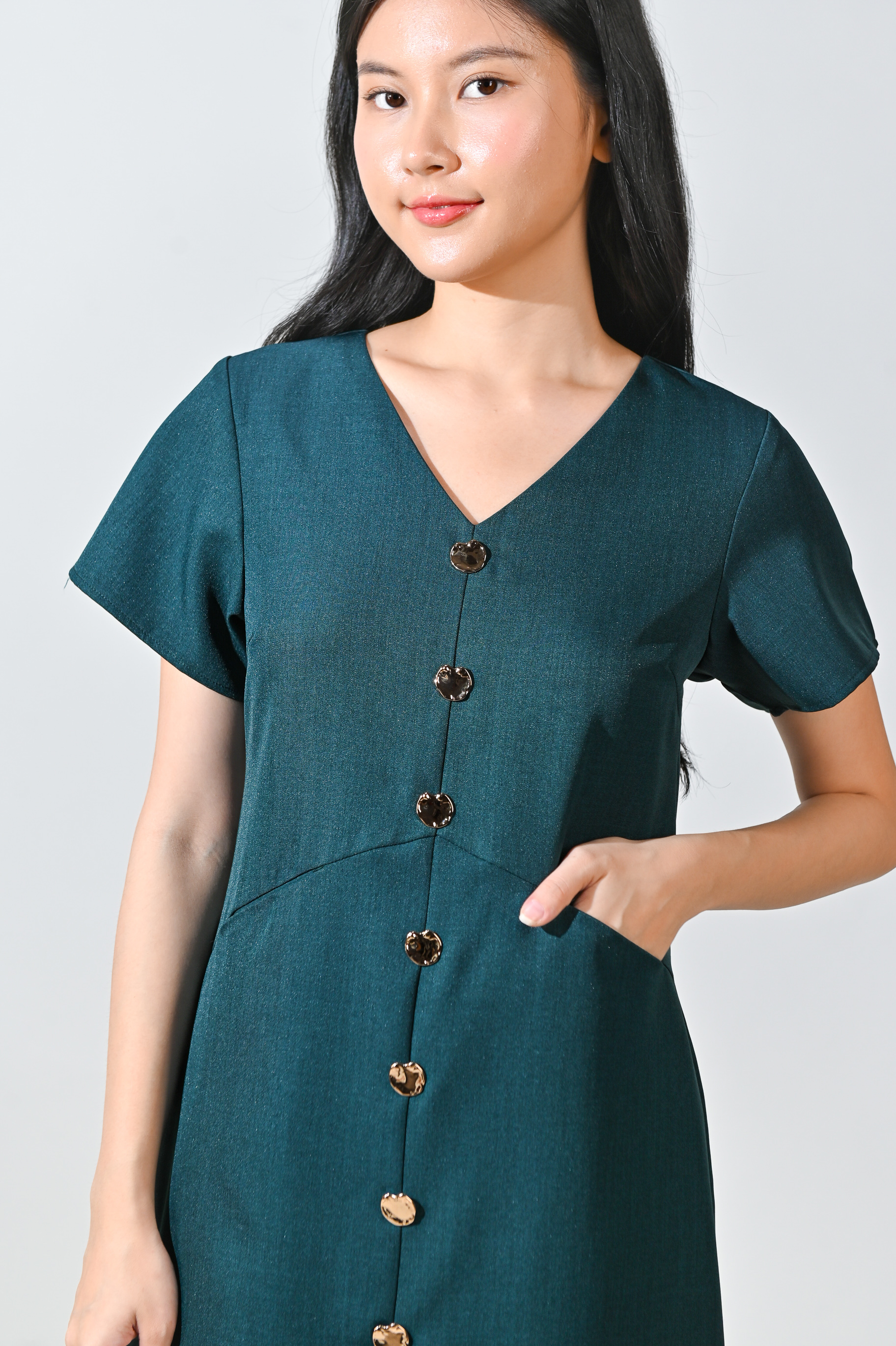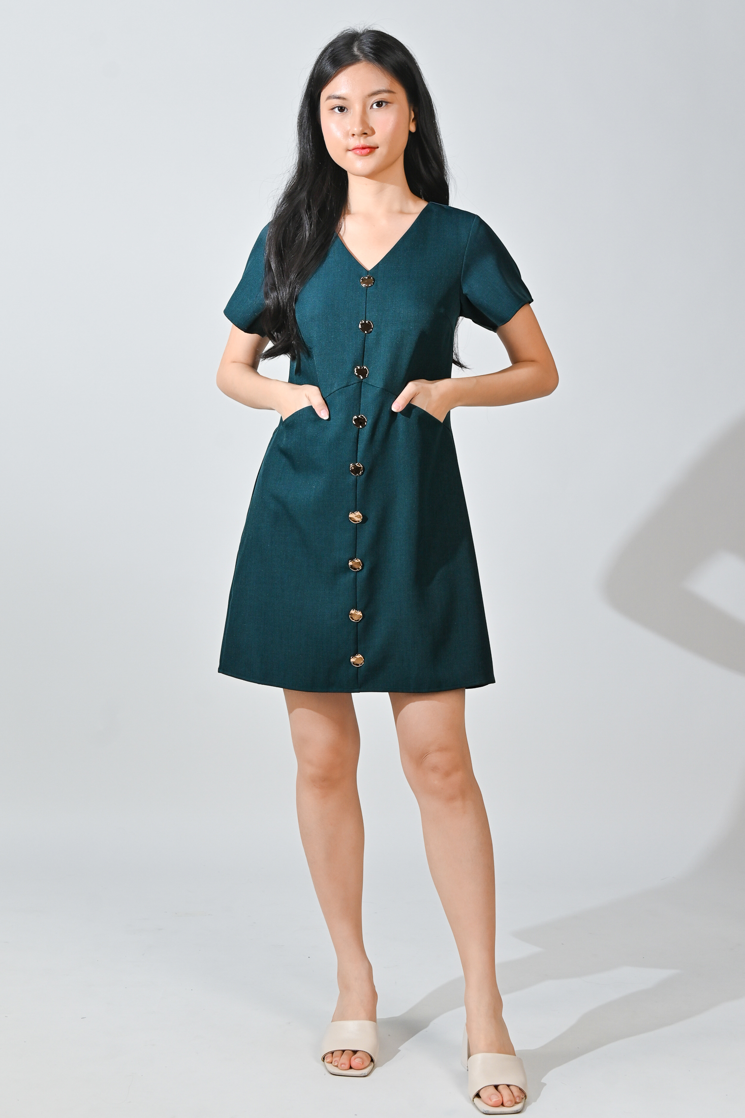TILLY GOLD-BUTTON DRESS IN FOREST