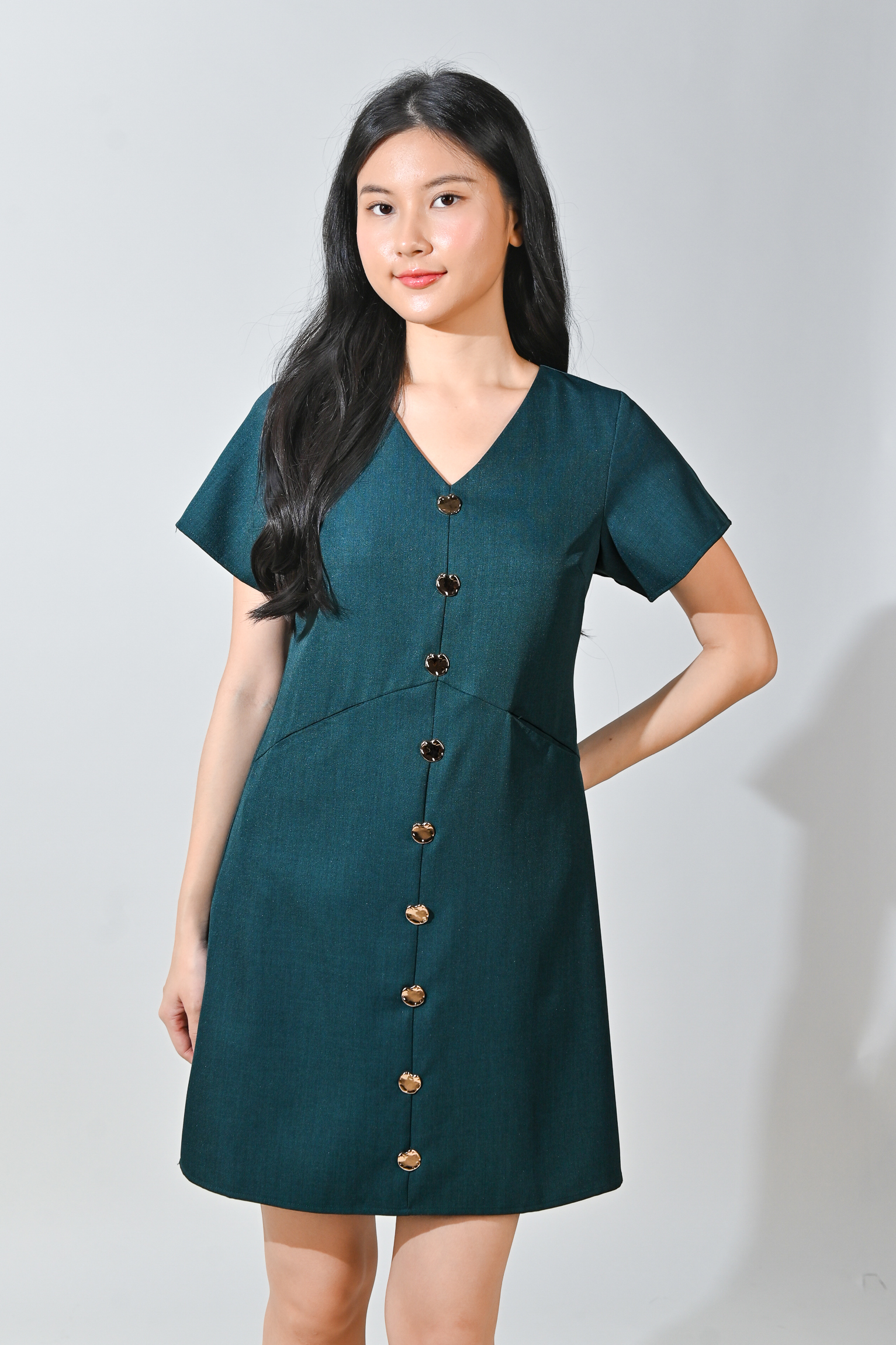 Actual stocks may varyThe perfect combo of a flattering, wonderful cut and classy vintage-esque buttons! ✨ These pretty gold buttons give our Tilly Dress an instant touch of elegance and class!