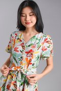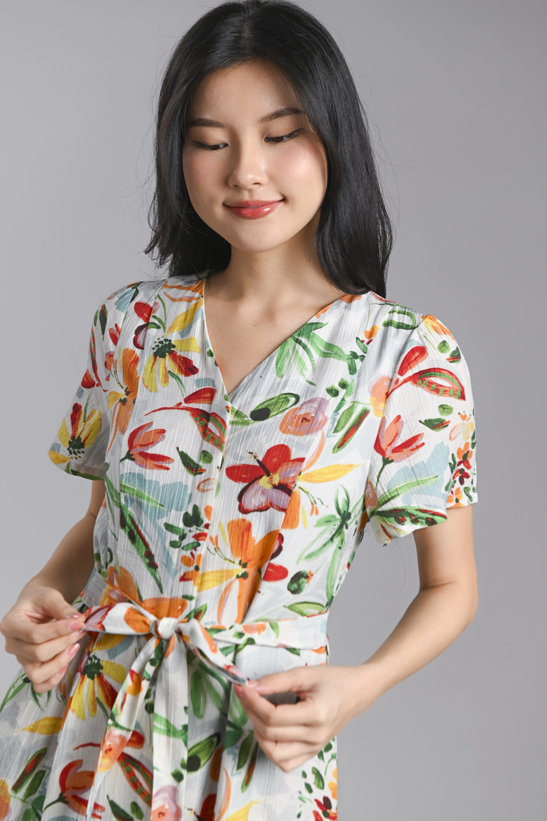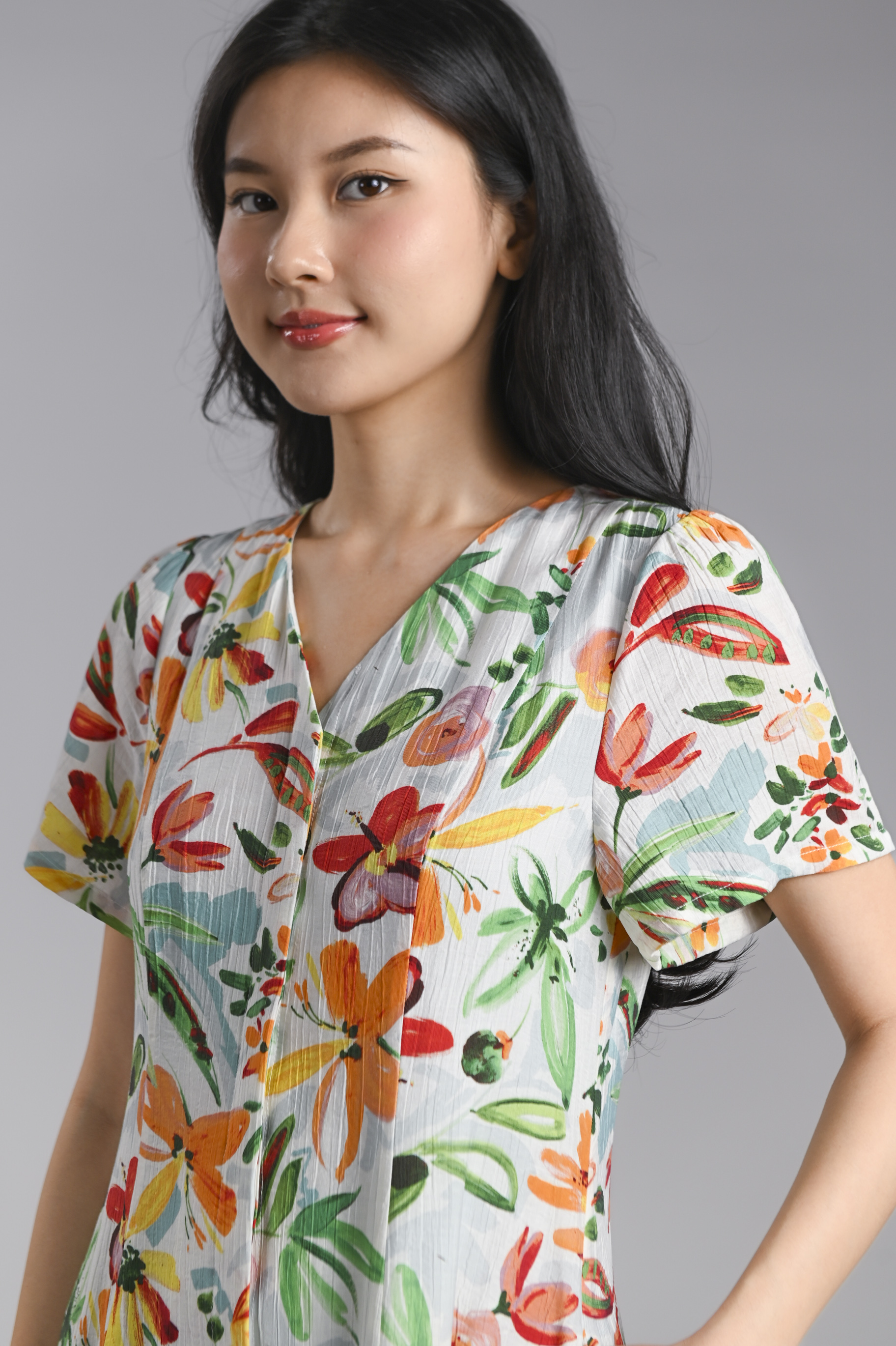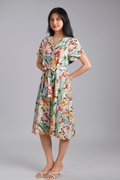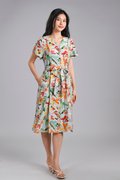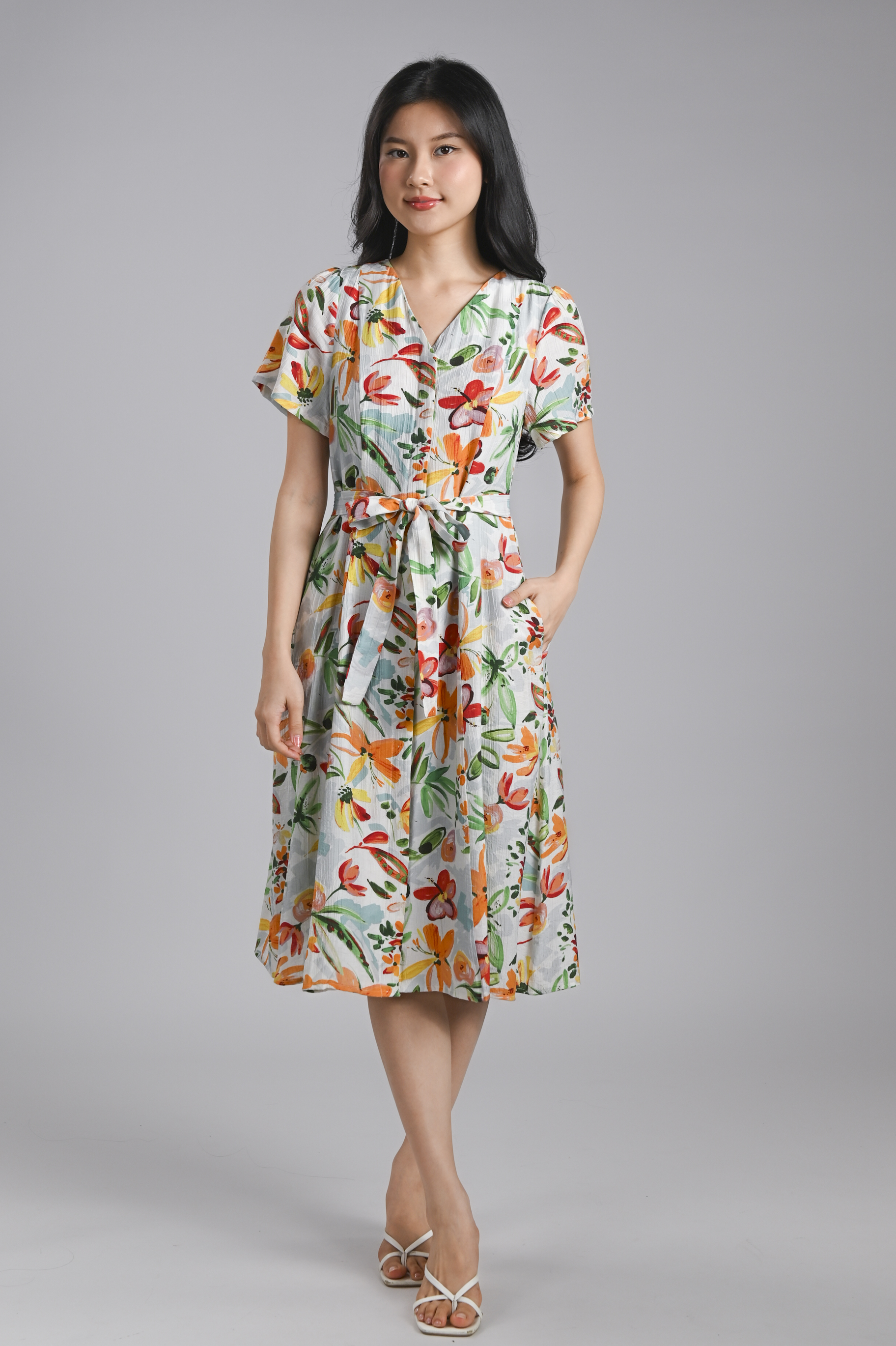 TORIA FLORAL SLEEVED BUTTON MIDI DRESS