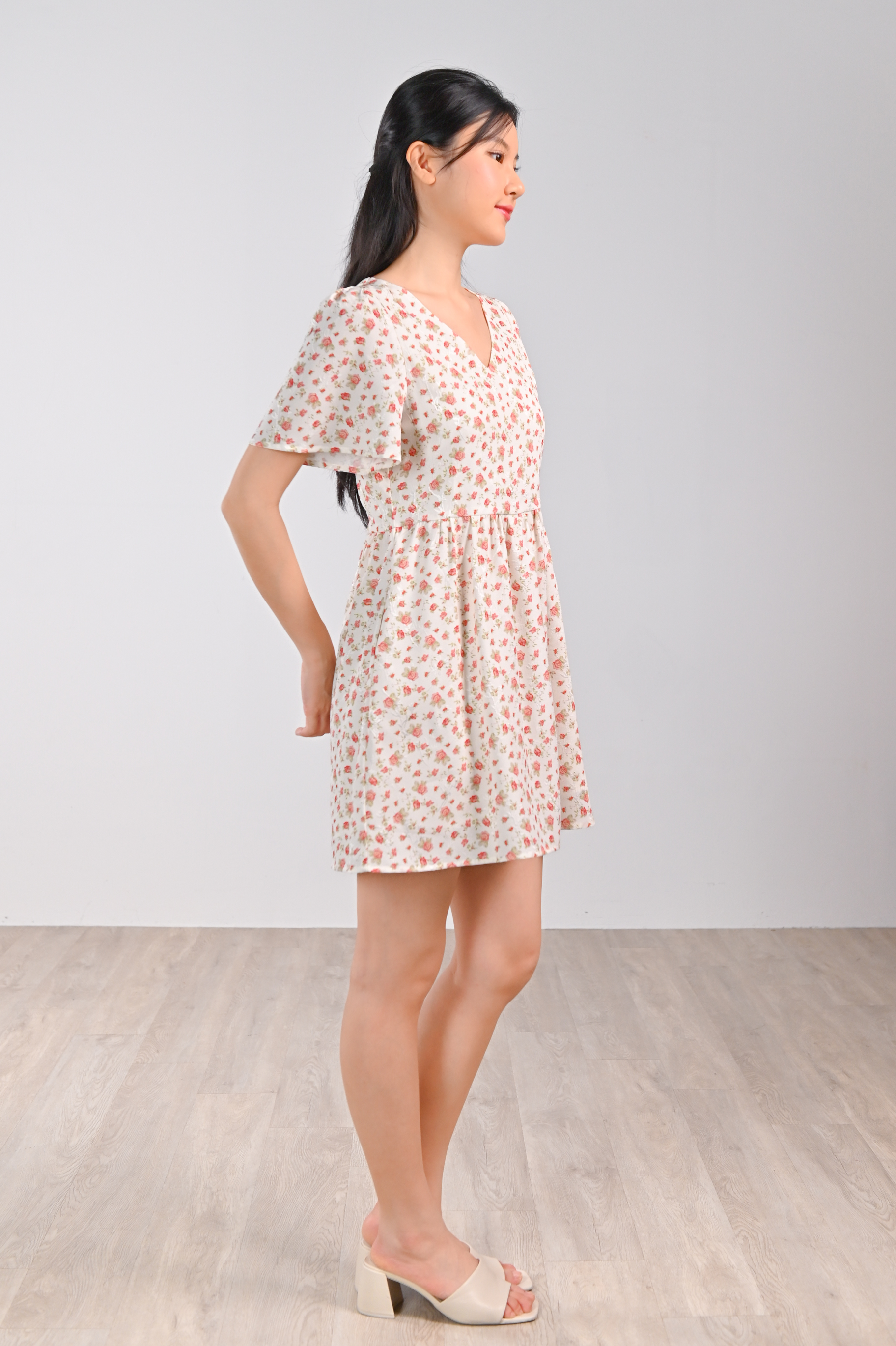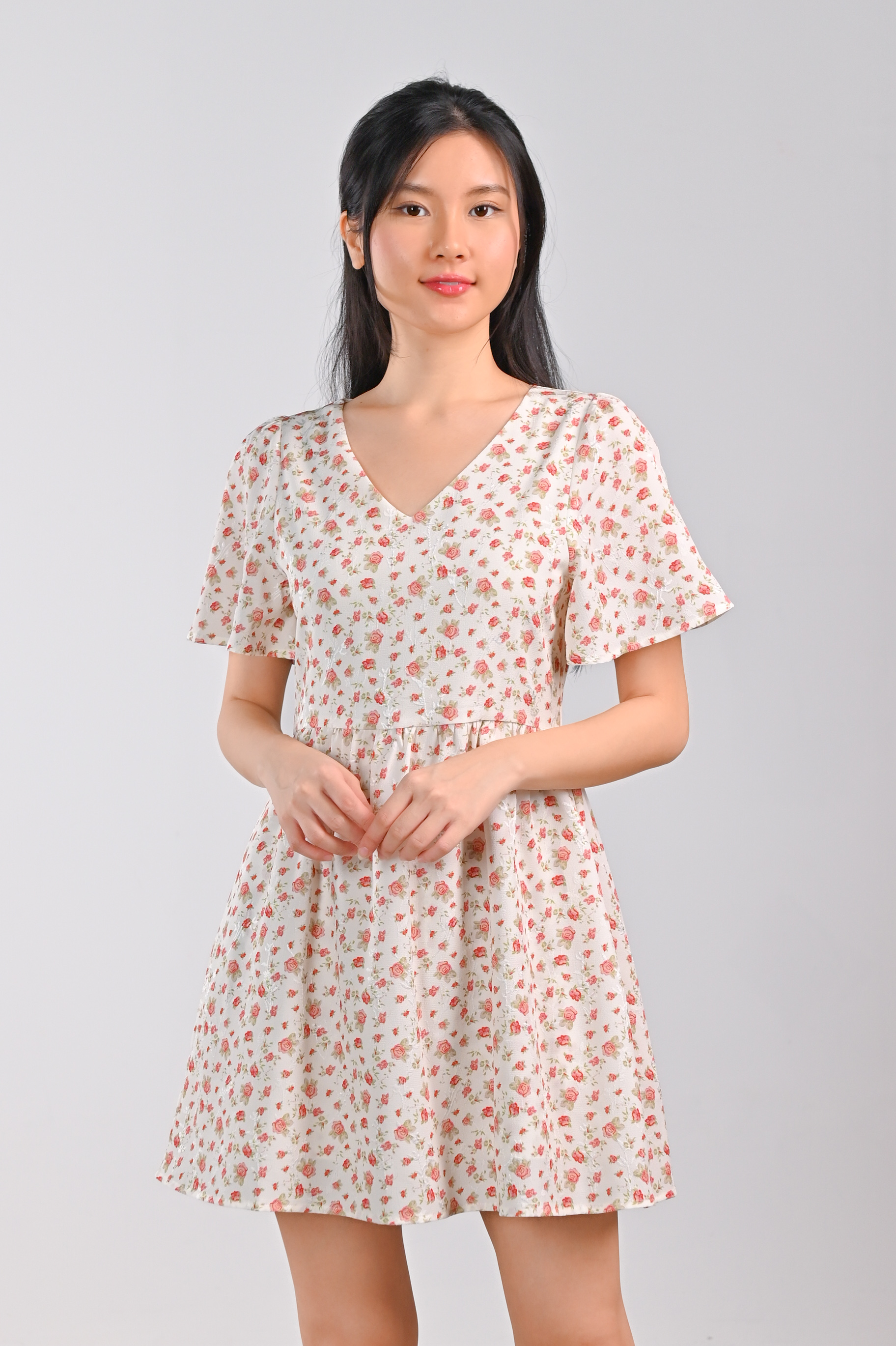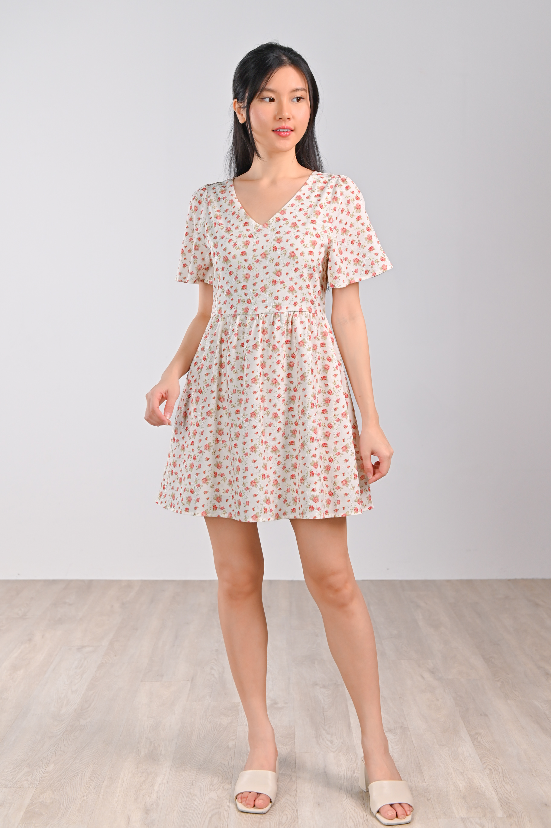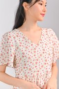 TRACY RED FLORAL V-NECK DRESS-ROMPER