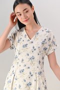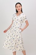 TROMSO BLUE FLORAL SLEEVED MIDI DRESS