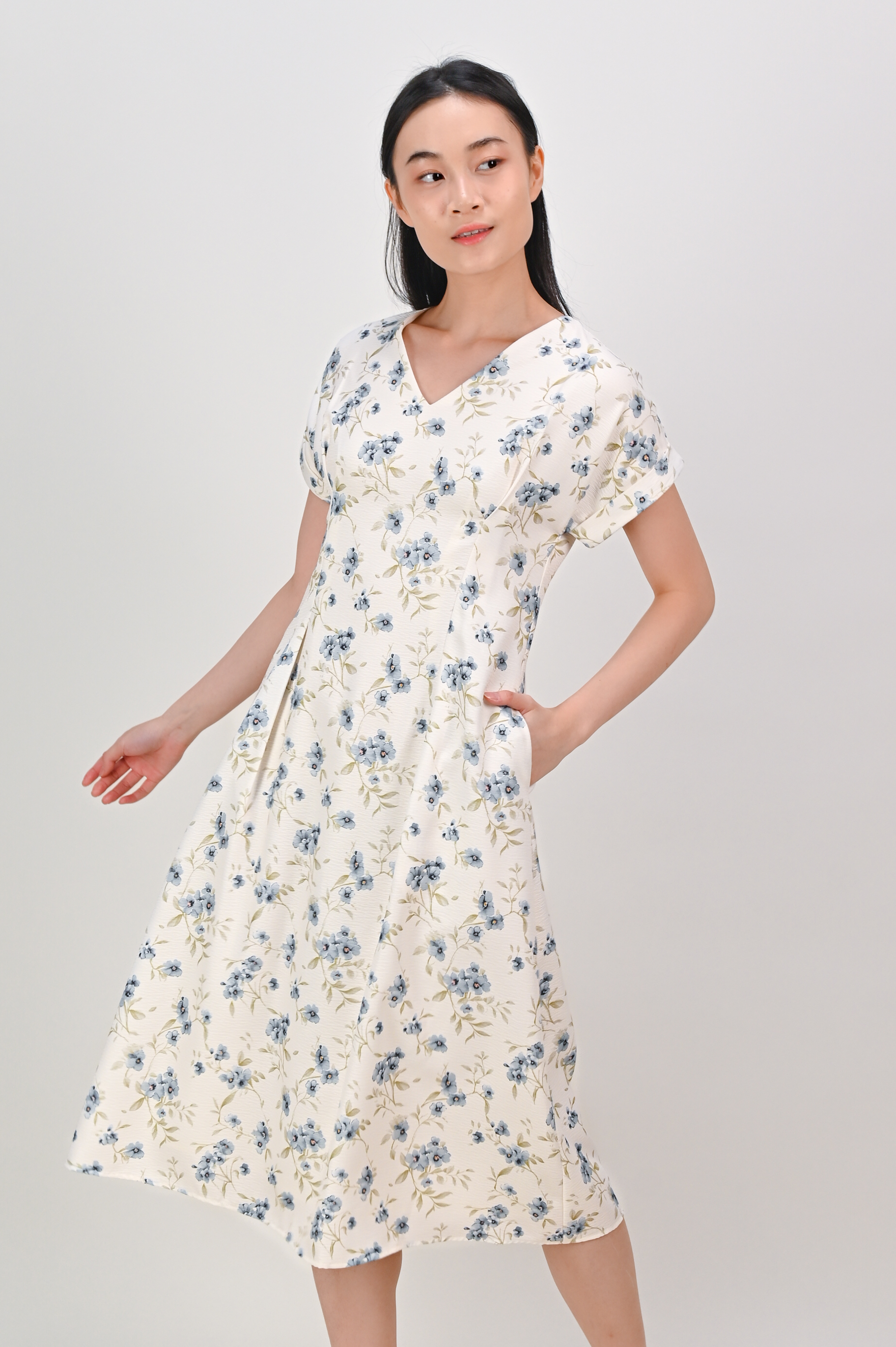Actual stocks may varySwitch it up with our Tromso Sleeved Midi Dress! A flower-powered number with pleats and curves we all love! 💙