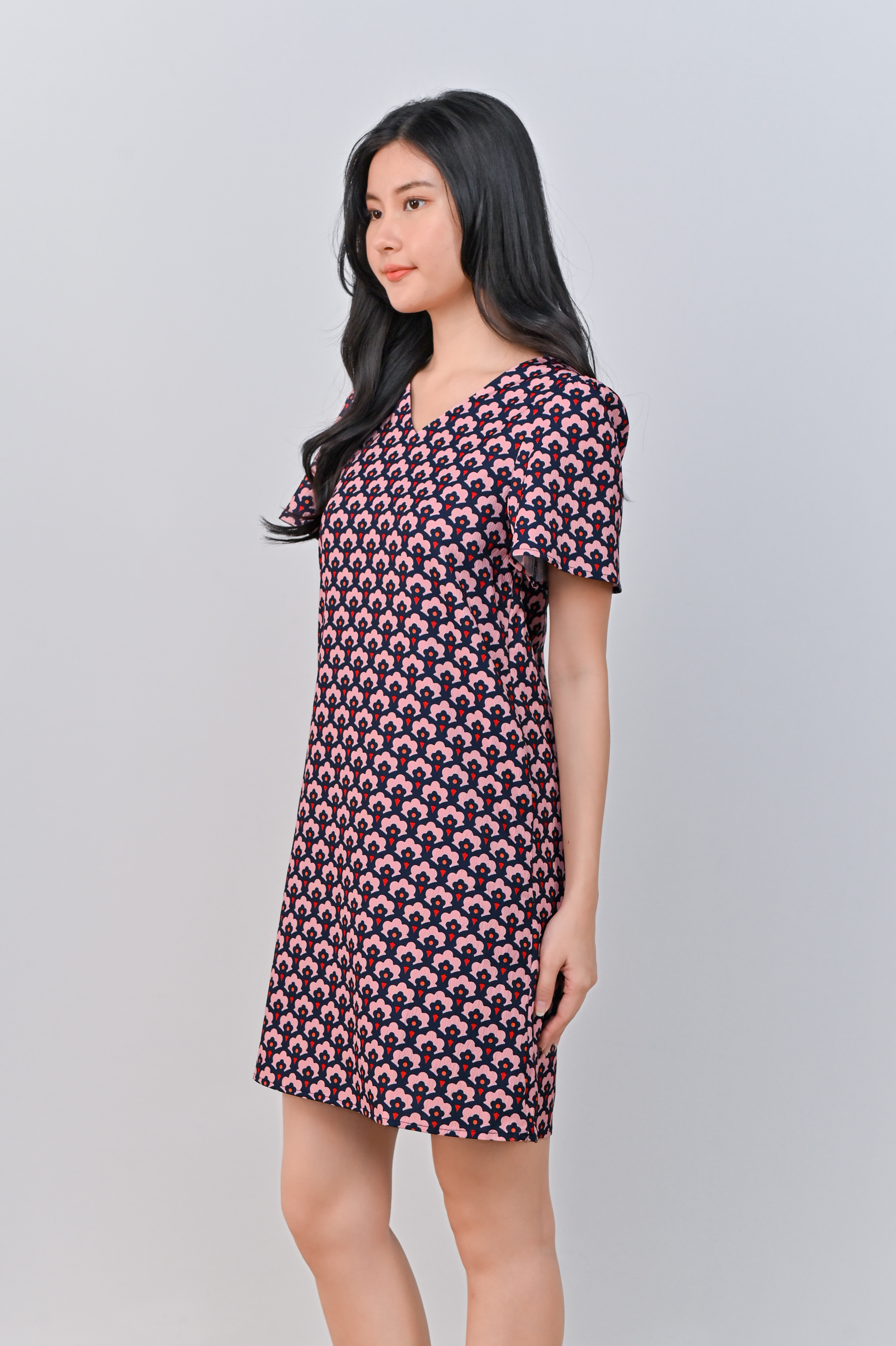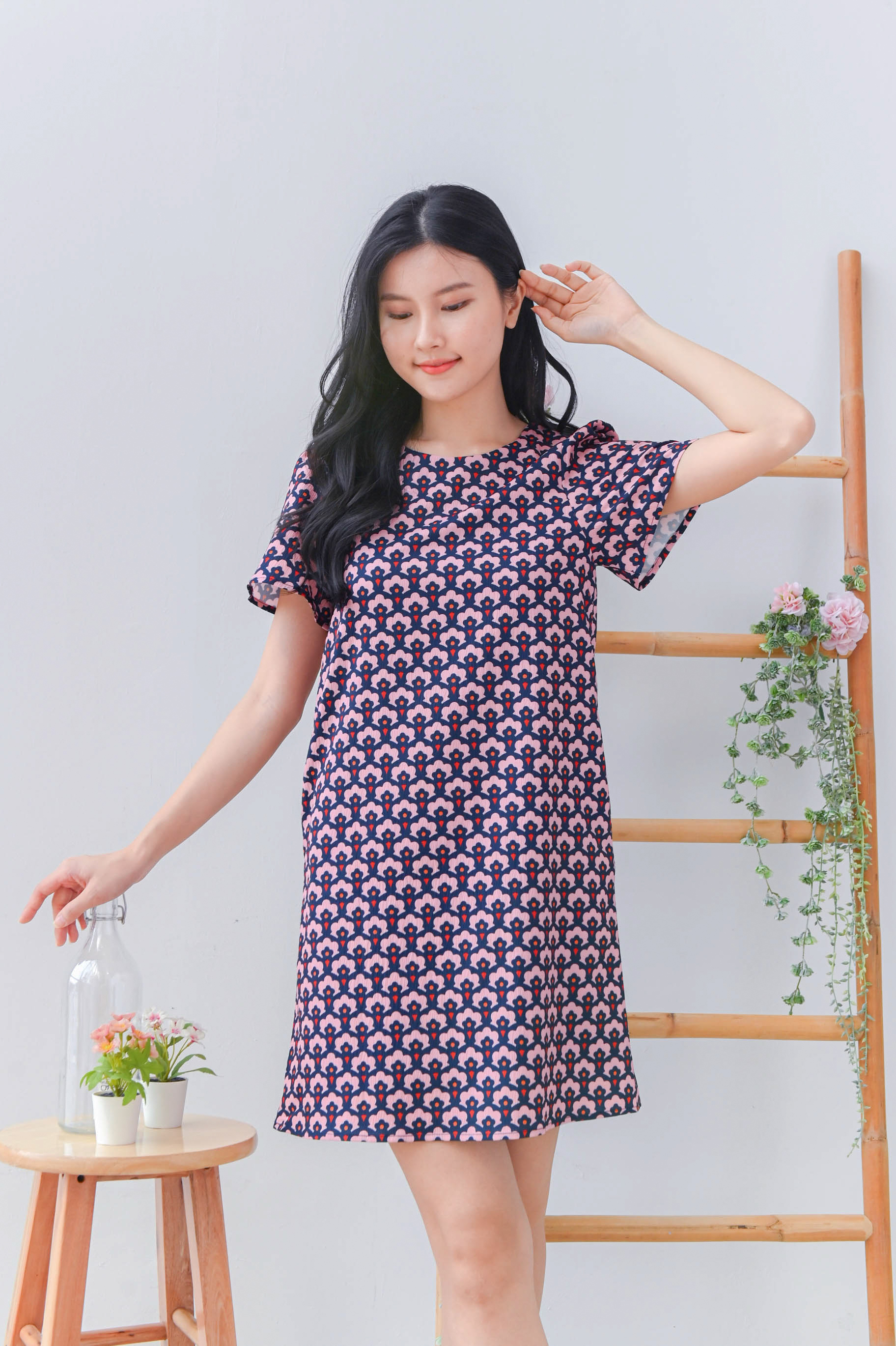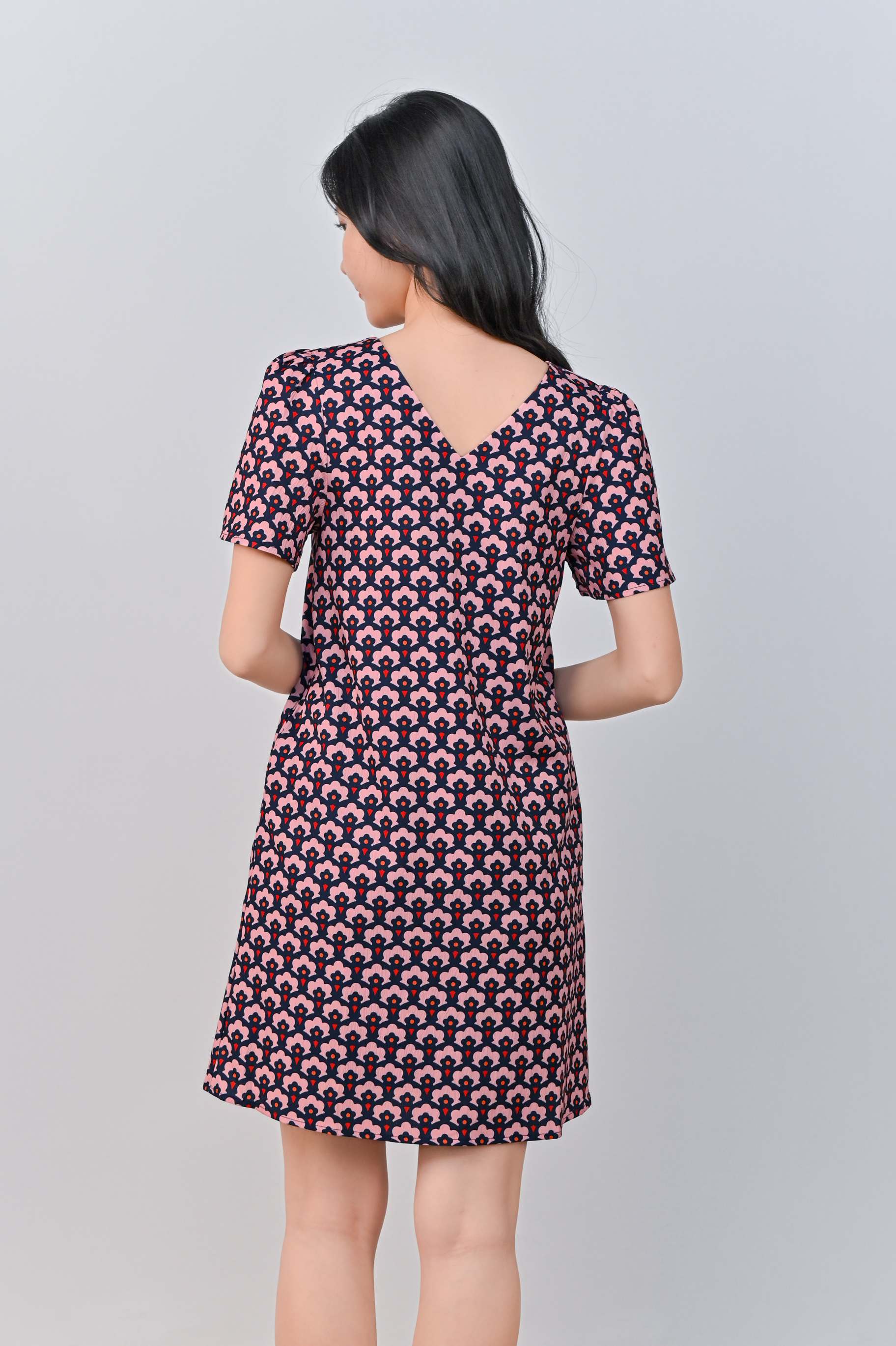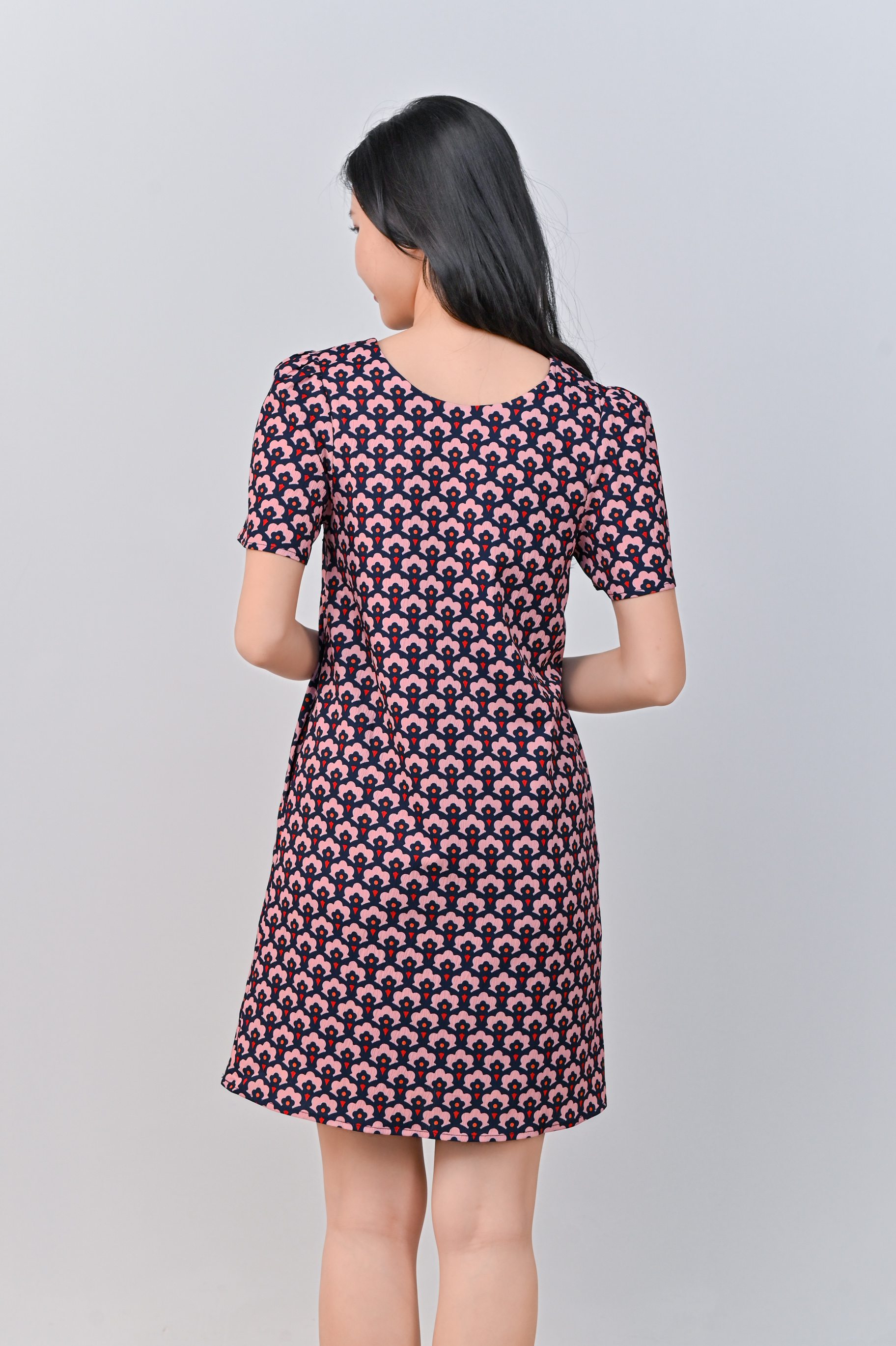 TRUMPET FLORAL PINK SLEEVED SHIFT DRESS