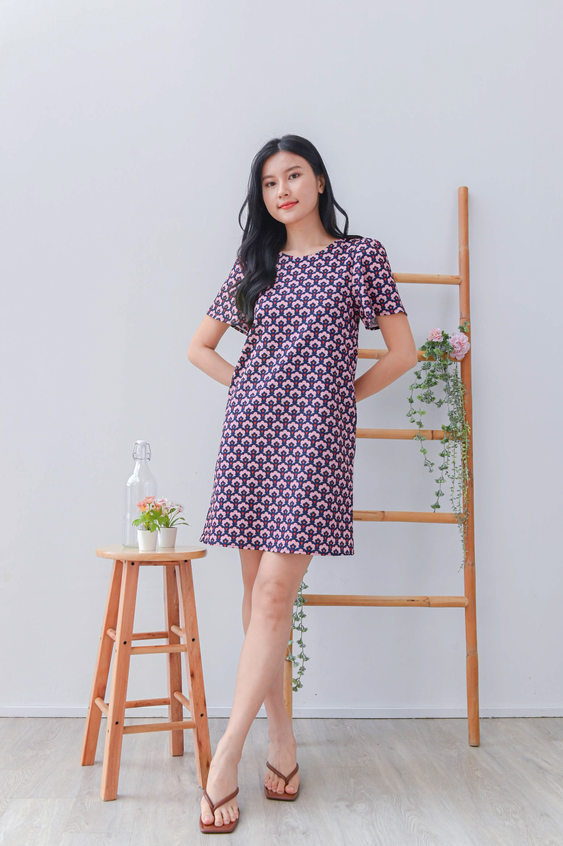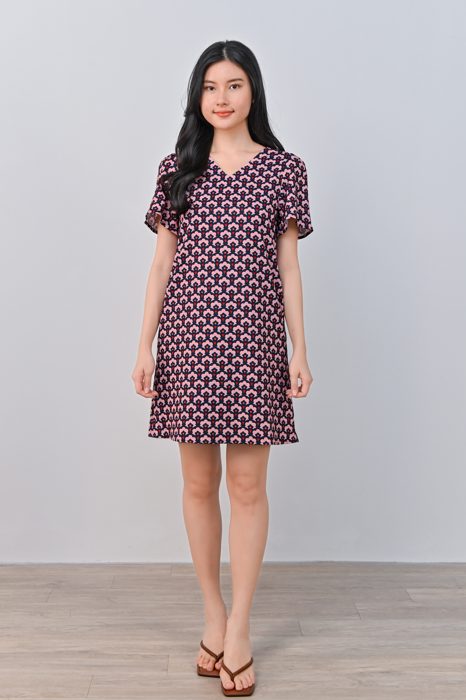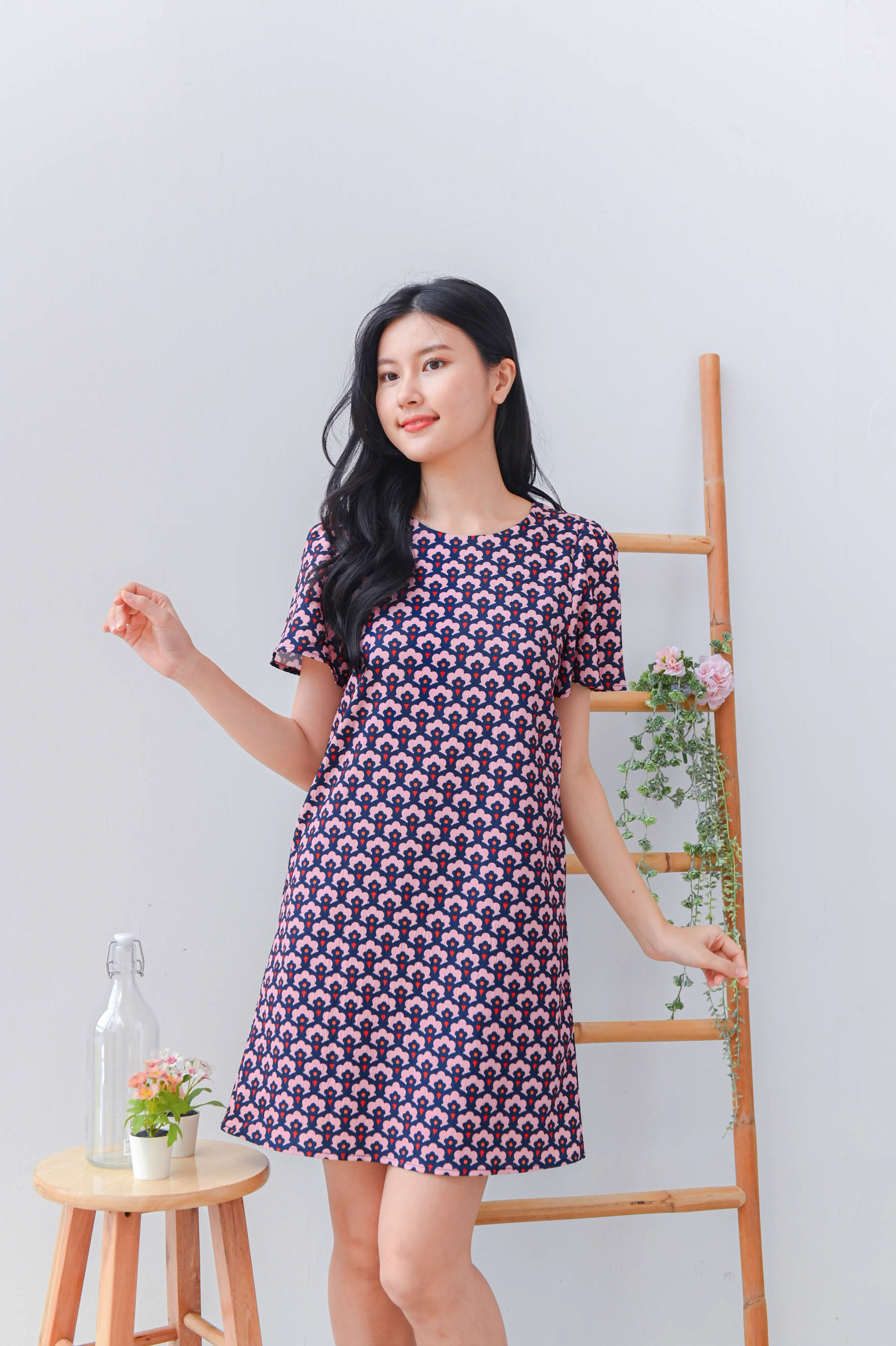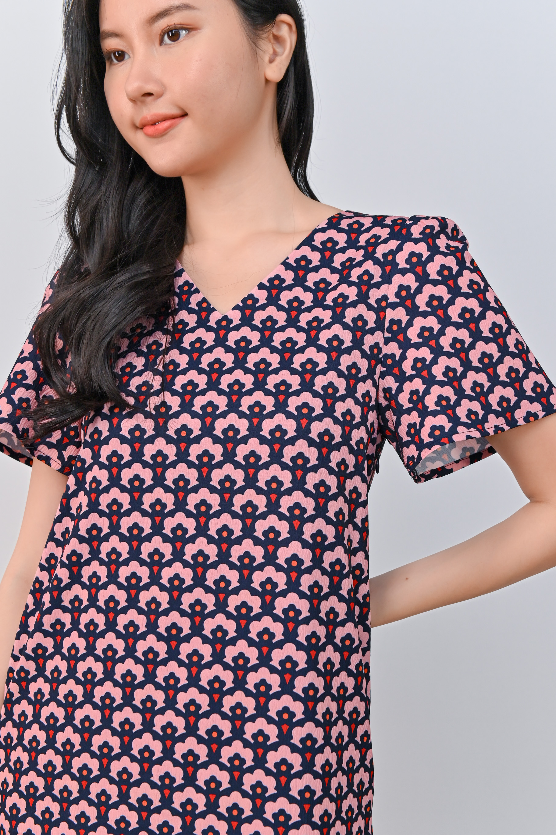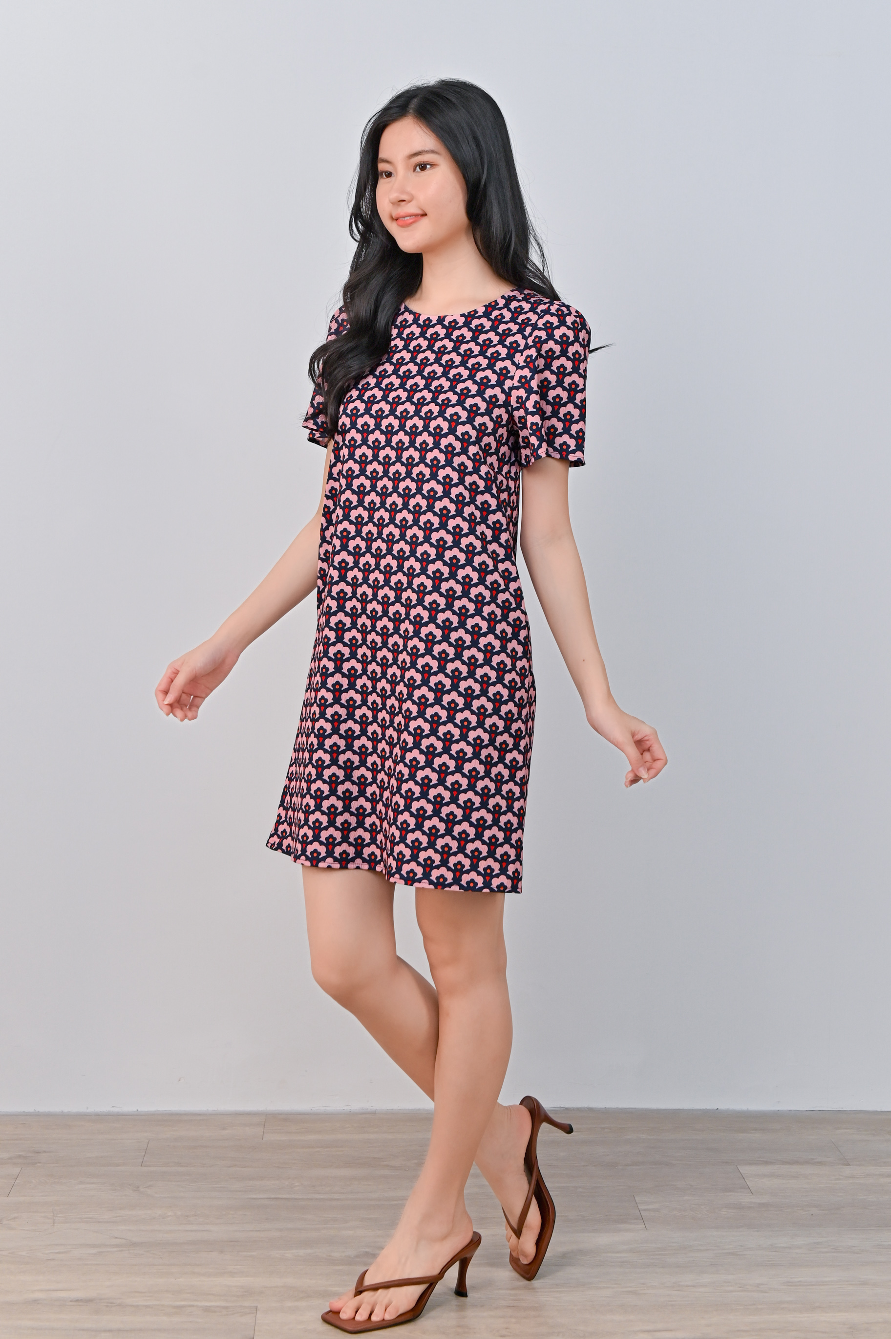 TRUMPET FLORAL PINK SLEEVED SHIFT DRESS