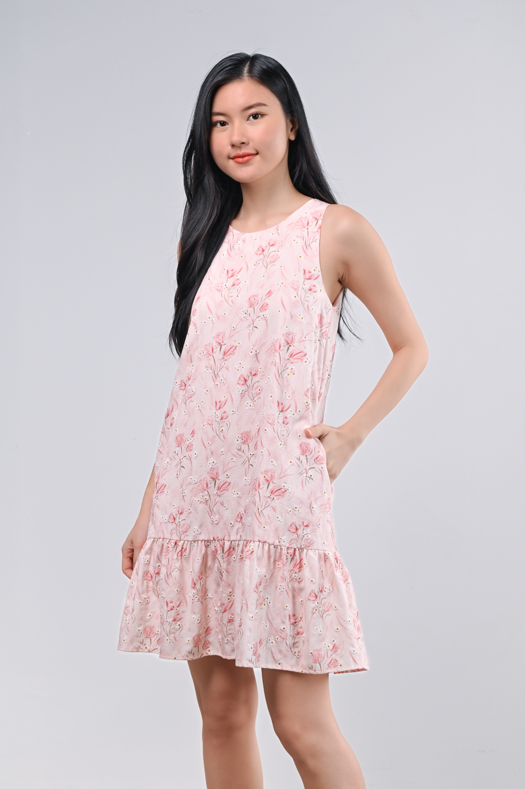 TWIST OF TULIPS SLEEVELESS DROPWAIST DRESS