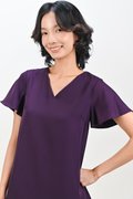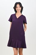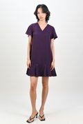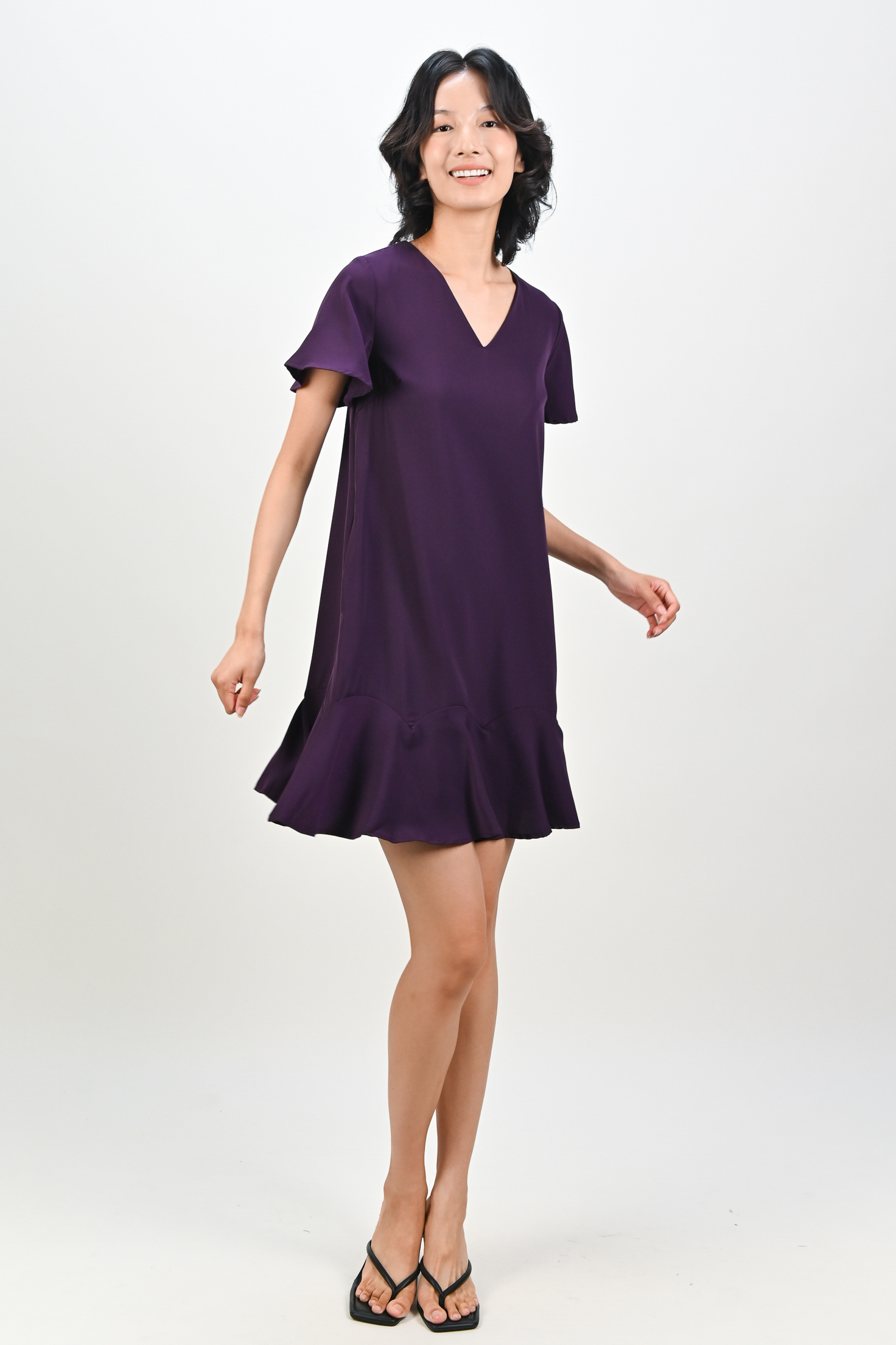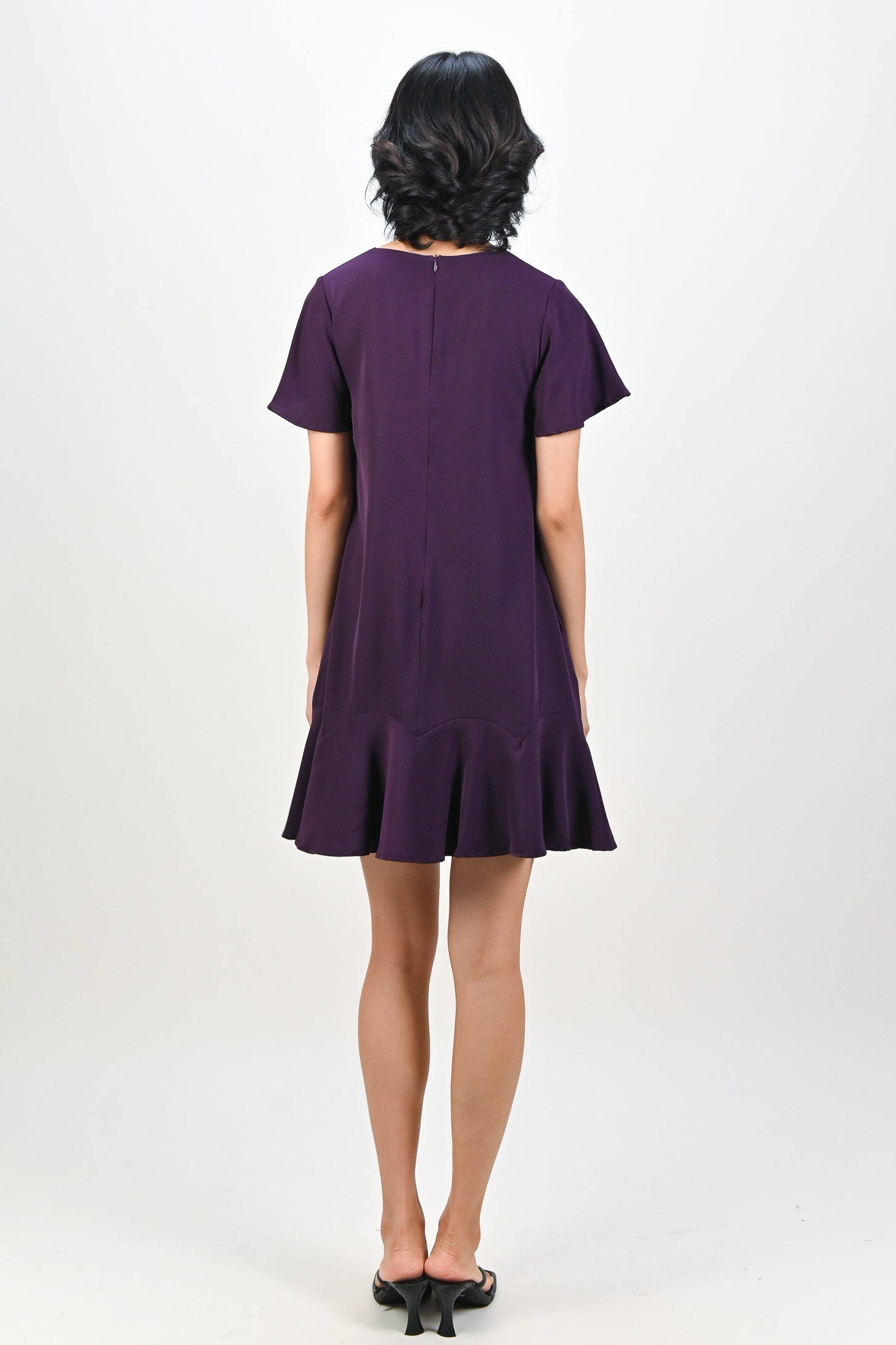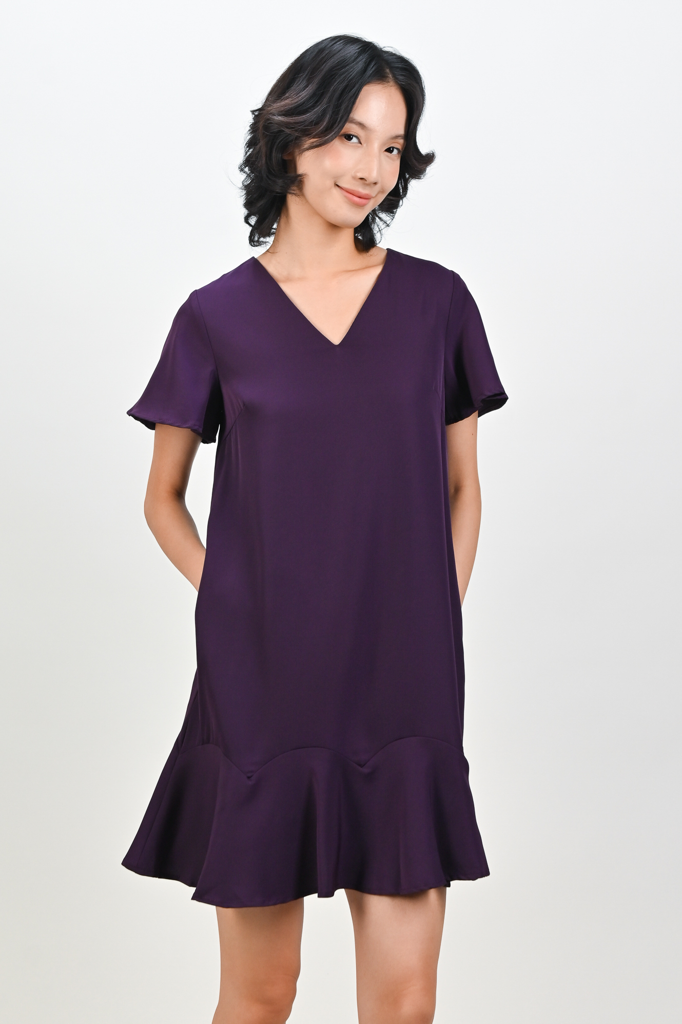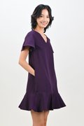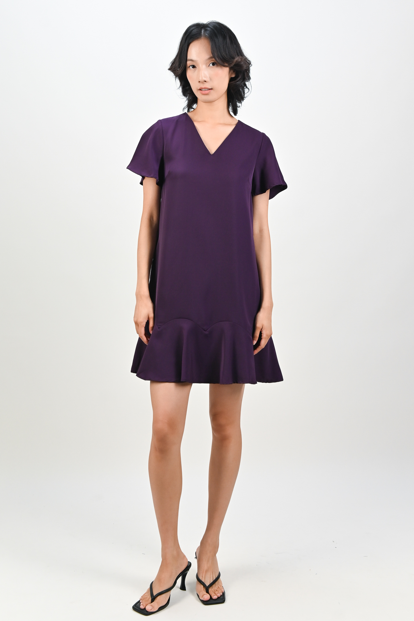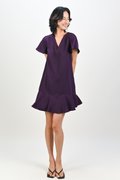 VANA SLEEVED SCALLOP-FLOUNCE DRESS IN PURPLE