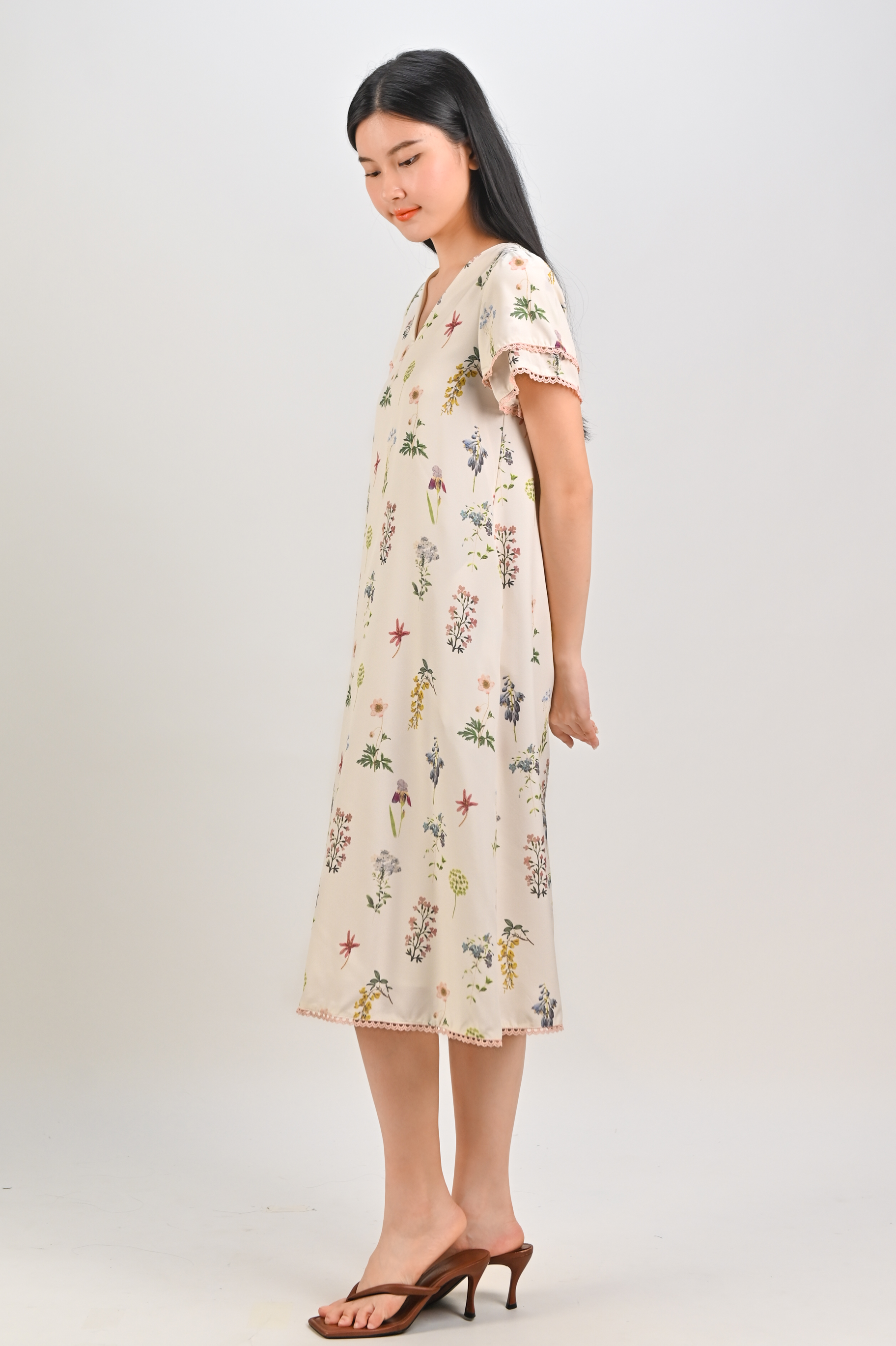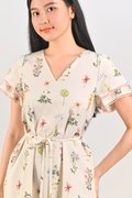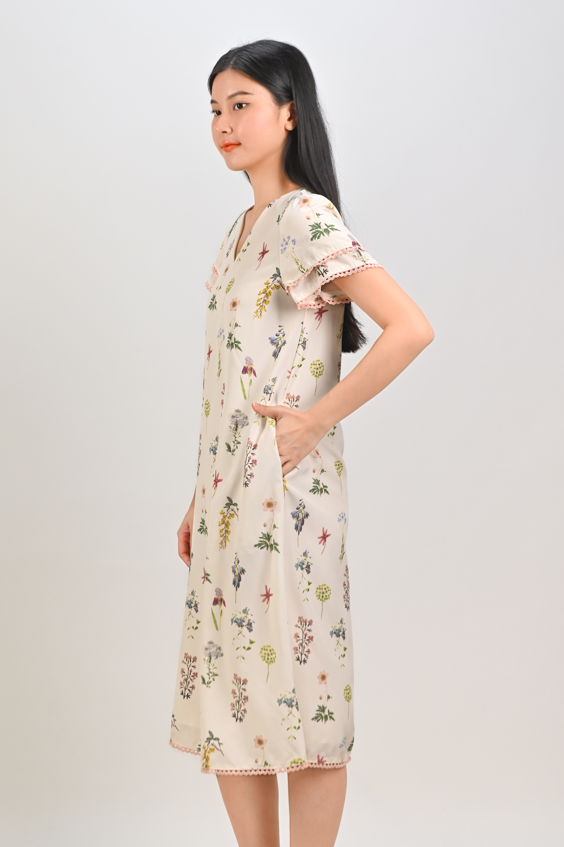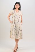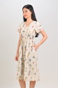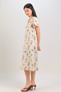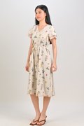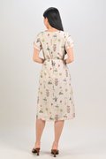 VEDA CREAM FLORAL LAYERED-SLEEVES DRESS