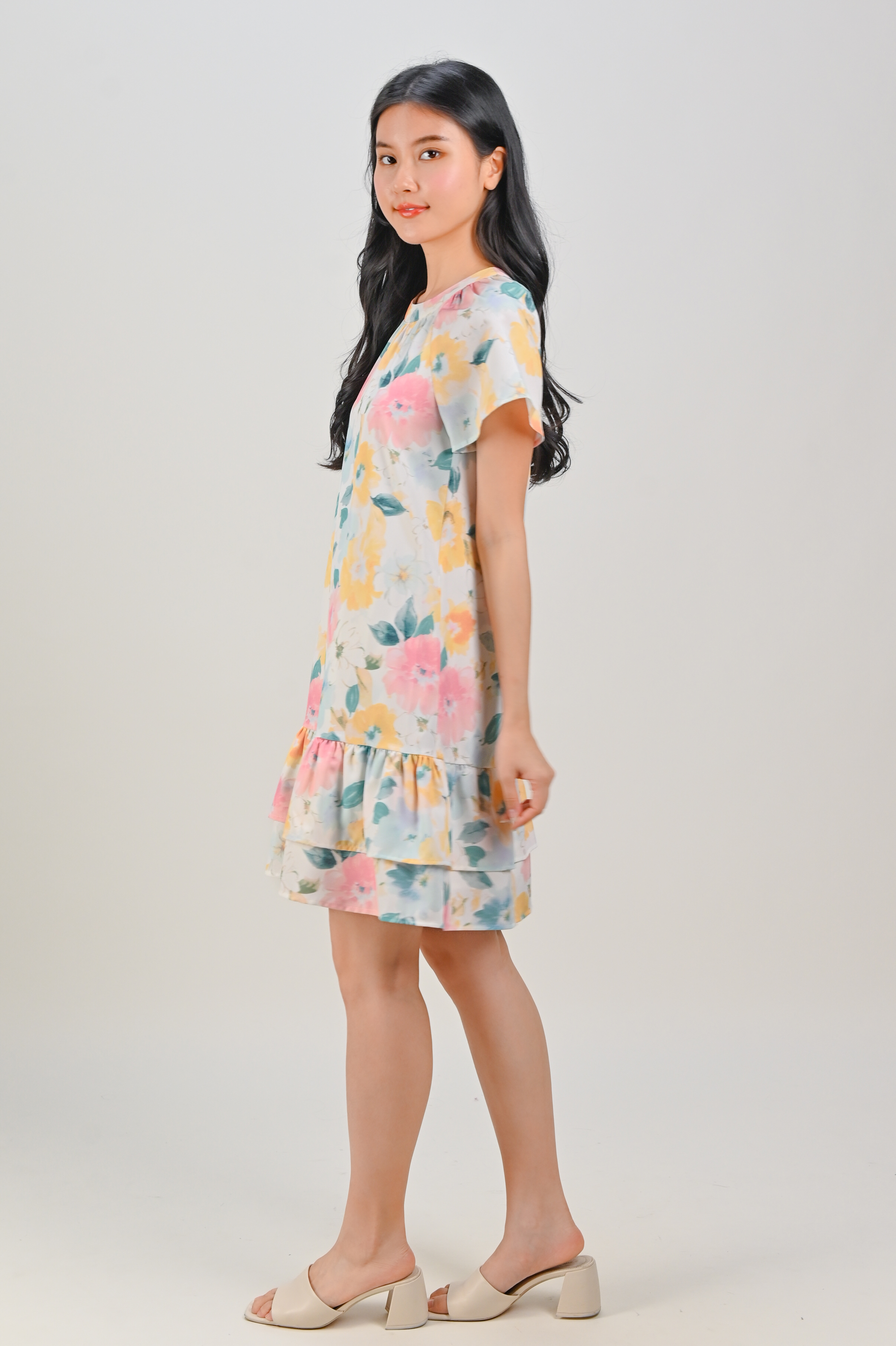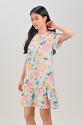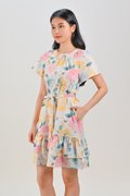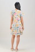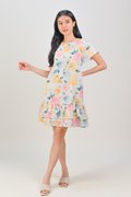 VESPER ROUND-NECK FLOUNCE DRESS IN FLORAL