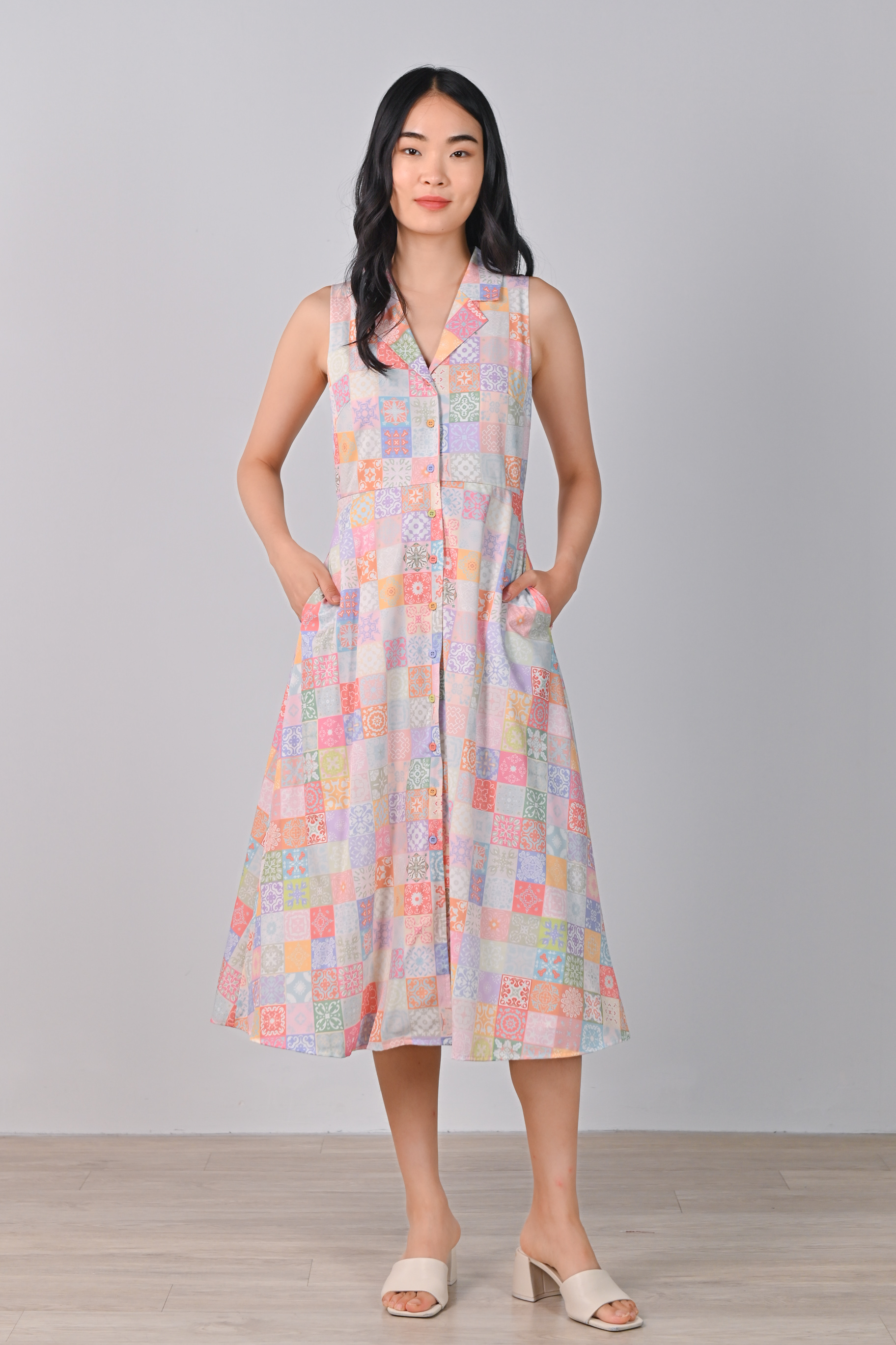 VINTAGE TILES CAMP-COLLAR SHIRT-DRESS